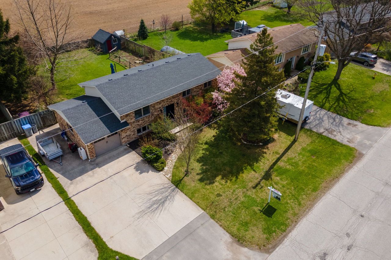 Welcome to this beautifully renovated Raised Ranch, nestled on a quiet, sought-after street in the charming town of Mount Brydges. With excellent curb appeal and a fully updated interior, this bright and open home offers 3+2 well-appointed bedrooms and 2 full bathrooms, making it ideal for families of all sizes. Gleaming hardwood flooring runs throughout the main level, complemented by large, bright windows and neutral tones that create a warm and inviting atmosphere. The lower level features a spacious family room, two additional bedrooms, a full bath, laundry area, ample storage, and, more perfect for guests, a home office or extra living space. Step outside to your private, fully fenced and landscaped backyard, complete with mature trees, a gas BBQ hookup, and expansive views of peaceful farm fields ideal setting for relaxing or entertaining. The 50-year shingles offer long-term peace of mind, and the home backs onto beautiful natural privacy with no rear neighbors. Located just minutes from parks, schools, highway access, and only 15minutes to London, this home offers the perfect blend of small-towncharm and urban convenience. A must-see!