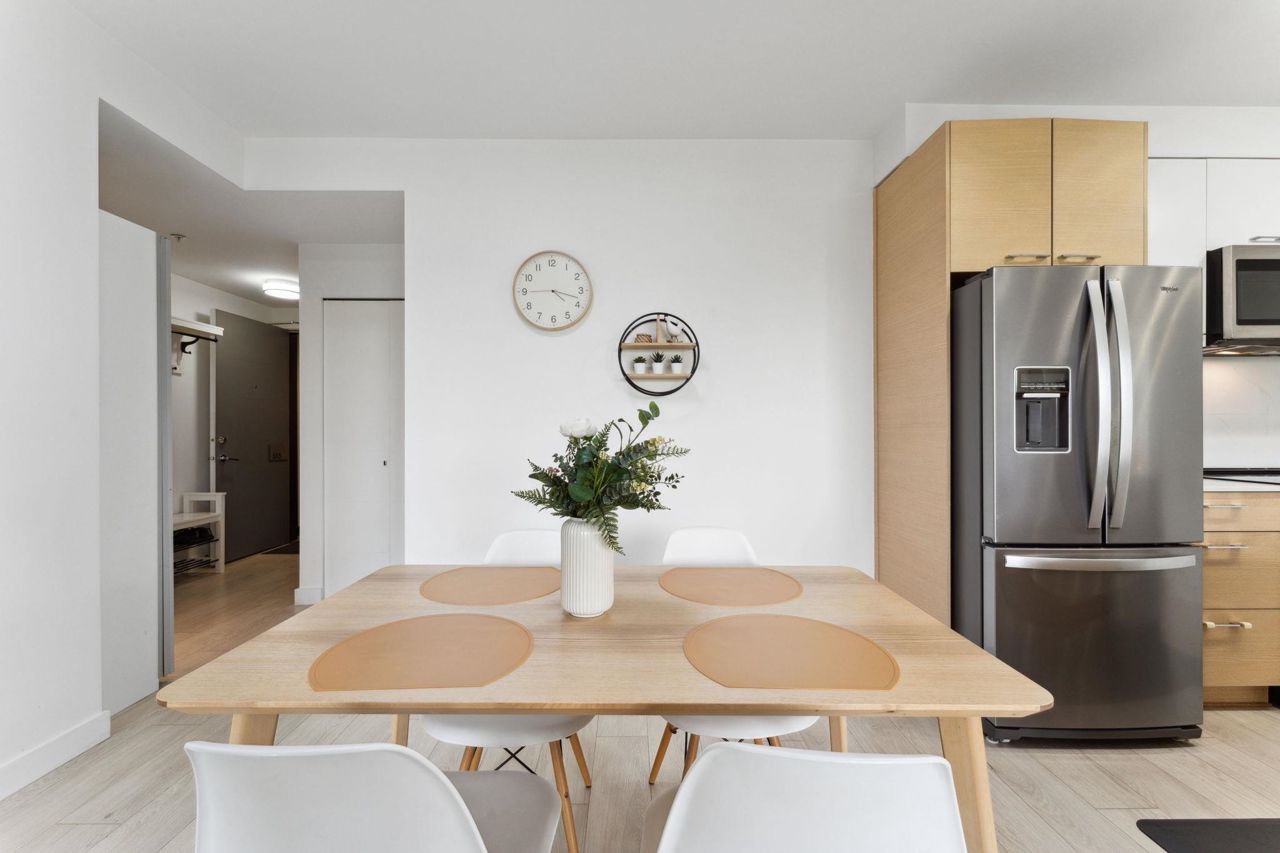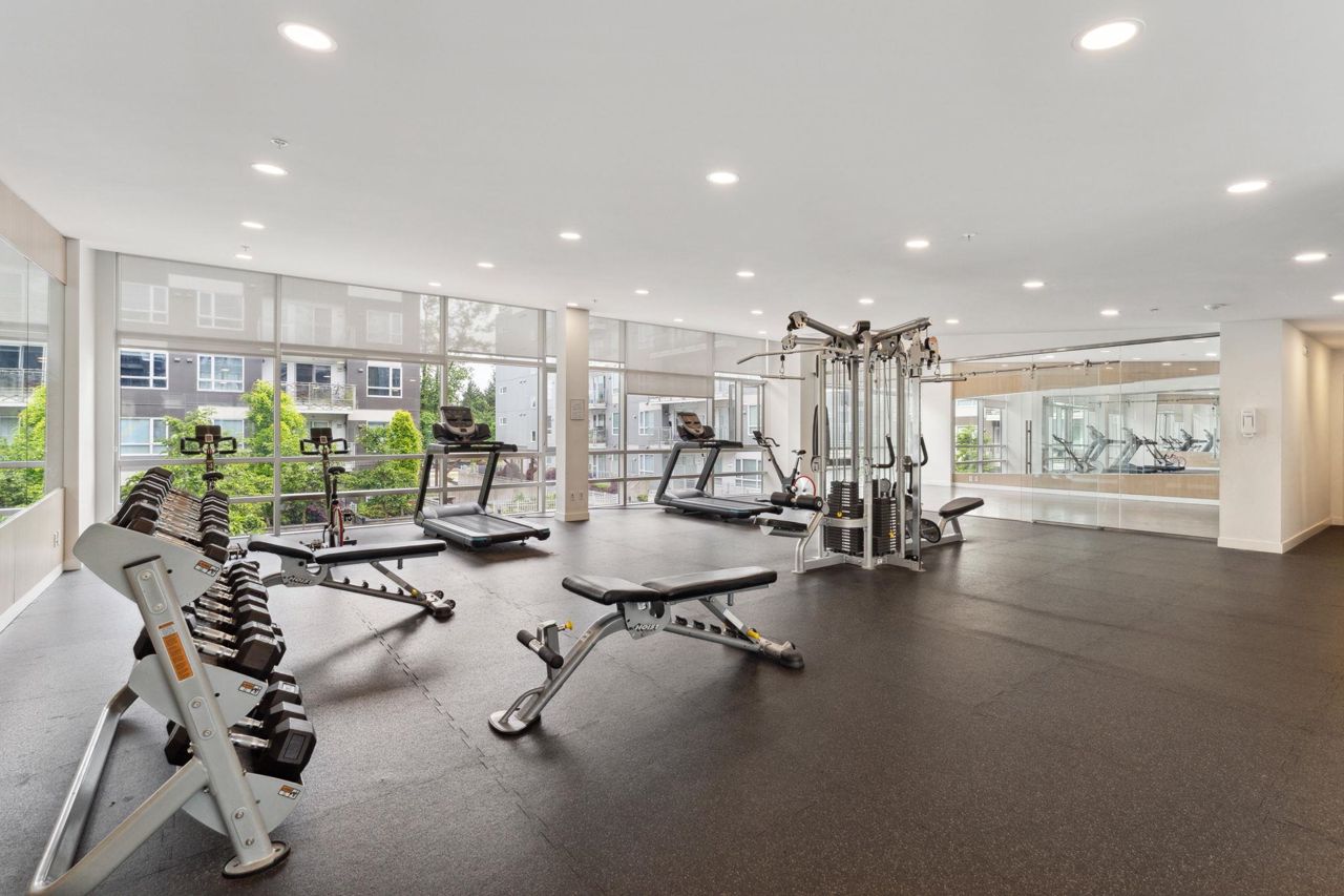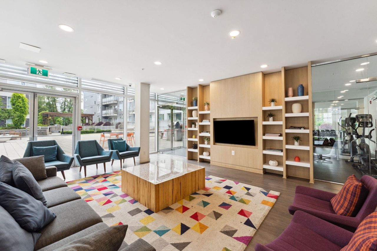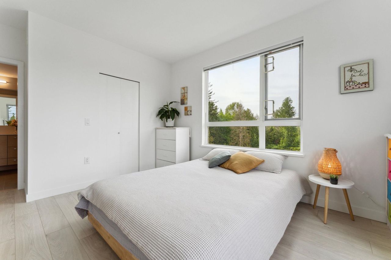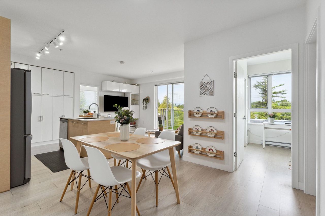 Welcome to Domain at HQ, a modern residence built by Porte in 2019. This stylish two-bedroom home features stainless steel appliances, wide plank flooring, and sleek quartz countertops. With a generous 887 SF open-concept layout, the kitchen, breakfast bar, dining, and living areas flow seamlessly together, all oriented to the Northeast, keeping the home naturally cool during the summer months. Laminate flooring provides easy access to the rooftop amenities. Conveniently, both the storage locker and parking stall are located on the same level (P1). Enjoy the outdoors with two beautiful parks just steps away. The building is known for its high-quality construction, excellent amenities, and prime location - close to SFU, Surrey Central, SkyTrain, shopping, Highway 1, and more. 2 parkings.