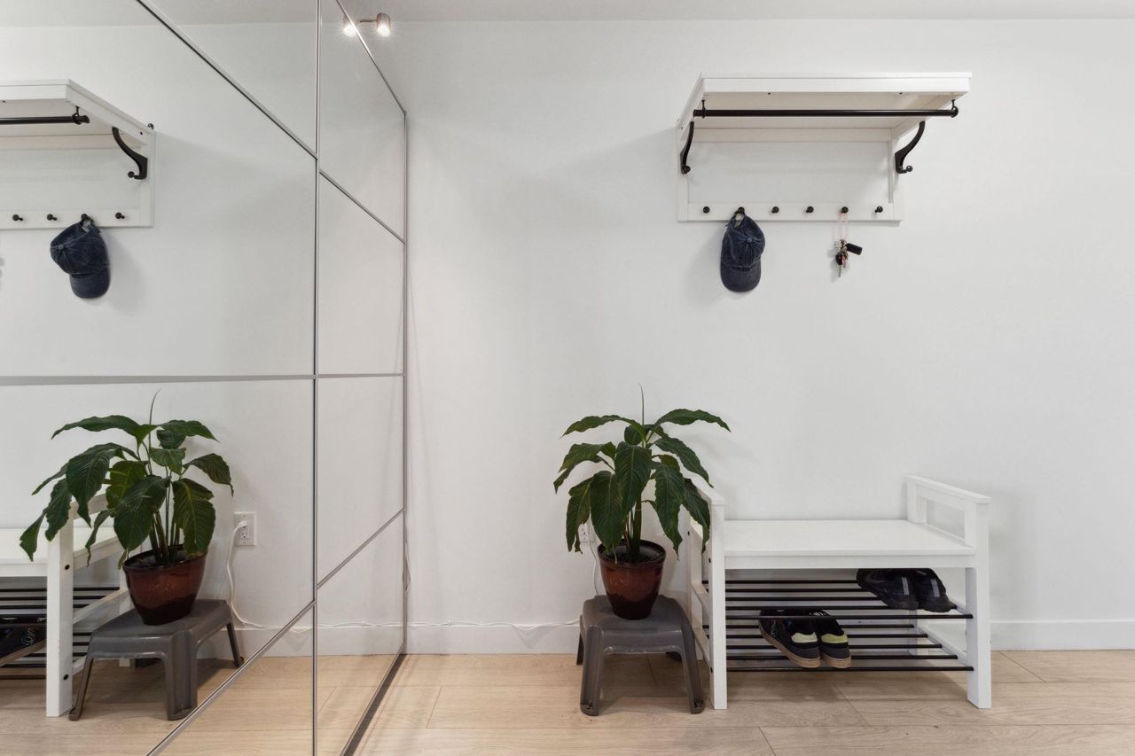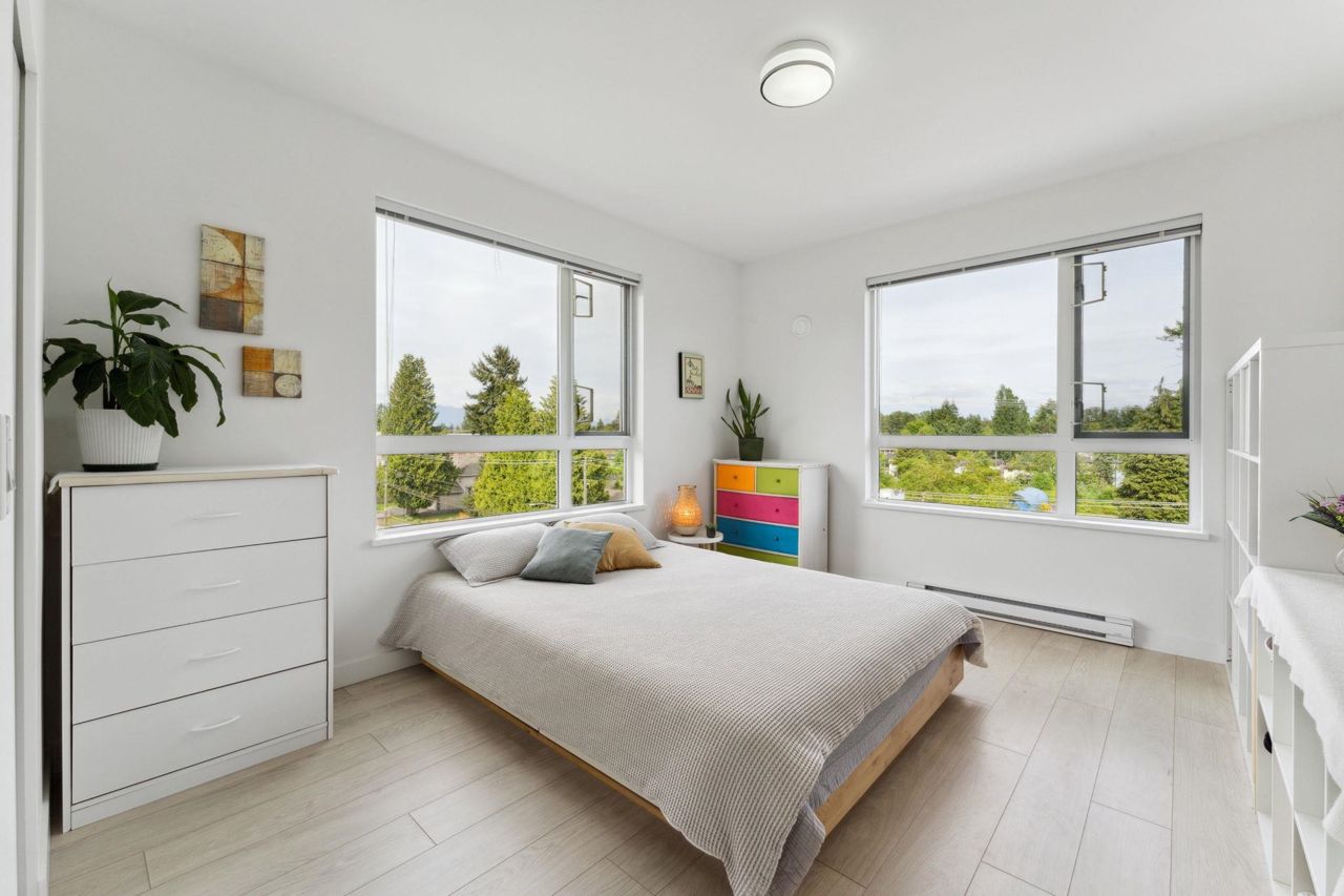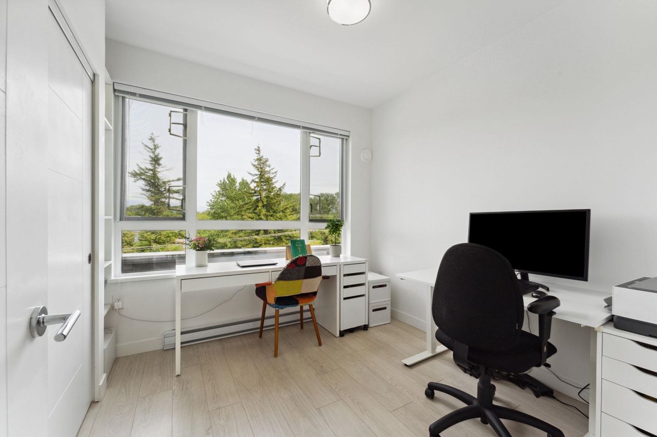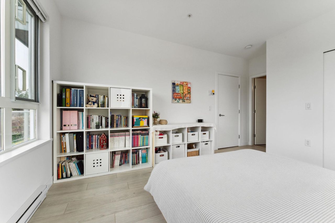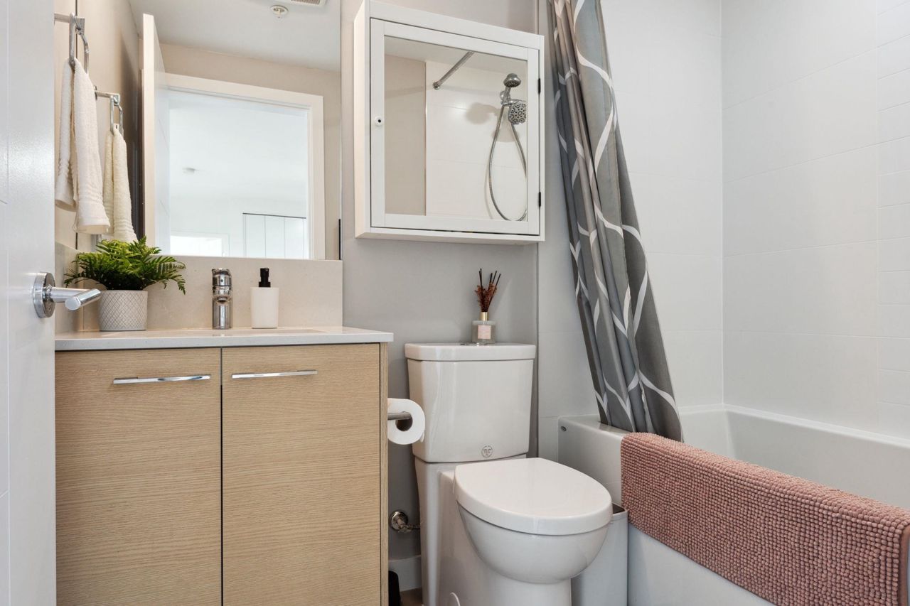 Welcome to Domain at HQ, a modern residence built by Porte in 2019. This stylish two-bedroom home features stainless steel appliances, wide plank flooring, and sleek quartz countertops. With a generous 887 SF open-concept layout, the kitchen, breakfast bar, dining, and living areas flow seamlessly together, all oriented to the Northeast, keeping the home naturally cool during the summer months. Laminate flooring provides easy access to the rooftop amenities. Conveniently, both the storage locker and parking stall are located on the same level (P1). Enjoy the outdoors with two beautiful parks just steps away. The building is known for its high-quality construction, excellent amenities, and prime location - close to SFU, Surrey Central, SkyTrain, shopping, Highway 1, and more. 2 parkings.