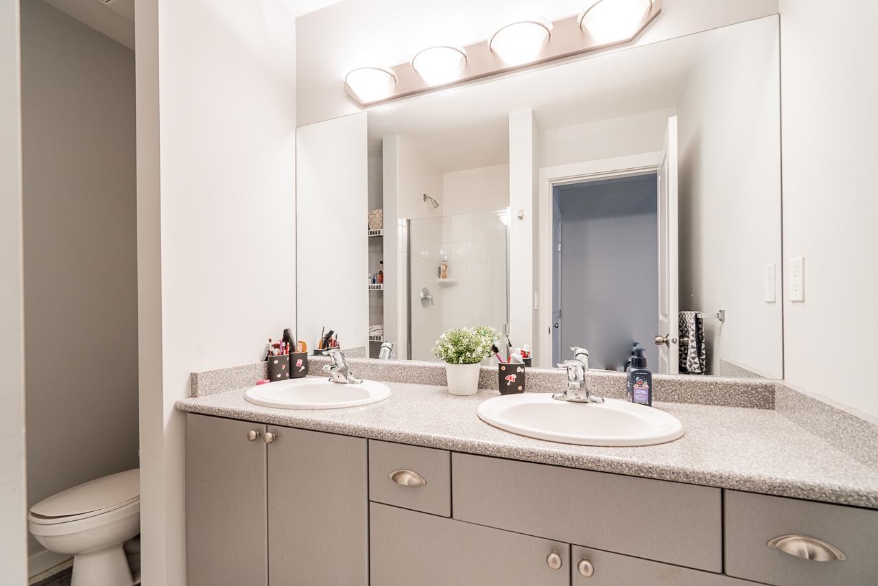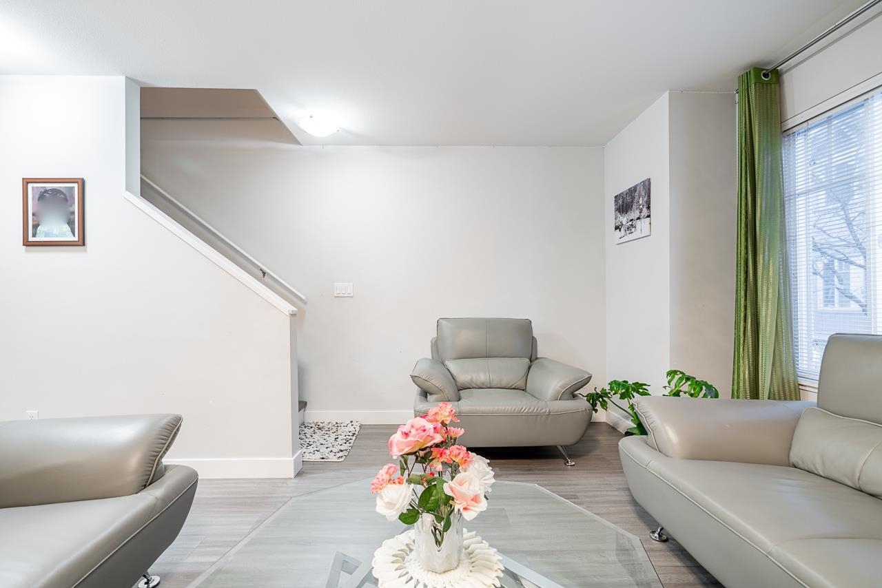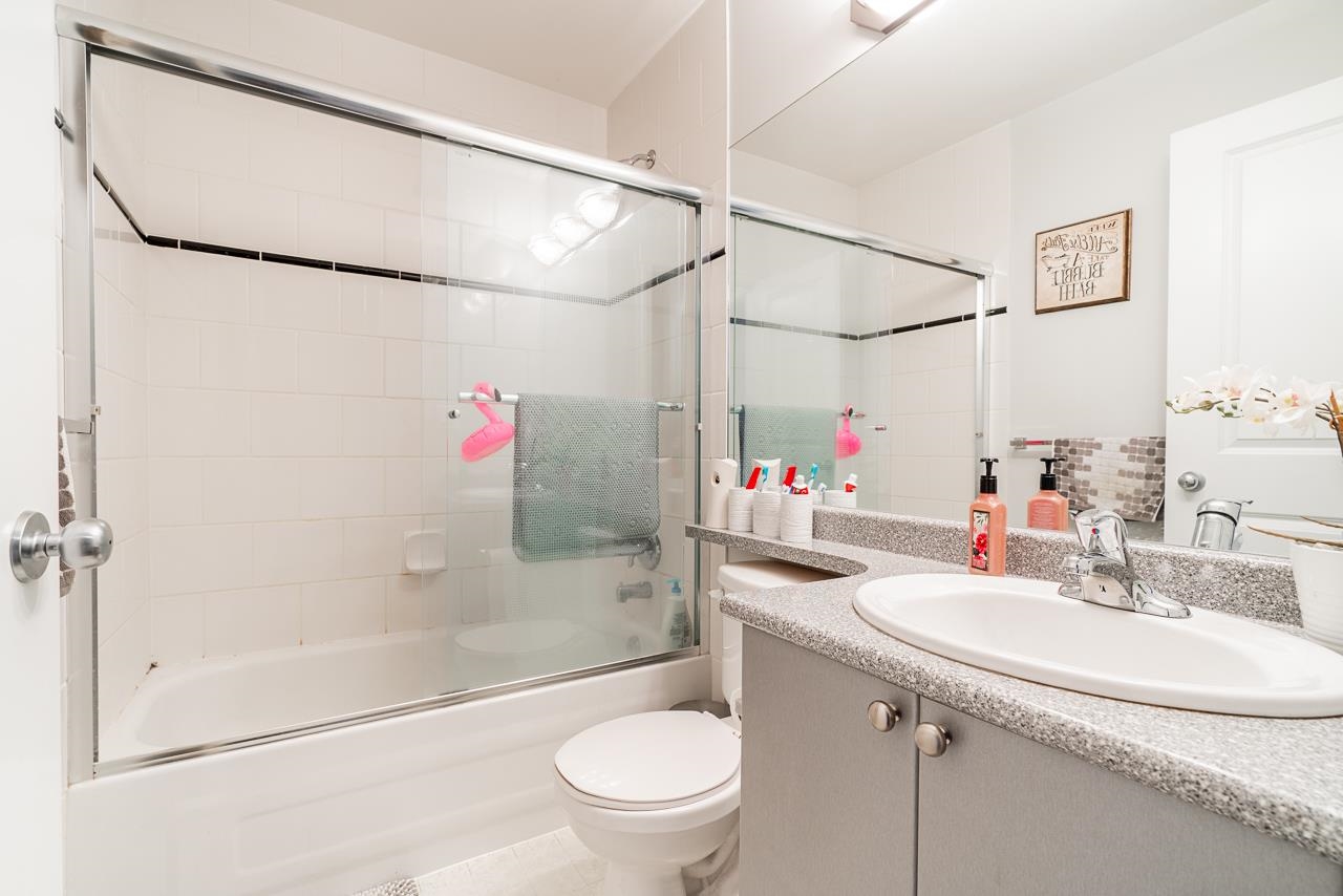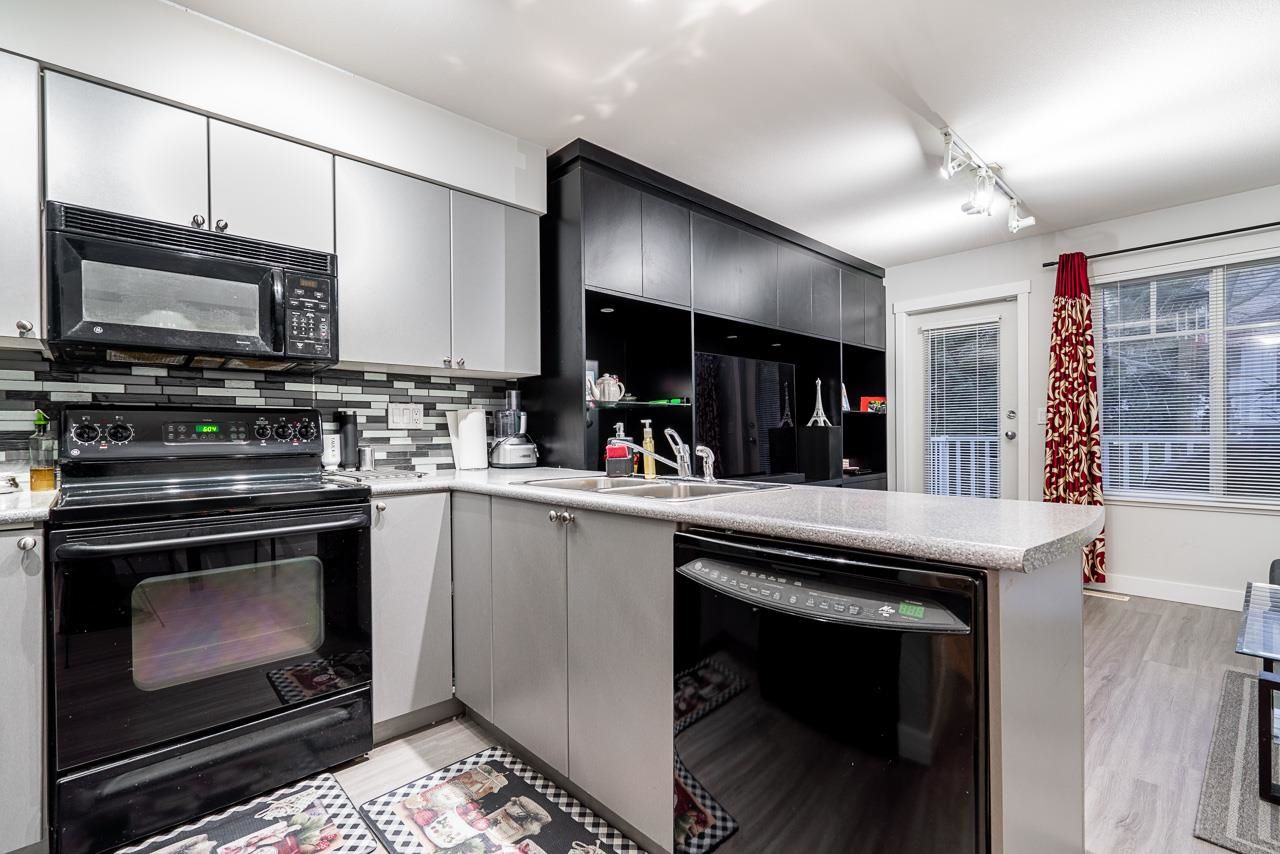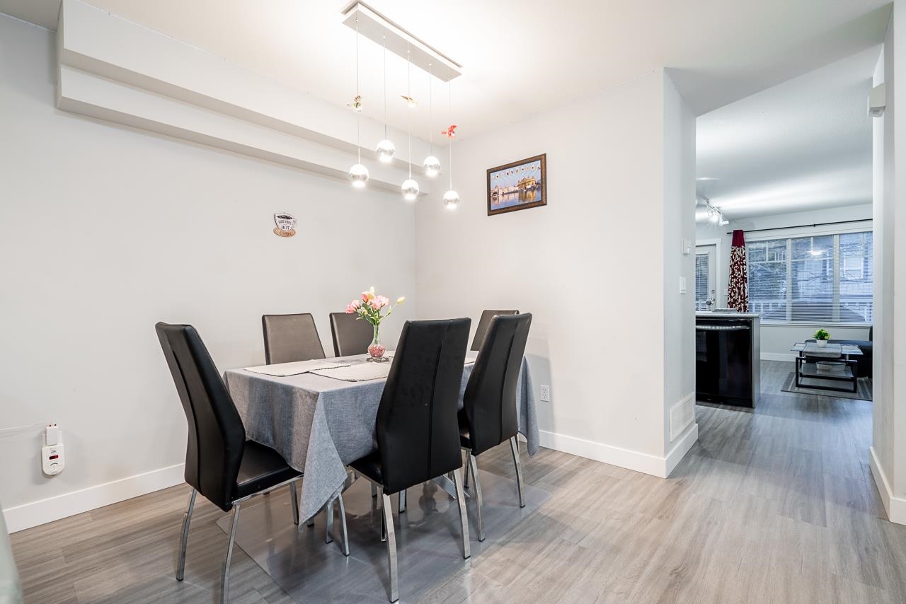 Well kept LARGE approx.1350 sqft two-bedroom townhouse located close to restaurants and shopping centres. Huge rectangular garage for parking which leads to a fenced backyard, perfect for family bbqs. NEW Laminate flooring throughout. Main floor has spacious living room, kitchen with complete appliances, dining room, CUSTOM CABINETRY and covered balcony. Second floor holds 2 SPACIOUS bedrooms and 2 bathrooms, including closeted laundry. Family friendly complex with club house and lots of visitor parking. Property is clean and shows 10/10. Call for private showings !