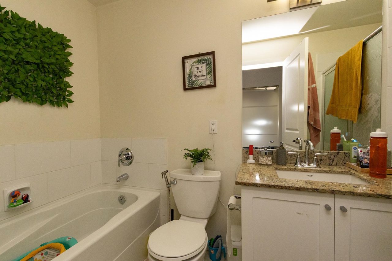 Enjoy the comfort of ground floor living in this bright and functional unit in the heart of Guildford. Featuring two generously sized bedrooms + 1 den, and two full bathrooms—including a master ensuite with both a tub and separate shower—this layout is thoughtfully designed with no wasted space.The modern kitchen includes granite countertops and stainless steel appliances, and the private yard offers the perfect space for outdoor relaxation or play. Residents have access to on-site amenities including a fitness centre, media room, and lounge.Located just a short walk from T&T Supermarket, Guildford Town Centre, movie theatres, restaurants, banks, transit, and both elementary and secondary schools—this location truly has it all.