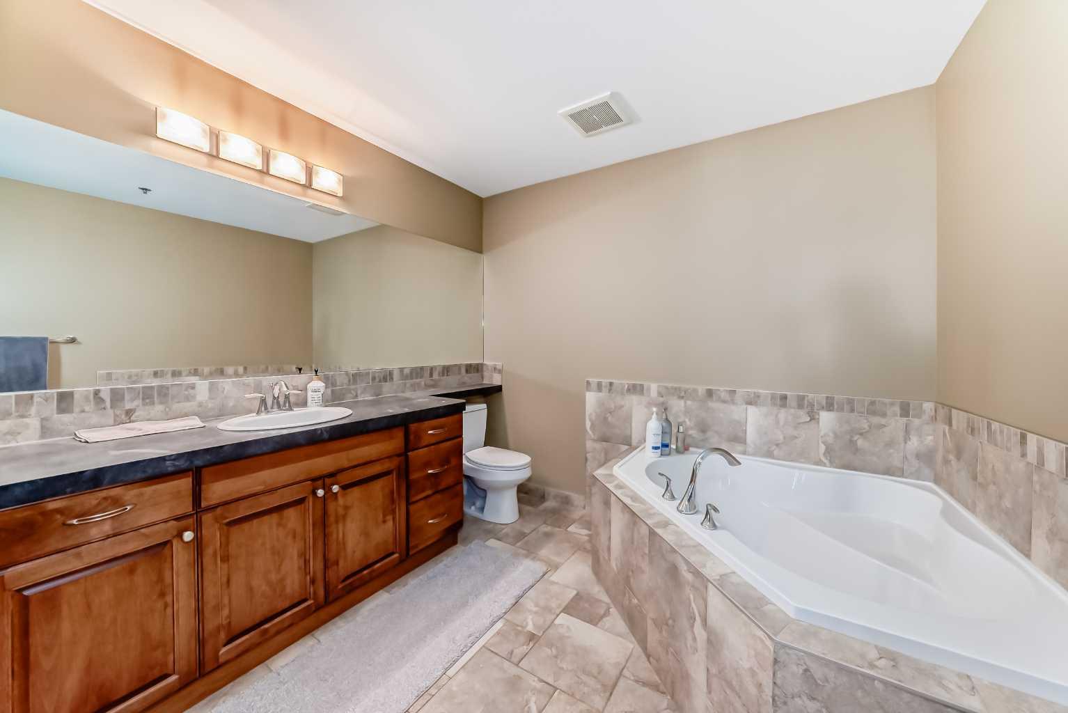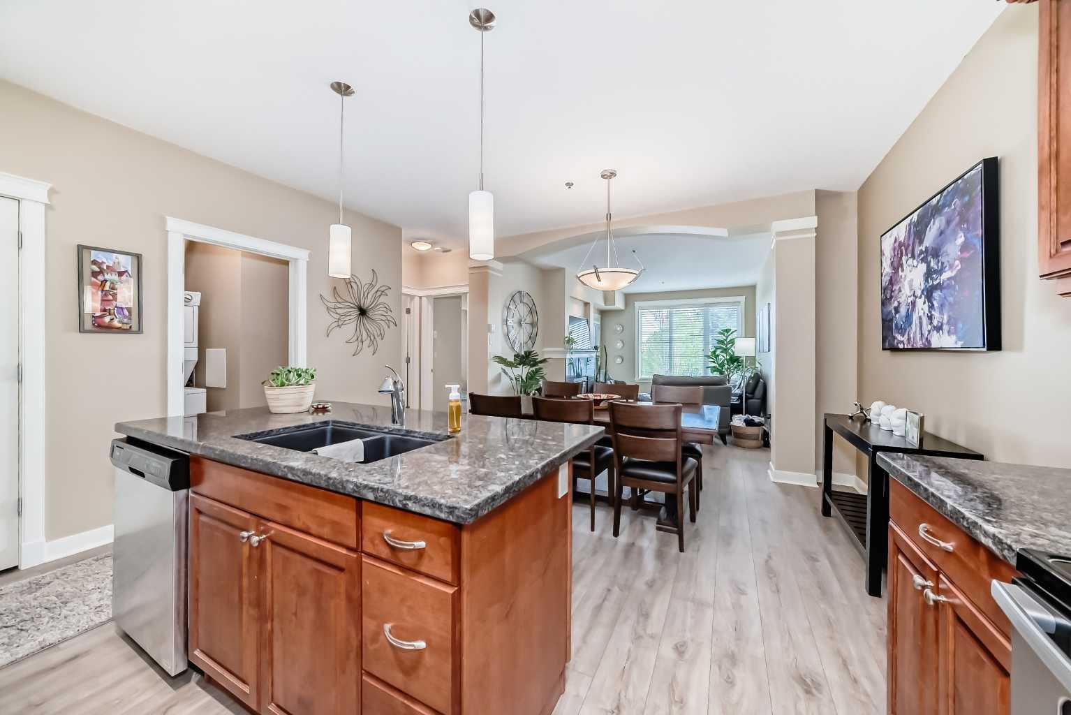 This bright and spacious 2nd-floor unit features new flooring in the kitchen, living and dining area and has an open-concept design, complete with a large living and dining area, and a stylish kitchen with a granite island and countertops. The two oversized bedrooms provide ample space, with the primary bedroom boasting a lovely ensuite with a relaxing soaker tub.