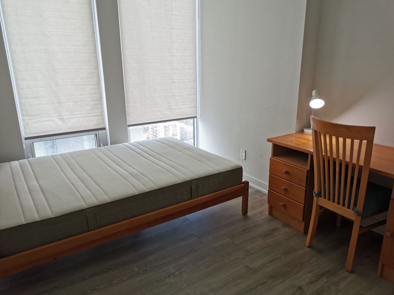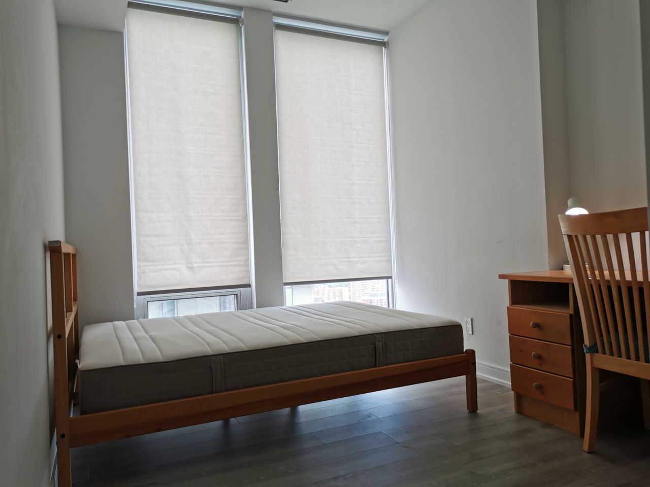 可租赁至2025年8月30日,仅限豪华Vox Condo 35楼主卧室及独立卫浴。2卧+1书房2卫。***单元内无其他租户 - 第二个租户将在8月底才回来。在此之前您将独享整个公寓。超级便利的地点!距离Yonge/Wellesley地铁站不到50米。24/7礼宾服务。设备齐全的健身房和露台。步行可达UofT, Ryerson/TMU 和 Eaton Centre! 布局极佳,提供所有家具。转角单元。明亮的落地窗,可俯瞰无遮挡的南向景观。租金为每月1500加元,全包。可签订短期租赁合同至2025年8月30日,并有可能延长至一年的完整租赁合同。