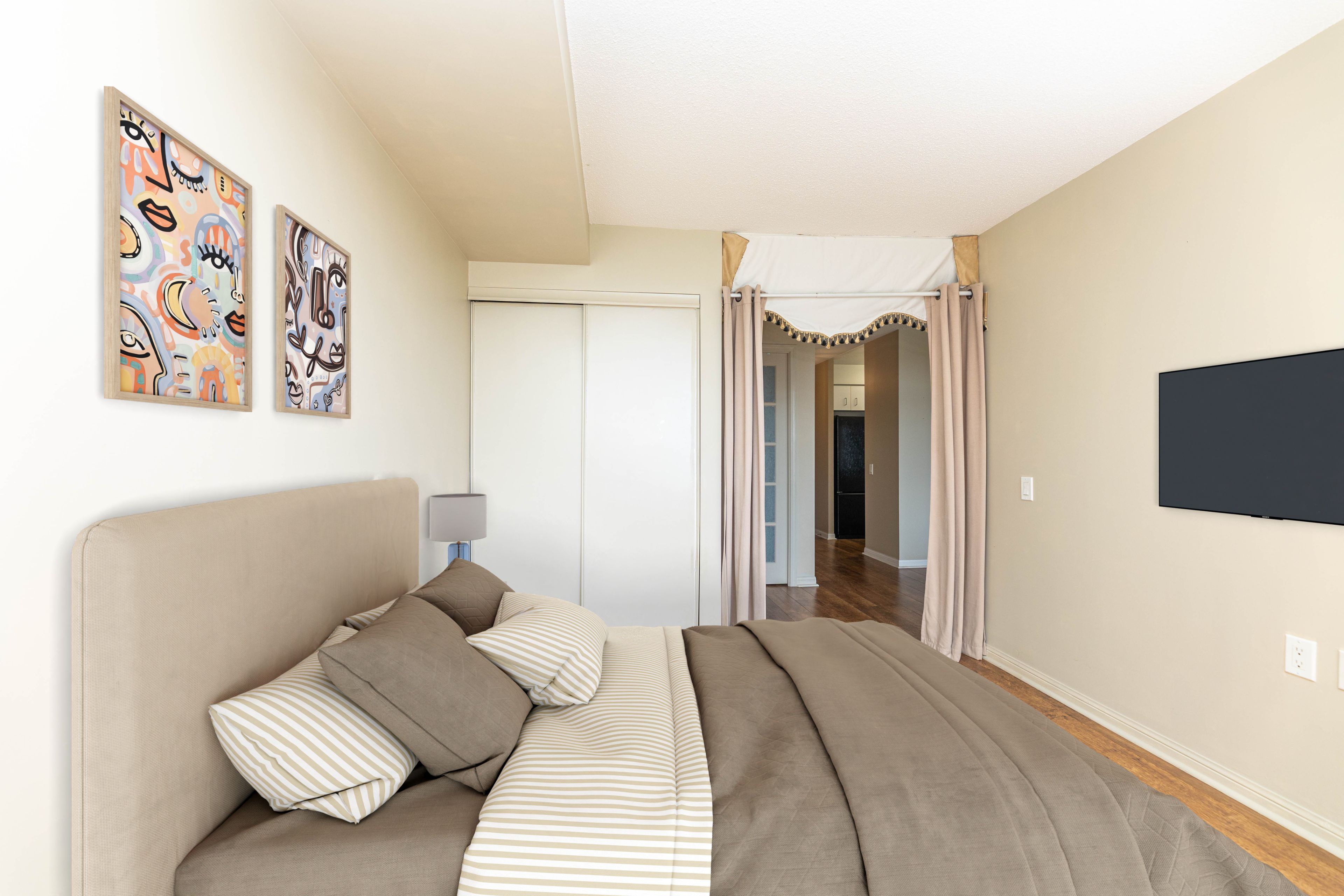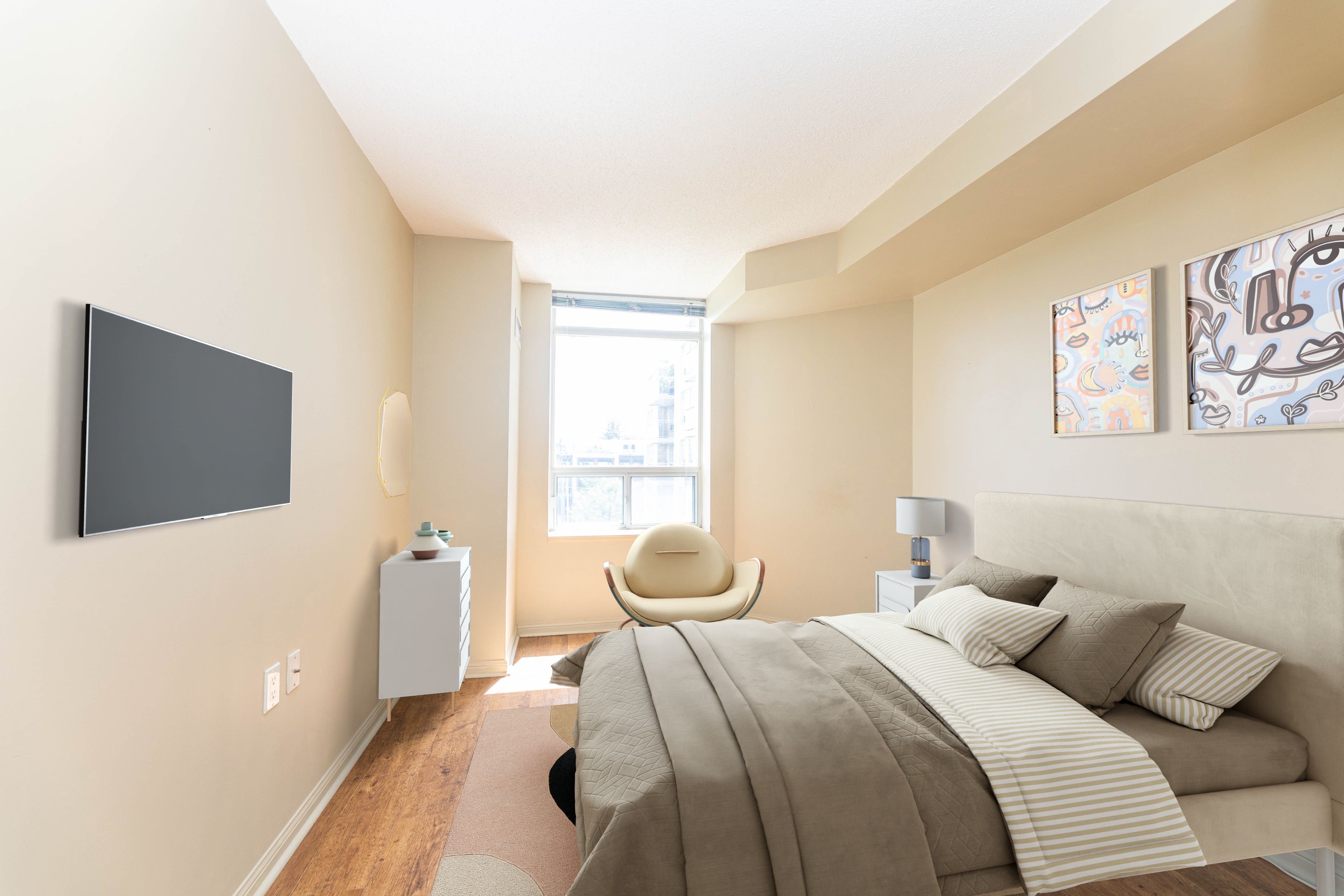 卓越的Tridel中层建筑"The Shermount",地理位置便利,近期经过翻新。这套宽敞的公寓布局极佳,全屋统一铺设复合地板,拥有1间卧室和1个三件套浴室(配有玻璃淋浴门和面板)。厨房为开放式设计,俯瞰着结合了客厅与餐厅的宽敞空间,并配有滑动门通向朝南的开放式阳台,视野开阔无遮挡,阳光充足。主卧带有步入式衣帽间,套内洗衣设施齐全。配备1个储物柜(P2)和1个停车位(P1),访客停车位充足。管理费包含所有公用事业费用。快速通往Allan路和401高速公路,步行即可到达学校、地铁站和TTC公交站,仅需1站地铁即可抵达Yorkdale购物中心。靠近Lawrence Allen购物中心。**额外设施**包括:冰箱(GE品牌)、炉灶(KitchenAid品牌)、嵌入式微波炉(Magic Chef品牌)、洗碗机(Whirlpool品牌)、洗衣机和烘干机,停车位(P1)和储物柜(P2)均为业主所有。