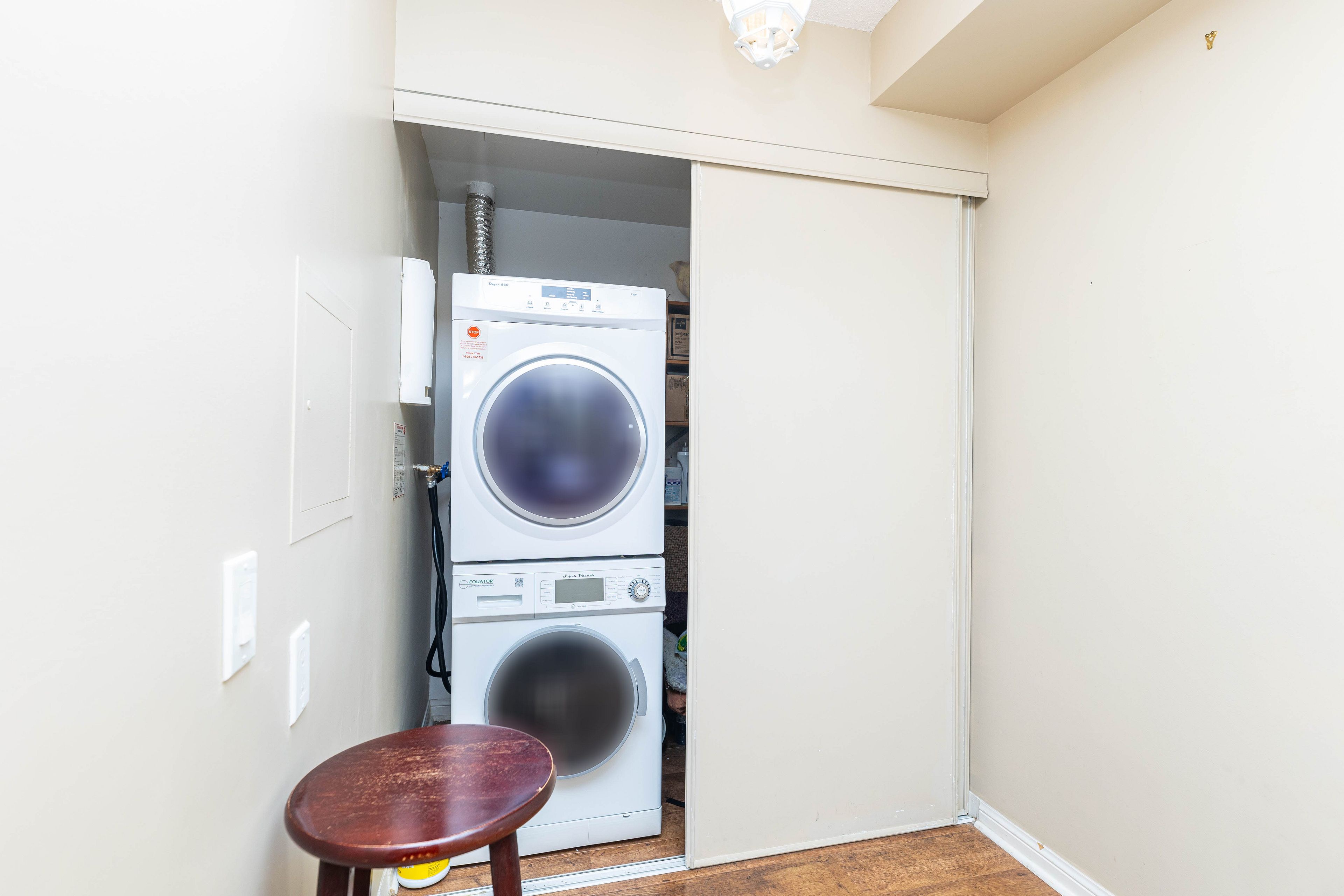 Excellent Tridel Mid Rise Building "The Shermount", conveniently located, recently renovated. Fantastic, spacious Condo w/ Great Layout, Wall-to-wall Uniform Laminate flooring, 1 Bdrm, 1 3pc Bath (Glass Shower door & Panel), Galley Kitchen Overlooks Combined Living & Dining w/ Sliding doors to Open Balcony facing south w/ unobstructed views allowing lots of sunlight. Primary Br. w/ Walk-in Closet. Ensuite Laundry. 1 Locker (P2) & 1 Parking (P1). Plenty of Visitors Parking. Maint. Fee includes all utilities. Quick Access to Allan Rd. & 401, short walk to Schools, Subway, Ttc, 1 Subway Stop to Yorkdale Mall. Near Lawrence Allen Shopping Mall. **EXTRAS** Fridge (GE), Stove (KitchenAid), Built-in Microwave (Magic Chef), Dishwasher (Whirlpool), Washer & Dryer, Parking (P1) & Locker (P2) are owned.