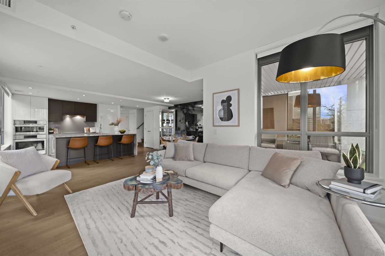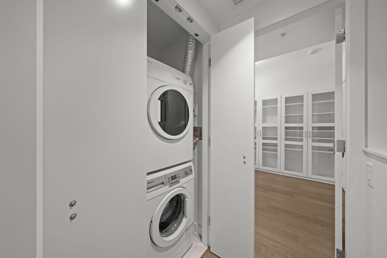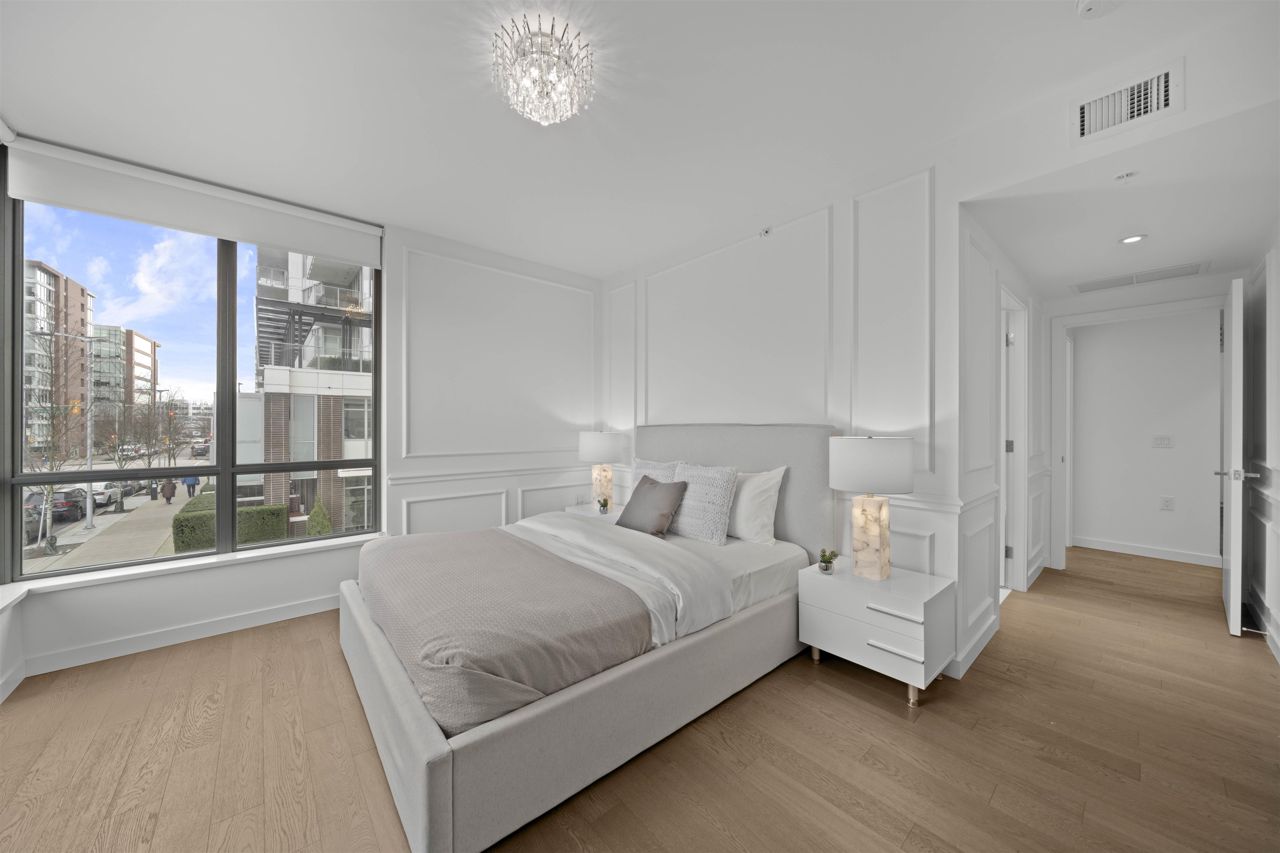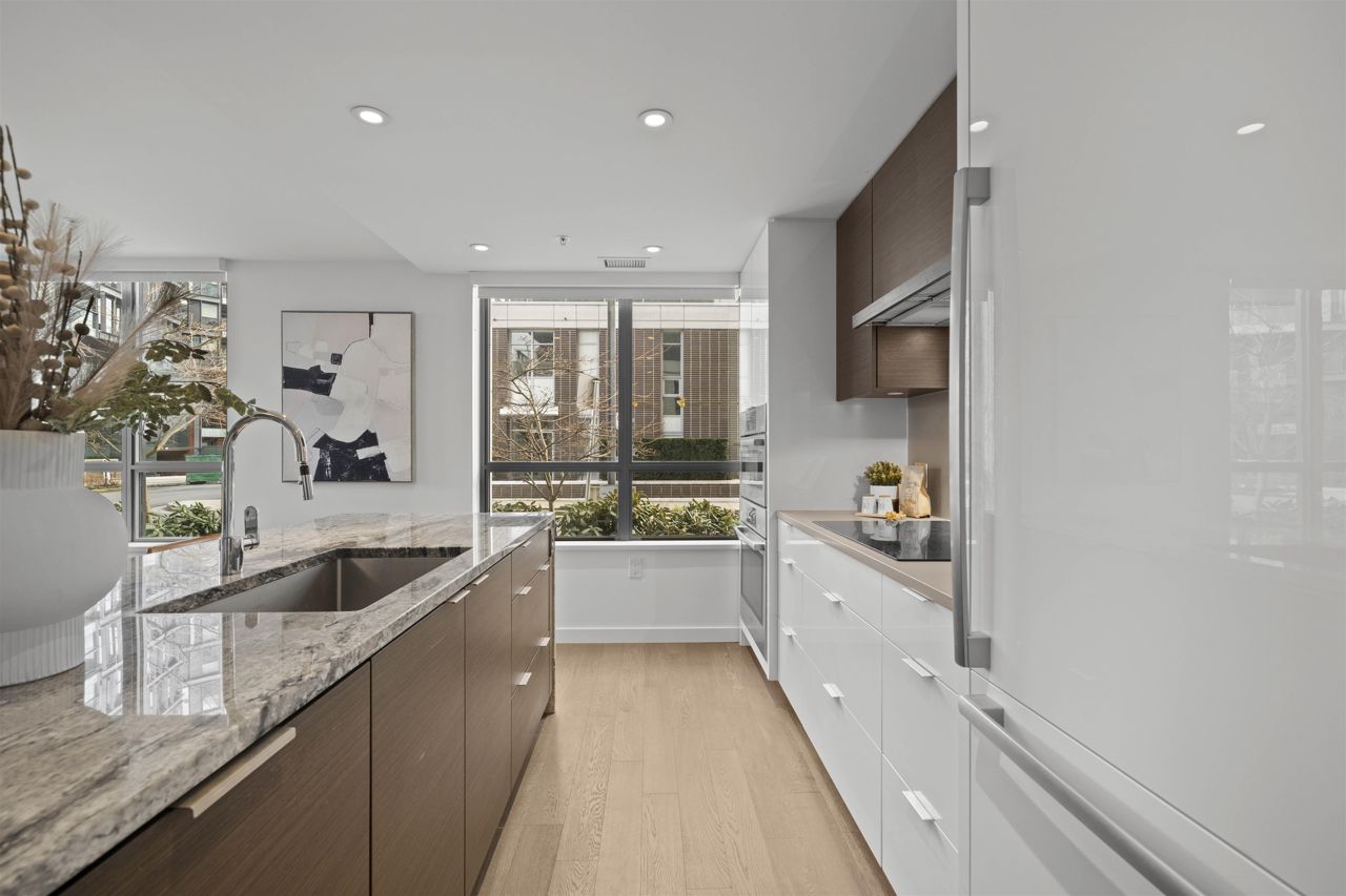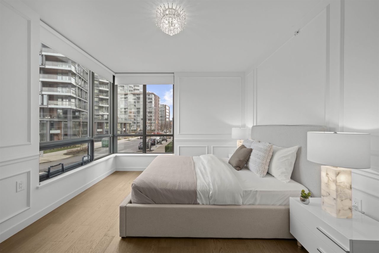 Discover LUXURY WATERFRONT LIVING at Navio North by Award-Winning CONCERT Properties! This rarely available 3 bed, 3 bath + flex CORNER townhome features a spacious open concept layout, overheight ceilings, hardwood flooring, AC, electric fireplace. Entertain your friends and family in the gourmet chef's kitchen w/premium integrated BOSCH appliances, double wall oven, beautiful granite slab countertops. Retreat to the king-size primary thoughtfully designed w/his & her closets and luxurious 5 piece ensuite, w/smart hygiene toilet and NUHEAT floor heating. Amenities include a fitness facility, social lounge w/outdoor terrace. Nestled along the seawall, just steps to Olympic Village and adjacent to the upcoming 6-acre waterfront park! 2 side-by-side parking stalls and 1 storage locker.