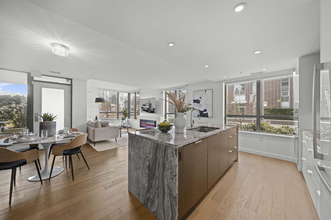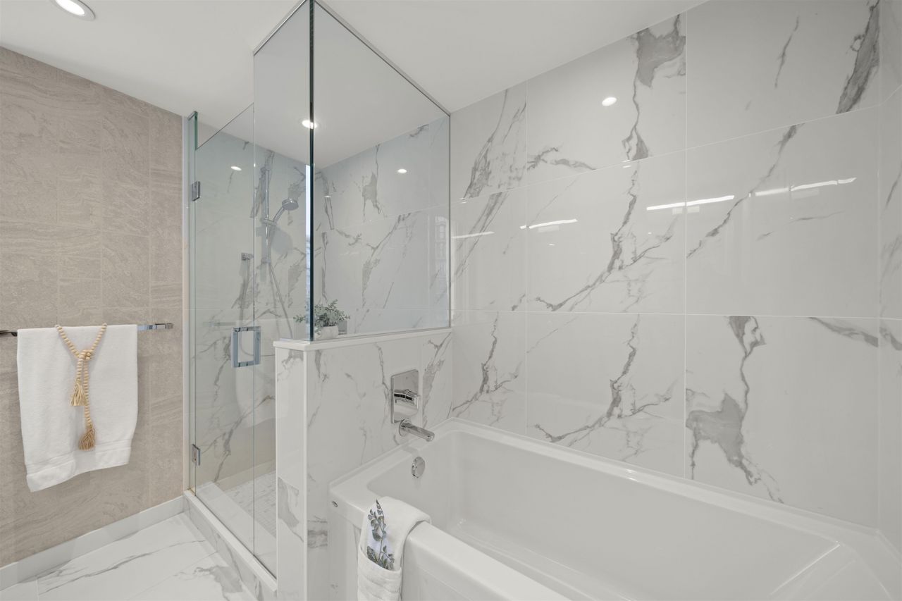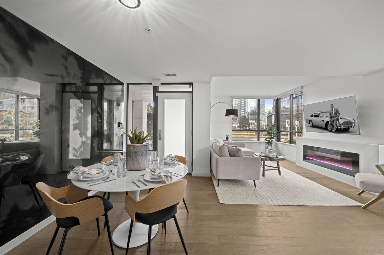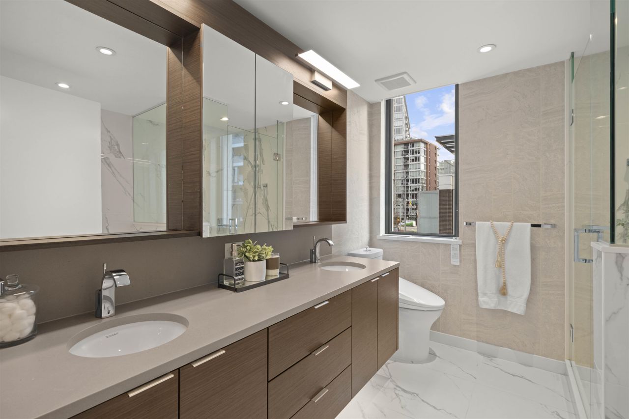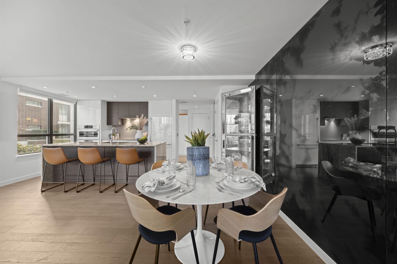 Discover LUXURY WATERFRONT LIVING at Navio North by Award-Winning CONCERT Properties! This rarely available 3 bed, 3 bath + flex CORNER townhome features a spacious open concept layout, overheight ceilings, hardwood flooring, AC, electric fireplace. Entertain your friends and family in the gourmet chef's kitchen w/premium integrated BOSCH appliances, double wall oven, beautiful granite slab countertops. Retreat to the king-size primary thoughtfully designed w/his & her closets and luxurious 5 piece ensuite, w/smart hygiene toilet and NUHEAT floor heating. Amenities include a fitness facility, social lounge w/outdoor terrace. Nestled along the seawall, just steps to Olympic Village and adjacent to the upcoming 6-acre waterfront park! 2 side-by-side parking stalls and 1 storage locker.