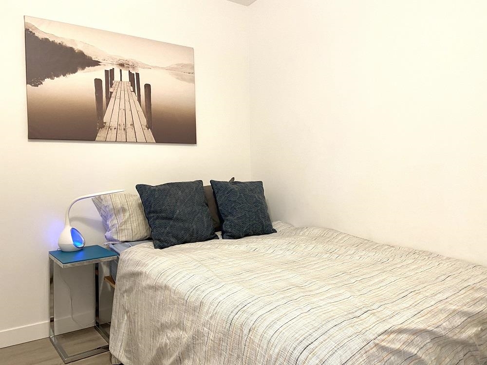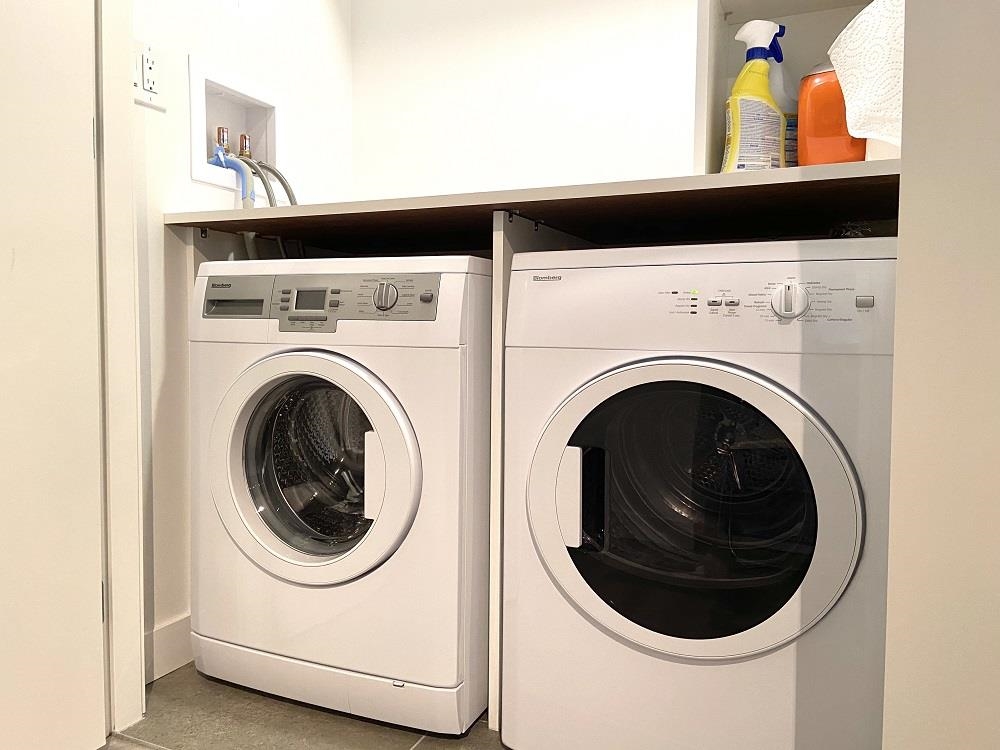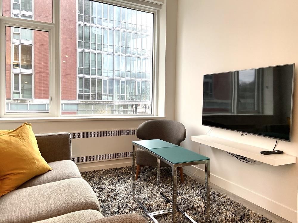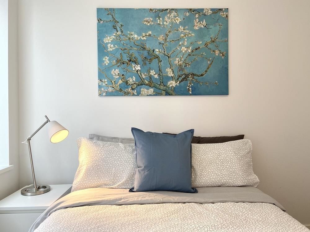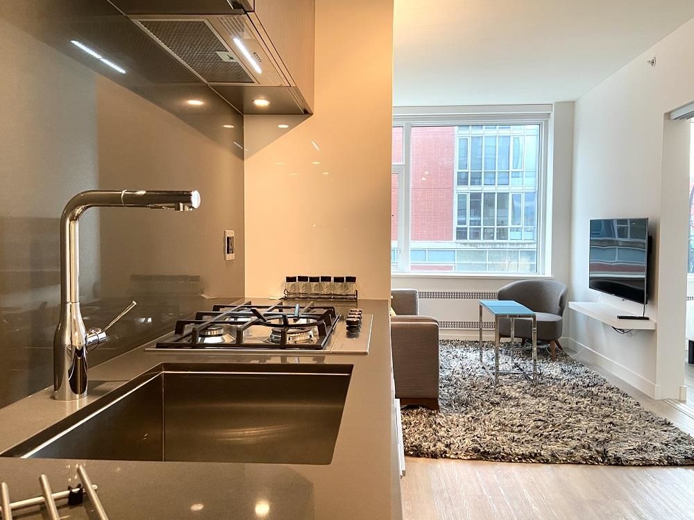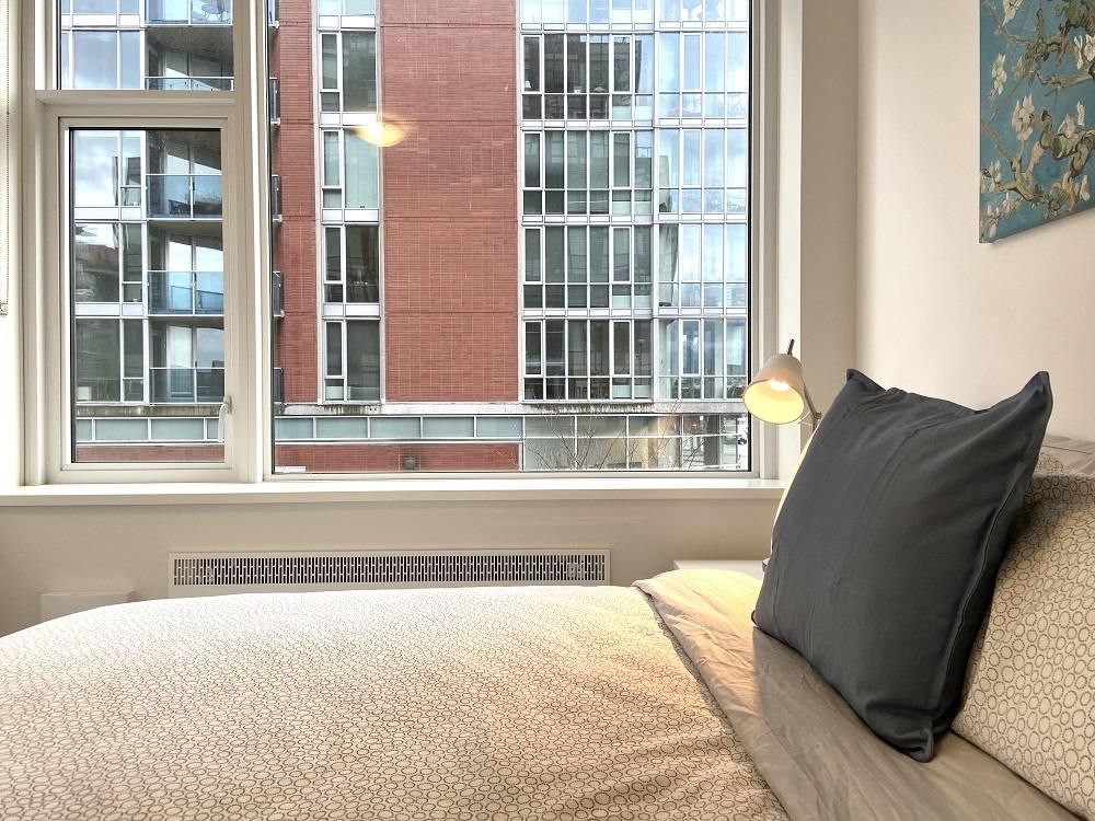 Experience modern urban living in this 670 Sqft furnished 2-bedroom, 1-bathroom condo for rent in East Vancouver's vibrant Mount Pleasant, located within the Ellsworth condo building. The condo boasts a contemporary floorplan designed for optimal functionality. Step into luxury with heated bathroom floors and elegant hardwood flooring throughout. A flex room area provides versatility to suit your needs. Entertainment is at your fingertips with a flat-screen TV, and you'll appreciate the lovely views from the windows. The sleek kitchen is a chef's dream, featuring stylish cabinetry, integrated stainless steel appliances, a glass range, and granite countertops. Both bedrooms offer total privacy, nestled behind frosted sliding doors, and furnished with plush beds, generous closet space.