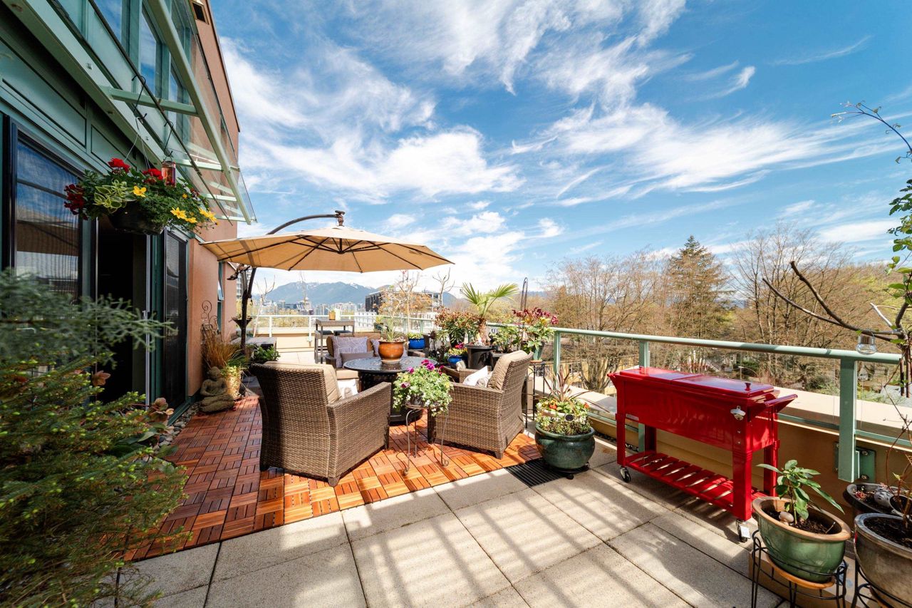 SUNRISE TO SUNSET; Soak up the VIEWS! This BRIGHT, QUIET, open-concept 1210sqft 2 bedroom living space has jaw-dropping Vancouver views. Throw open the sliding doors to your massive 670 sq ft PRIVATE PATIO TERRACE drenched in sunshine; looks like everyone's meeting at your place! Gardener's dream! Beautifully updated (within 5 yrs) 1210 sq ft 2-bedroom NE corner condo at the Pacifica, Cambie Village. Wow: engineered oak hardwood, heated bathroom floors, sleek rain shower, a chef’s kitchen w/granite counters, new appliances, custom cherry eating bar, built-in pantry, dry bar & more. Swanky Building amenities: indoor pool, hot tub, sauna, gym, rec room, GUEST SUITE, updated elevators, proactive strata. Support dog ok. Transit, shops, groceries, VIJ's! BBQ ok. OPEN Sat/Sun 2:30-4