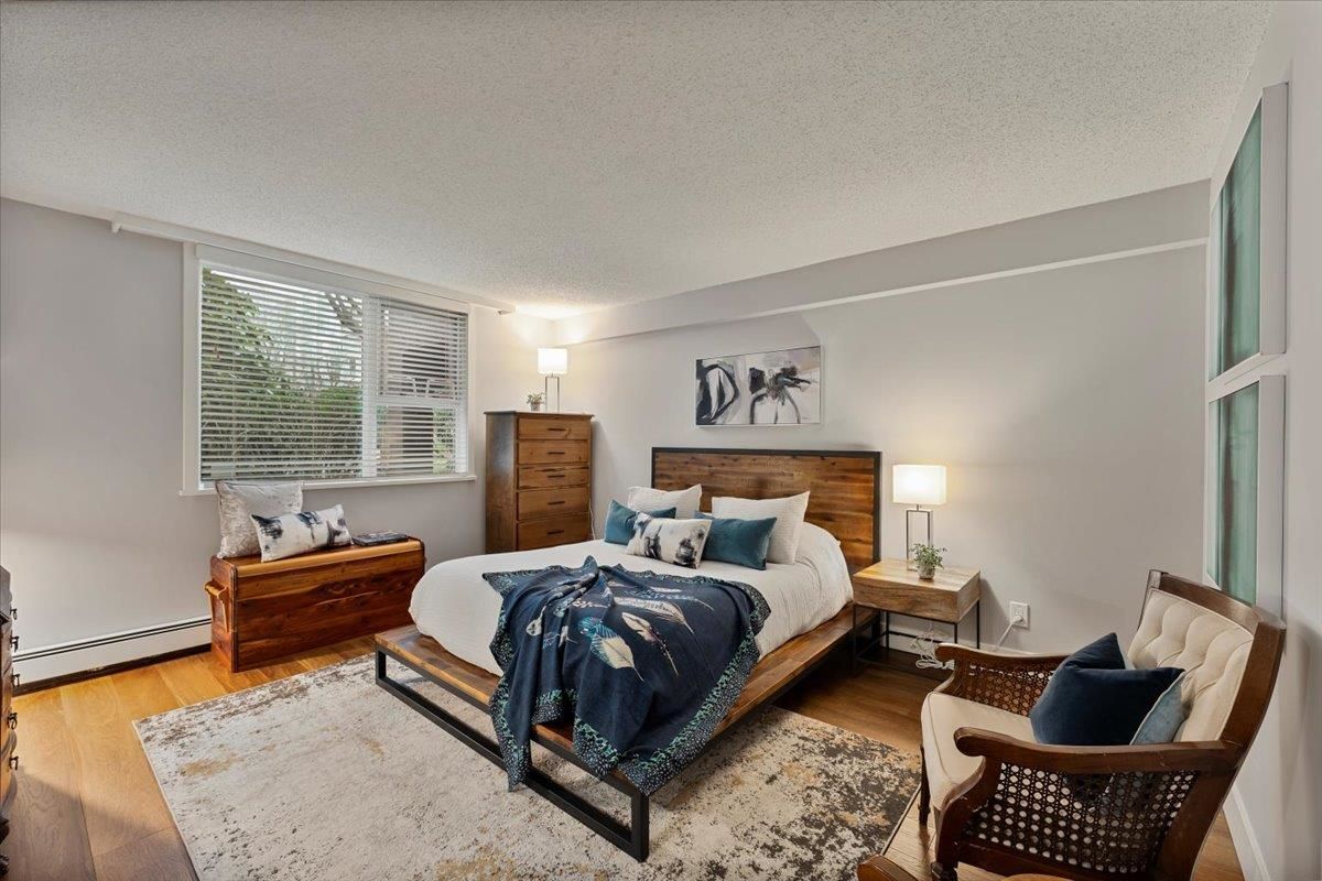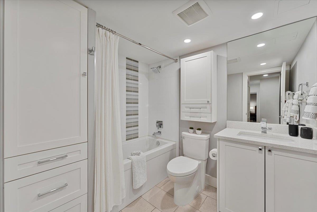 Stunning, FULLY renovated corner suite with over 1200SF of functional living space plus a spacious private patio. Whisper quiet location with a park-like view. Enjoy a spacious open kitchen w/quartz counters & ample cupboard space. Updated bath with built-in storage. Other updates include gorgeous H/W floors, LED lighting, new moldings, doors & more! Easily accommodates house size furniture including a king-sized bed in the primary. Plus full size sxs laundry & generous closet space. Complete w/secured parking, storage, well-equipped gym & on-site caretaker. This concrete, rain-screened, FREEHOLD building is in one of Vancouver's premier locations; FALSE CREEK. Steps to the waterfront, Canada Line/transit, Granville Island, Olympic Village, DT & Cambie St. shops. Open Sat March 8th 2-4.