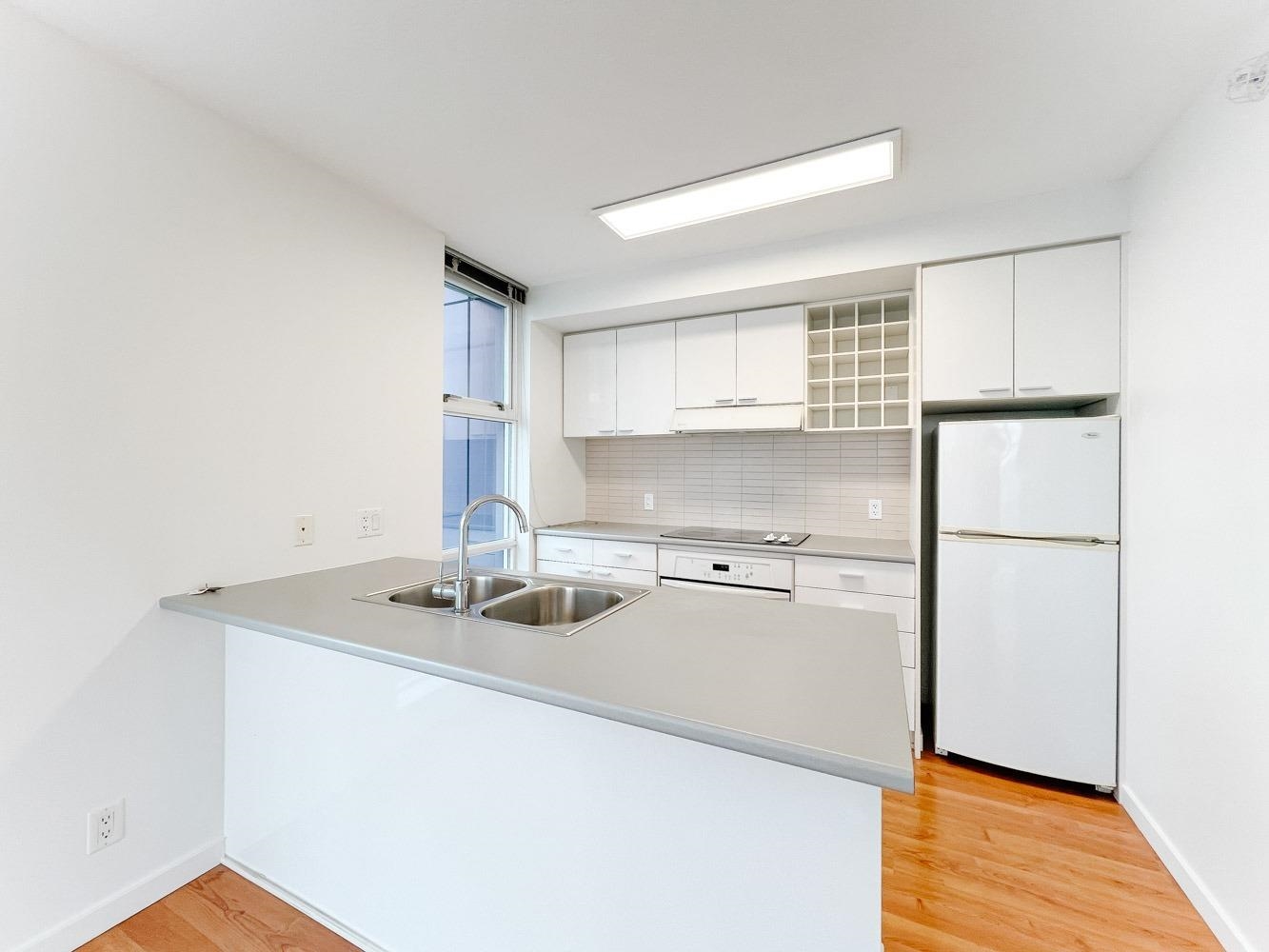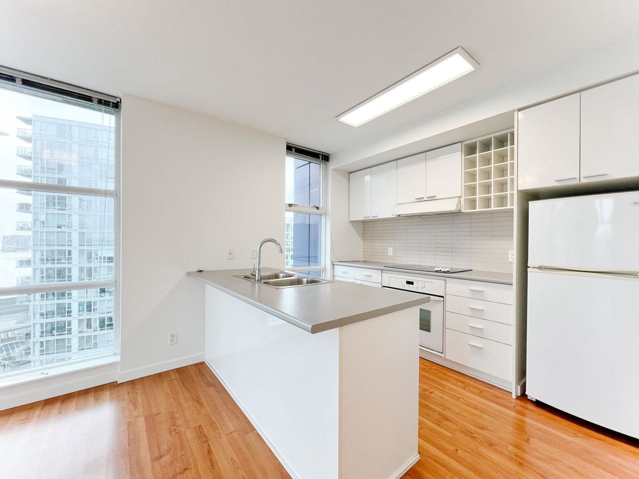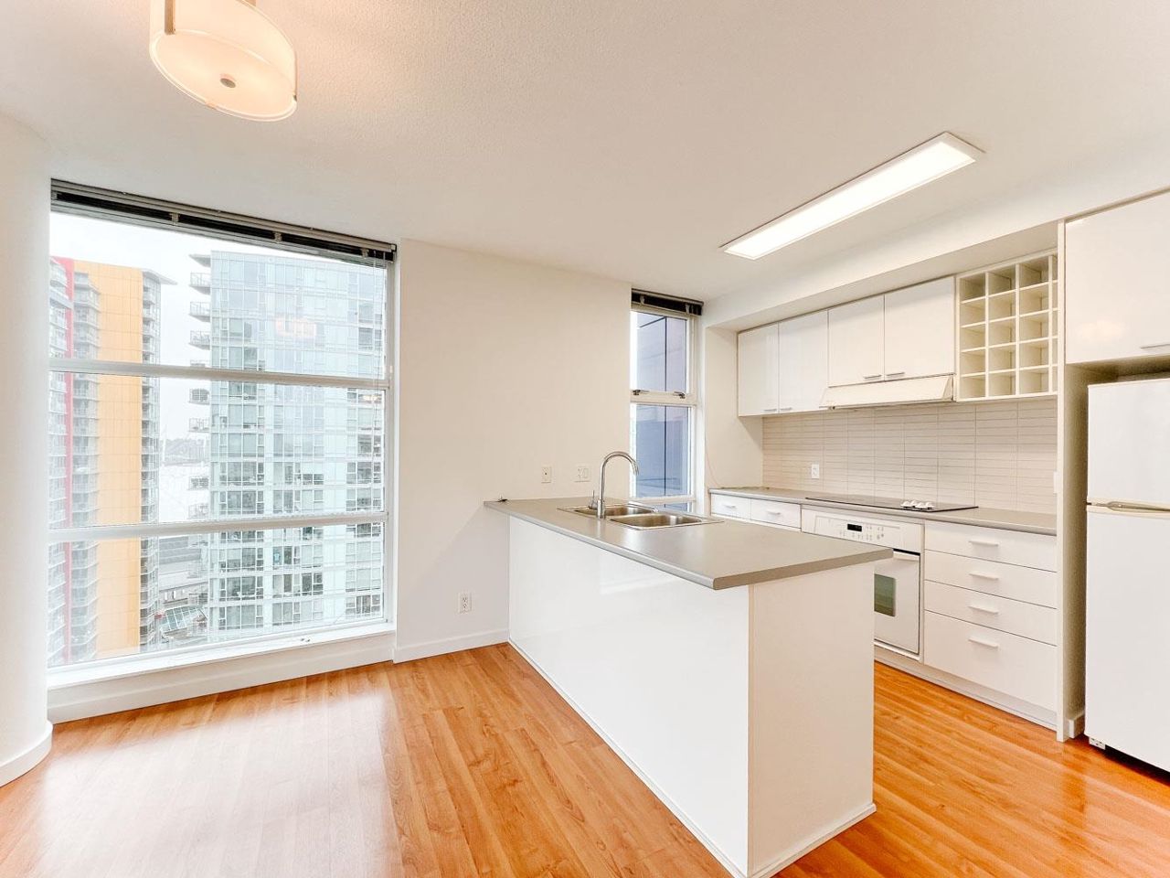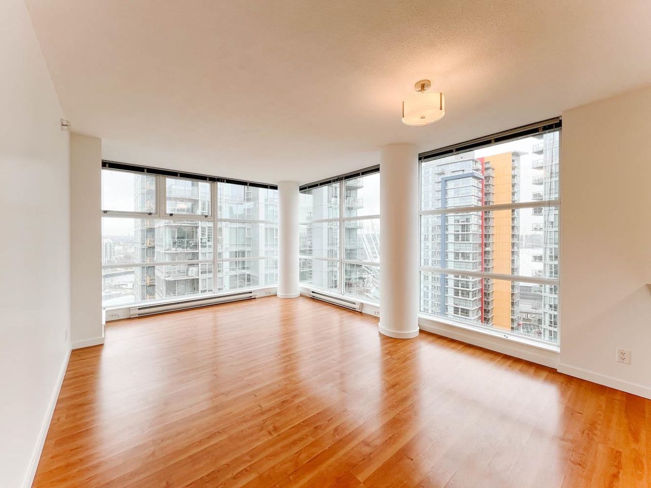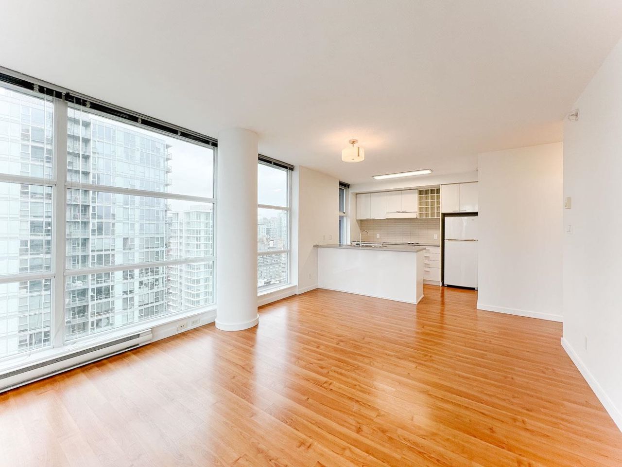 This corner unit at the Spectrum building in downtown Vancouver means one lucky Tenant is going to enjoy floor to ceiling windows and views from EVERY Room!!! Centrally located, this building overlooks all the action of Rogers Arena and BC Place and is only a short walk from popular Robson Street, Vancouver Public Library, Yaletown, and the seawall. Southeast facing, this 900 sq.ft. 25th floor unit offers an open layout and additional deck area for summer BBQ’s or those wanting to exercise their green thumb. Hardwood floors in the main living area, bright kitchen that overlooks the action, side by side bedrooms of similar side, and in suite laundry. Small storage space / computer room also part of the package and full amenities available at the Ozone including swimming pool and gym.