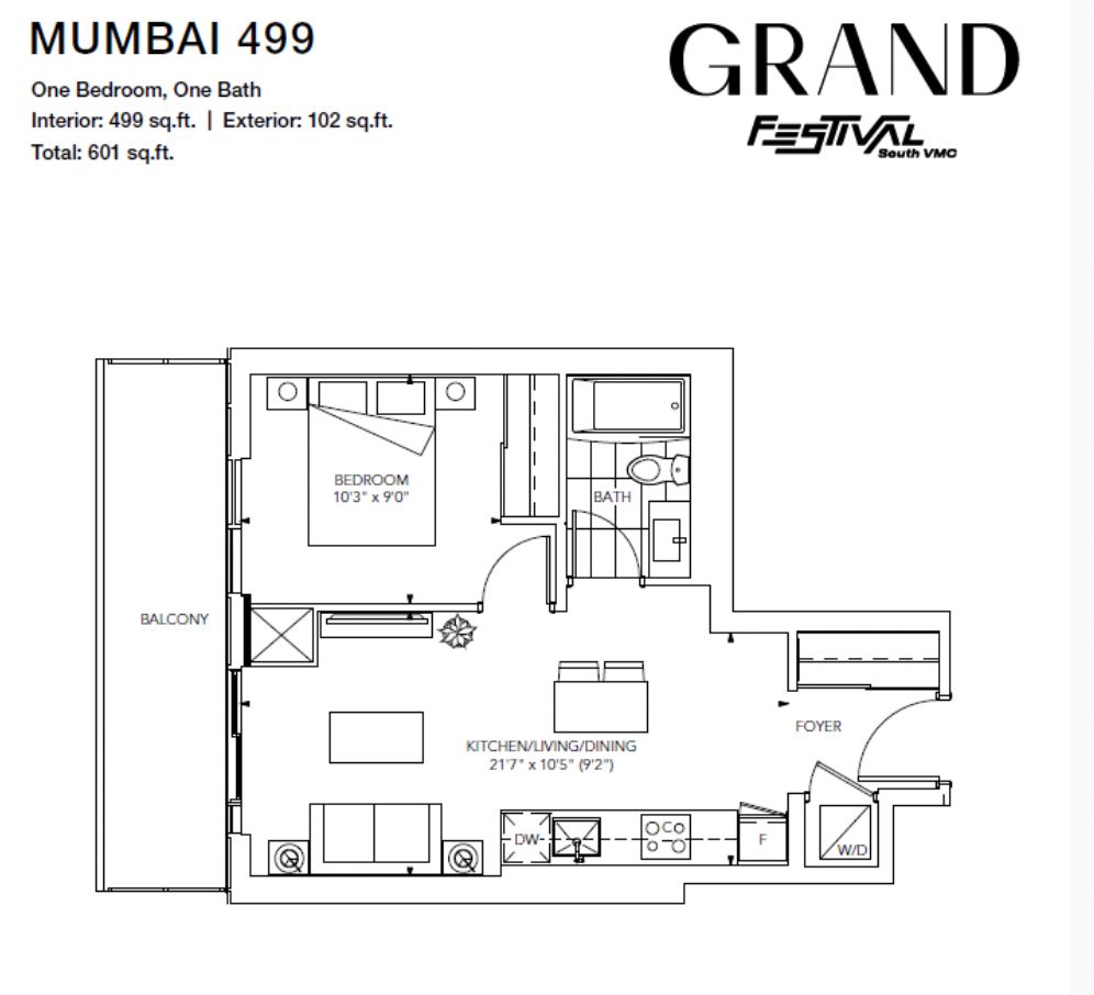 Brand new Grand Festival Condo Tower D. Bright WEST facing, 1 BED, 1 BATH unit with openconcept combine Living/Dining/Kitchen, 499sqft indoor and large balcony . Amenities: A state-of the-art theatre, party room with bar area, fitness centre, lounge and meeting room, guestsuites, terrace with BBQ area and much more. Steps to Vaughan Metropolitan Centre & SubwayStation, Close to all the grocery store and minutes to HWY 400 and HWY 7