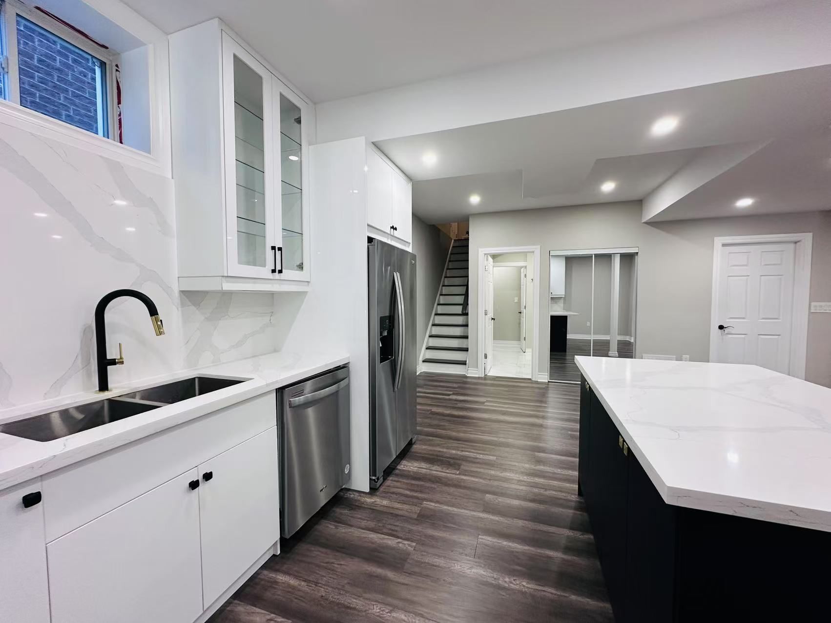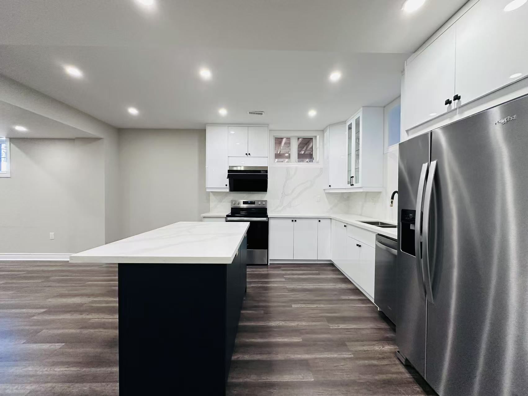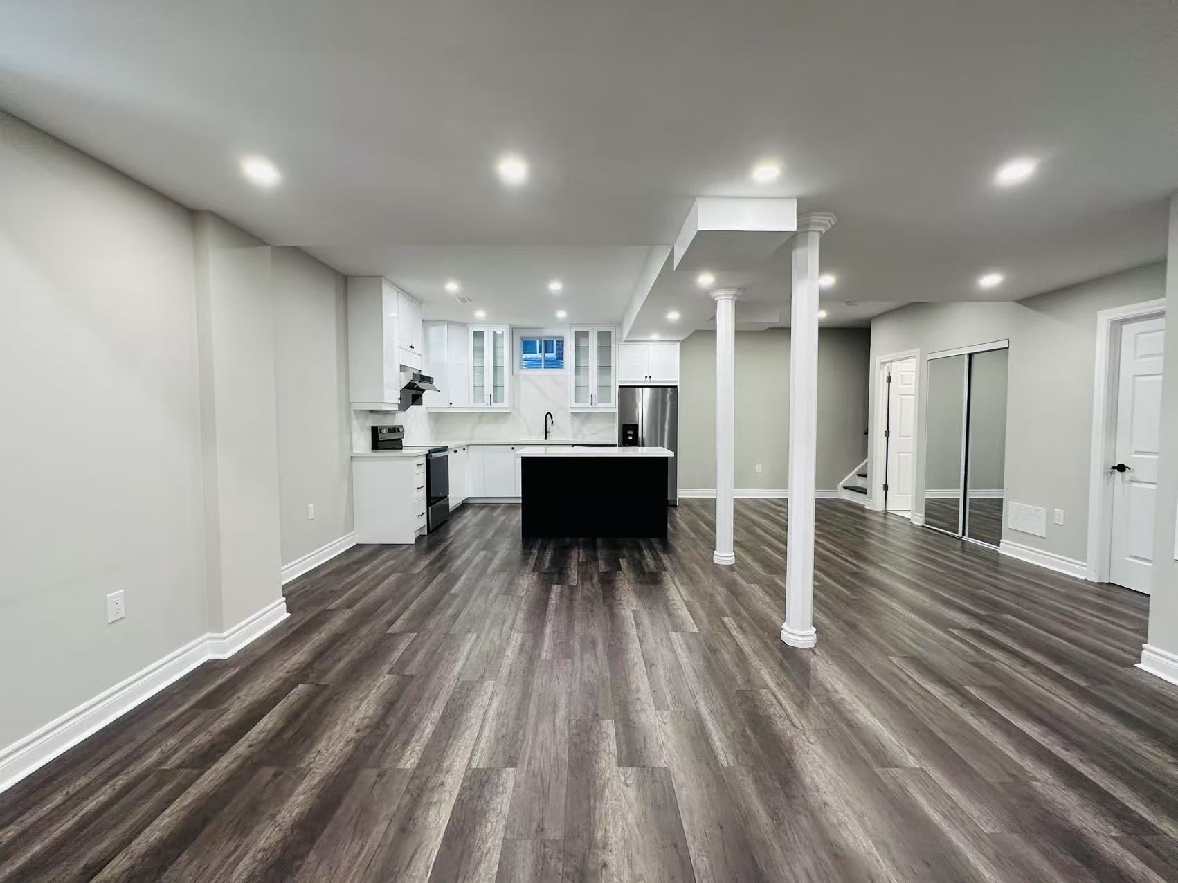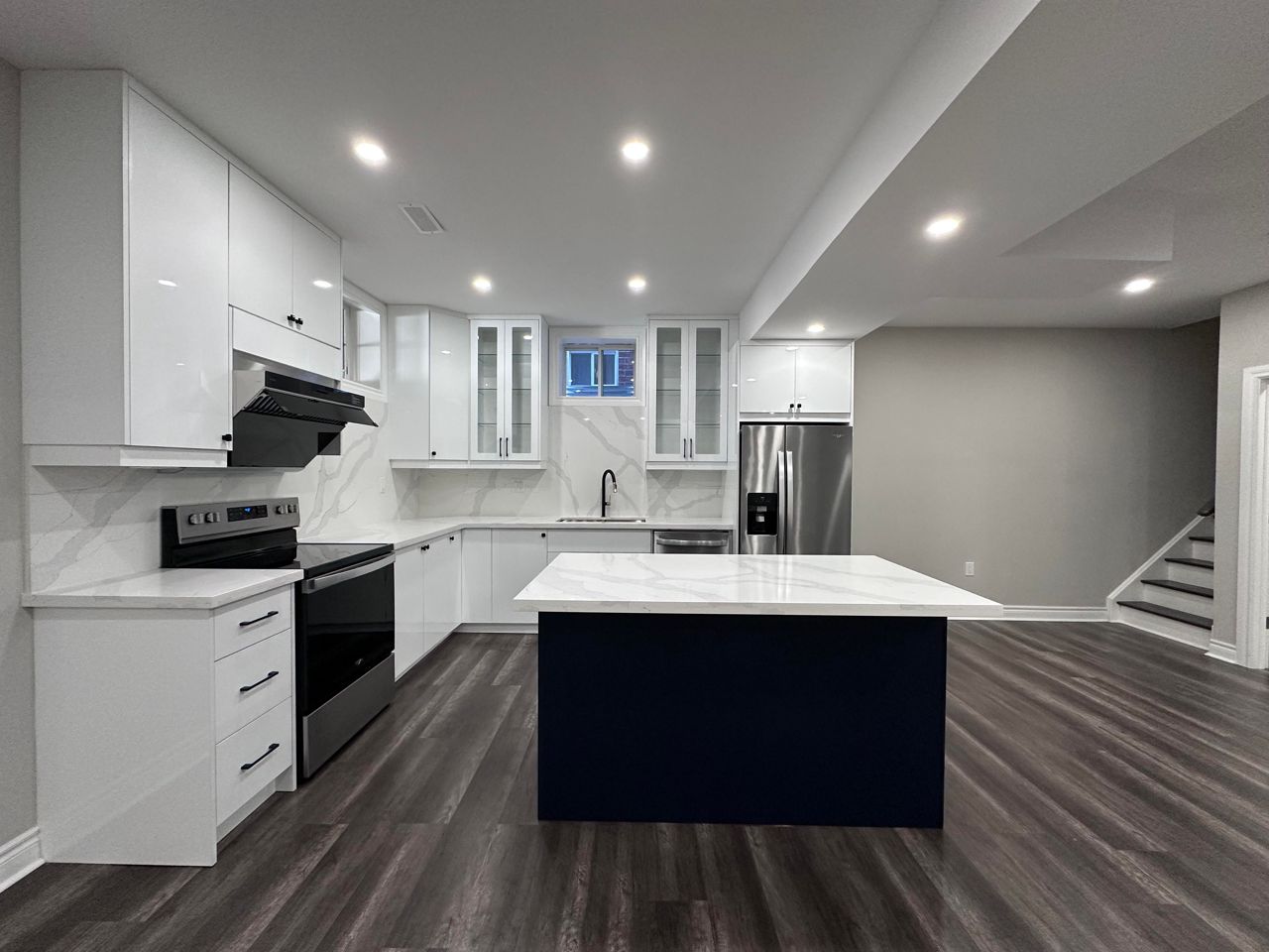 Discover this gorgeous newly renovated basement apartment with a private separate entrance, located in the highly desirable Patterson community and backing onto a serene park and lush ravine offering breathtaking natural views right from your doorstep! This bright and spacious 1-bedroom, 1-bath suite features elegant new laminate flooring, modern pot lights, a stylish kitchen with brand-new stainless steel appliances, a beautiful island, and oversized above-grade windows that flood the space with natural light. The sleek 3-piece bathroom offers a large glass shower, and the unit includes private ensuite laundry and two outdoor parking spaces. 1/3 of utilities charged in addition to monthly rent. Enjoy unbeatable convenience with walking distance to grocery stores, top-rated schools, GO Station, and parks, plus easy access to Wonderland, Vaughan Hospital, golf courses, and Highways 400 & 407 the perfect blend of comfort, nature, style, and location!