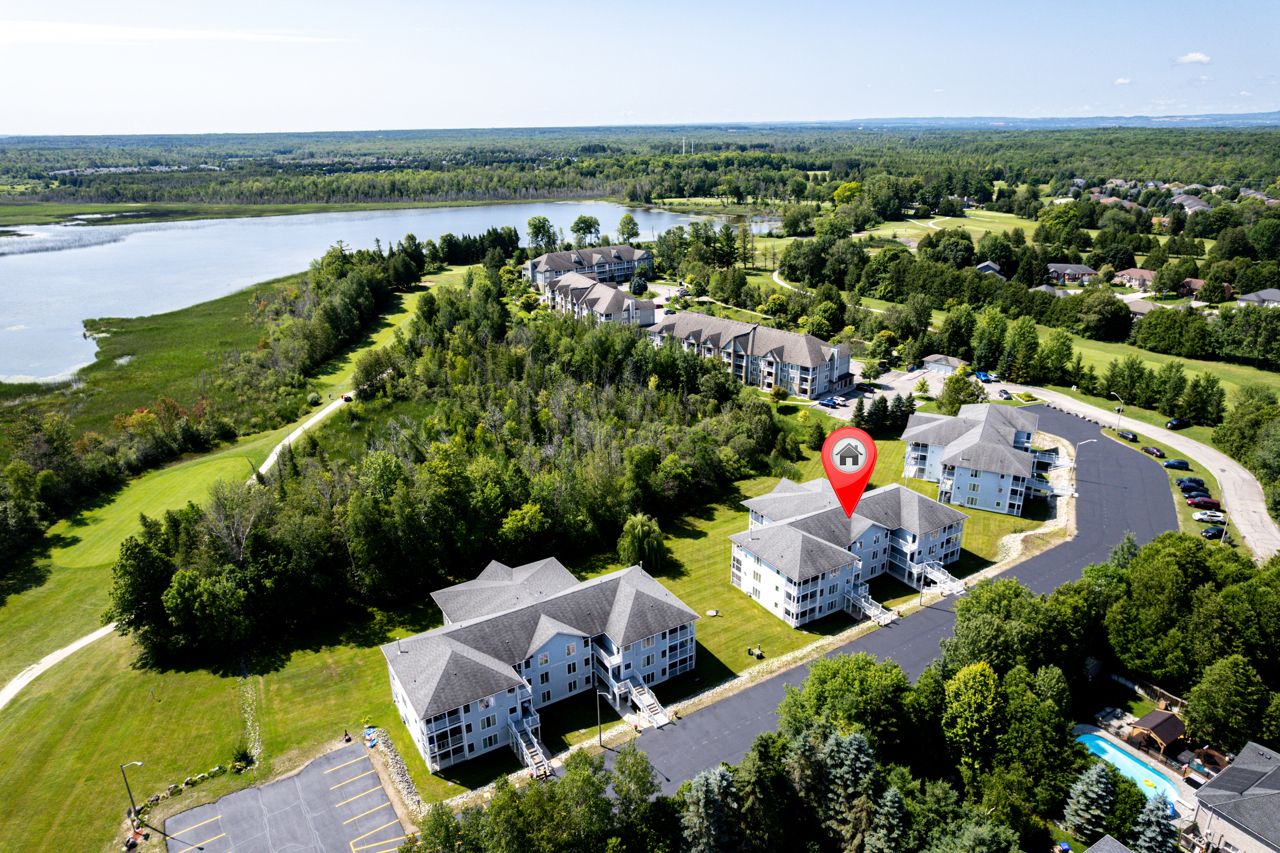 Nestled in the peaceful and sought-after Marlwood Golf Course community, this bright and spacious 1,243 sq. ft. corner unit is the perfect retreat for golfers, hikers, and nature lovers. With direct views of the Marlwood Golf Course and close access to the parking area, this well-designed condominium offers 2 large bedrooms and 2 full bathrooms, including a primary suite with an ensuite and access to the fully screened deck that connects to the living room and overlooks the serene green space. Plenty of storage and closet space make this condo a pleasure to live in. The generous second bedroom provides ample space for a queen- or king-size bed. The open-concept kitchen features stainless steel appliances, a dining area, and a spacious living room with a gas fireplace, all leading to the screened balcony with peaceful views. A second deck, accessible from the kitchen, offers a natural gas BBQ hookup, additional storage, and a refreshing breeze ideal for outdoor enjoyment. Additional conveniences include in-suite laundry with a new full-size washer and dryer, as well as plenty of visitor parking. The furnace is new as of December 2023. Pets are welcome in this condo corp with some restrictions. Just a few minutes drive to the beach, Stonebridge Town Centre, restaurants, a medical center, and more, with hiking trails and Wasaga Beach Provincial Park just moments away. A perfect place to call home don't miss this opportunity!
