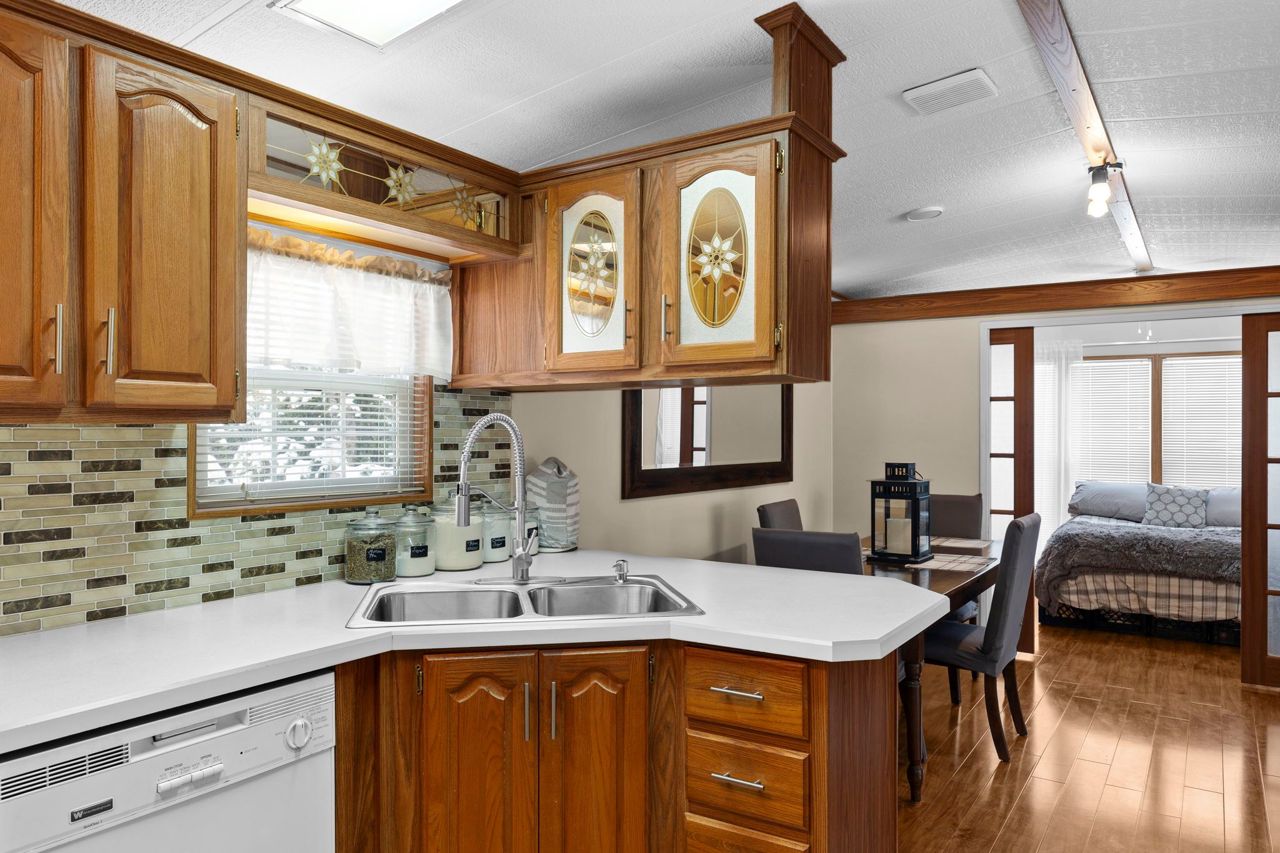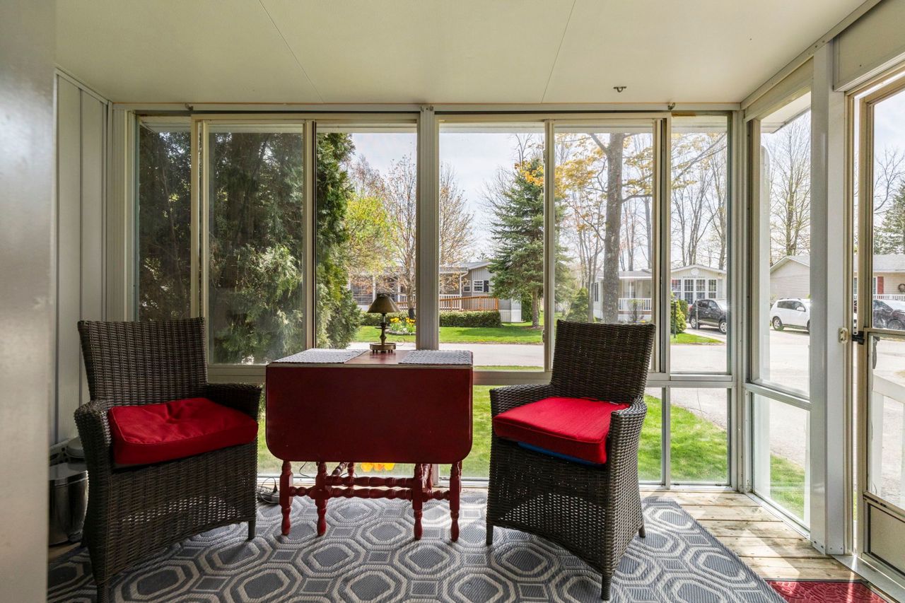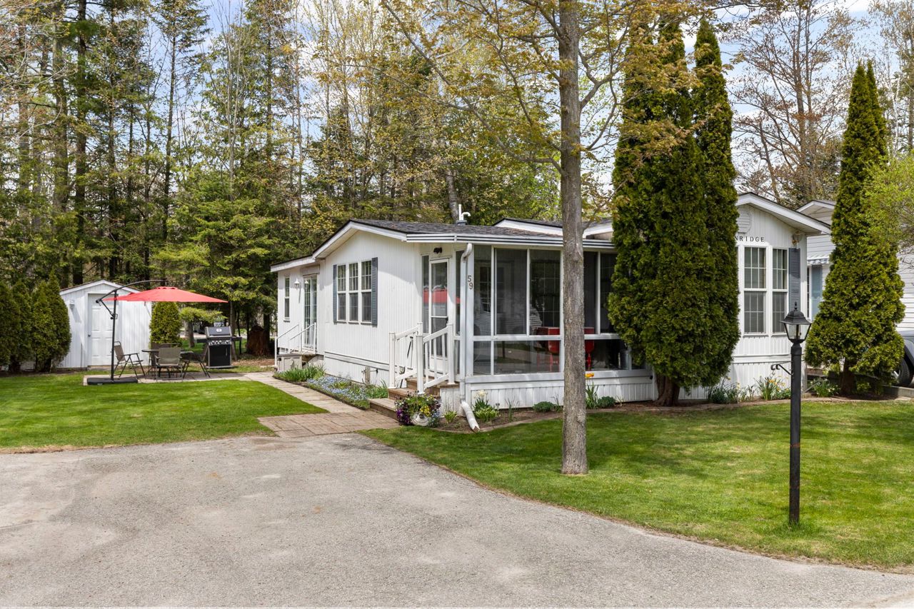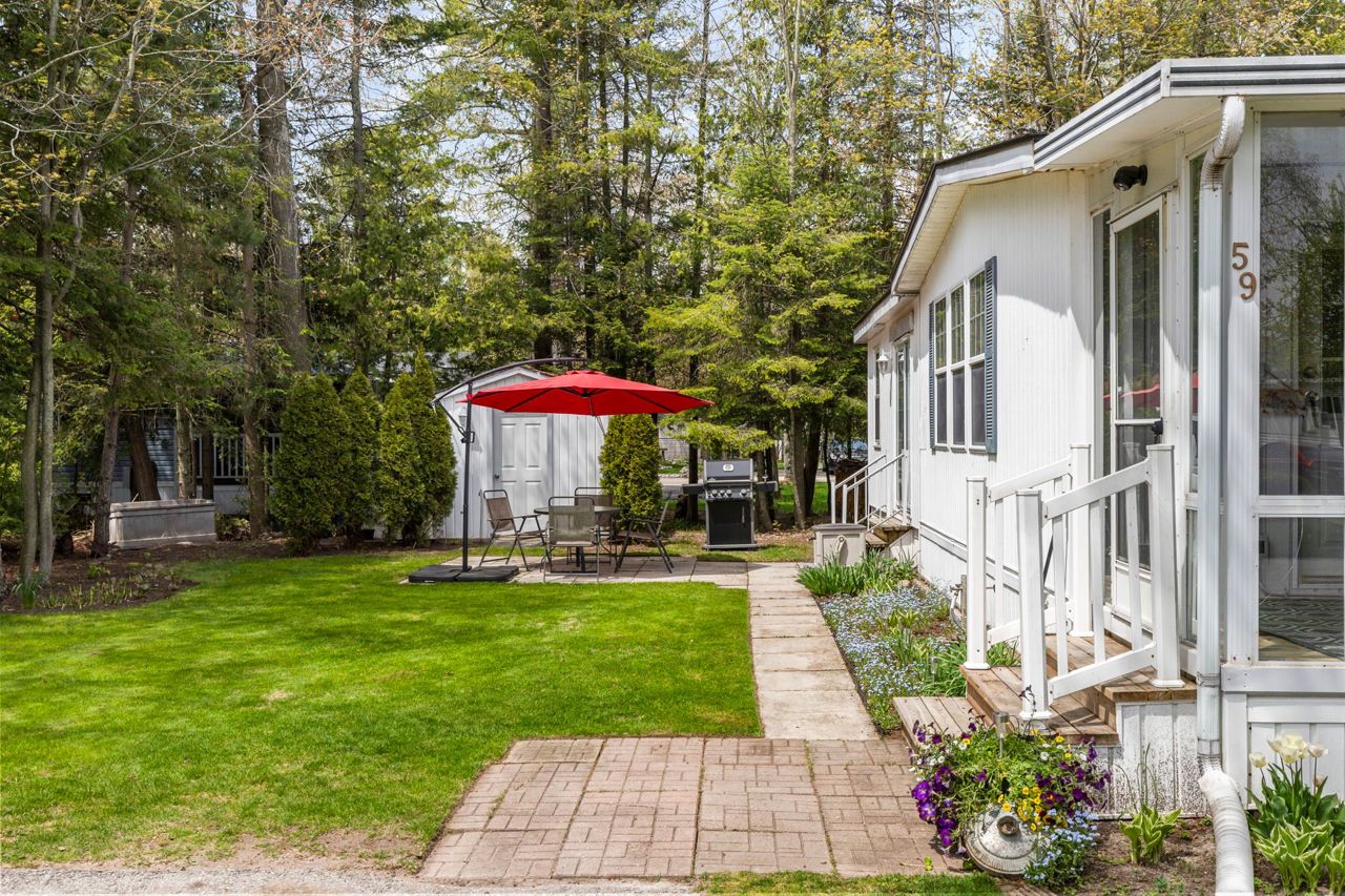 PRICED TO SELL! Welcome to 59 Topaz Street, an affordable year-round living solution located in Parkbridge's Country Life Resort! This active community offers amenities to enjoy including five pools, tennis courts, mini-golf, rec hall, and close proximity to shopping, the beach, and the new arena & library. Some great highlights of this home include an enclosed front porch, enough space for 3 bedrooms, generously sized living room, and updated bathroom with skylight. Larger lot offers privacy and includes a patio area, landscaped garden and shed for extra storage. No rental items on property and rough in for gas fireplace in the living room. Roof done in 2020, all appliances and fixtures included. If you are looking for a perfect balance of a lively community with excellent amenities and lower fees then most communities around, you have found it!