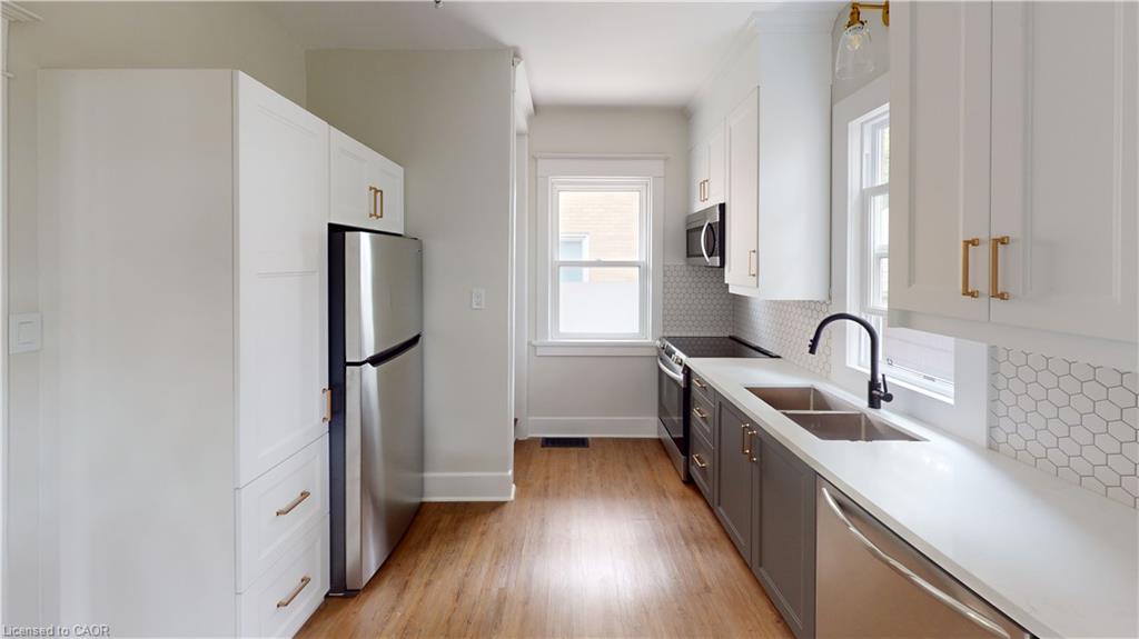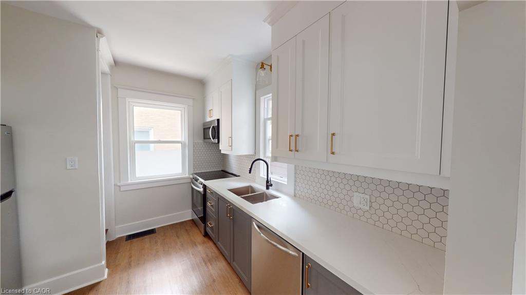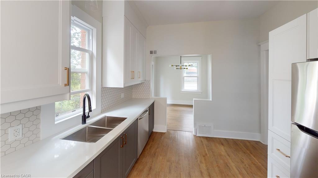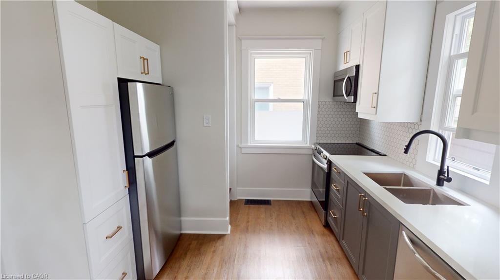 Welcome to 132 Graham Street, Waterloo! This charming home offers an authentic living experience in the heart of Midtown. Tucked away on a tranquil, tree-lined street, this location is just blocks away from the bustling urban core, combining peaceful living with unbeatable convenience. Featuring 3 bedrooms and 1 bathroom, this unit is completely carpet-free, providing a clean and modern living environment. The detached garage offers additional storage and the property includes two additional driveway parking spaces, ensuring you'll never struggle to find parking. You'll also have the pleasure of enjoying the shared, fully fenced backyard, perfect for outdoor gatherings or relaxation. Extensive updates have been made, including a newer kitchen and appliances (2023), ready for your culinary adventures. The property exudes authenticity, with its 9' ceilings, original hardwood staircase, and flooring on the upper level, all seamlessly integrated with modern updates to meet your contemporary lifestyle needs. Enjoy the oversized front porch, where you can embrace the sense of community that defines the Midtown neighborhood. Just a short walk from your doorstep, you'll find an array of amenities and the peaceful serenity of this delightful neighborhood. Wander down the Spur Line Trail, and you'll discover Uptown Waterloo, brimming with events, coffee shops, and restaurants. Alternatively, a stroll in the other direction leads you to Downtown Kitchener. Transportation is a breeze, with easy access to nearby transit options, including the LRT stop outside Grand River Hospital. For those commuting by car, the expressway is just an 8-minute drive away. The location is ideal for professionals, with Sunlife, Grand River Hospital, Google, Breithaupt Park, Perimeter, and more all within walking distance. October 1st move-in date preferred and No students please. Tenants pay their own hydro and 70% of gas & water.