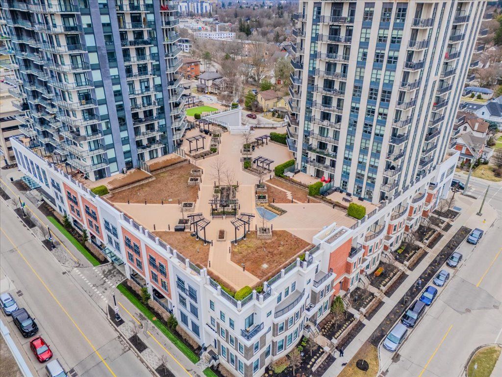 Welcome to Unit 408 at 144 Park Street - a rare corner suite offering luxurious urban living in one of Uptown Waterloo's most prestigious condo residences. This 2-bedroom, 2-bathroom home boasts an expansive 900 sq ft private terrace, delivering an unparalleled outdoor lifestyle in the heart of the city. Whether you're hosting friends, soaking up the morning sun with your coffee, or unwinding with a glass of wine under the stars, this outdoor space elevates everyday living. Inside, a bright, open-concept layout is framed by floor-to-ceiling windows that flood the unit with natural light and offer sweeping Uptown views. The primary suite features a private ensuite and generous closet space, while the second bedroom serves beautifully as a guest room, office, or personal retreat. Enjoy stylish, modern finishes throughout - granite countertops, stainless steel appliances, full-height cabinetry, in-suite laundry, contemporary lighting, and ample storage. As a resident of 144 Park, you'll enjoy access to top-tier amenities including concierge service, secure underground parking and lockers, a fully equipped fitness studio, private theatre room, guest suite, resident lounge, and a rooftop terrace with BBQs, lounging areas, and a putting green - all designed to enhance comfort and community. Outside your door, Uptown Waterloo awaits. Walk to Bauer Marketplace, Vincenzos, boutique shops, trendy cafés, yoga studios, and some of the city's finest dining spots. The nearby Allen LRT stop provides easy access to everything Kitchener-Waterloo has to offer. Pet-friendly and meticulously maintained, 144 Park is ideal for professionals, downsizers, or anyone seeking upscale living with unmatched walkability. Unit 408 with one of the largest private terraces in the building is a truly rare opportunity. Don't miss your chance to make it home.