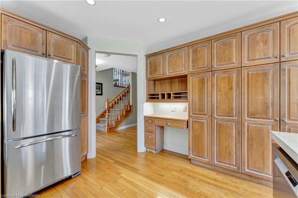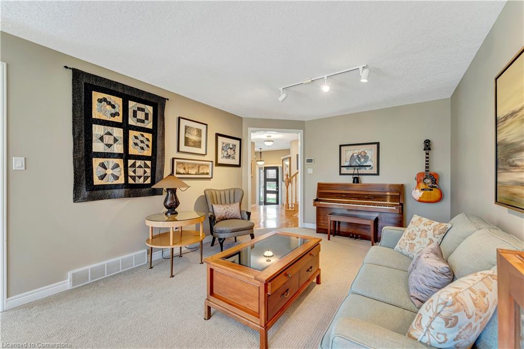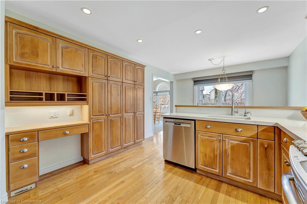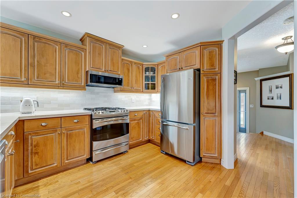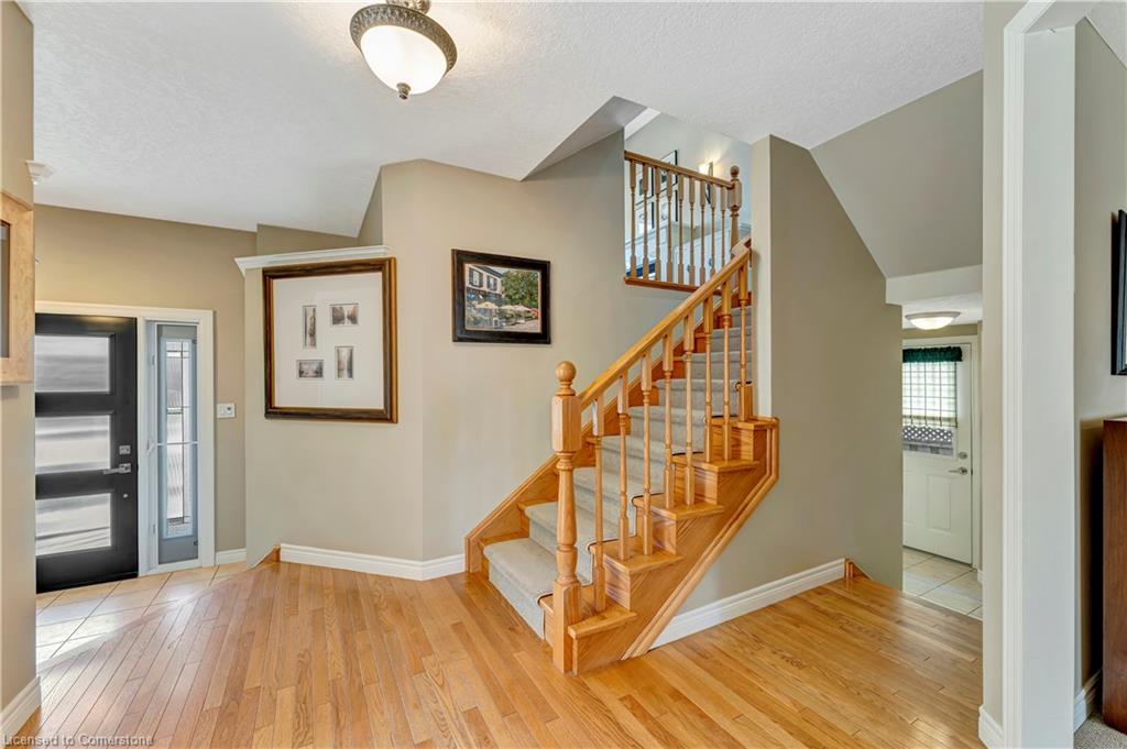 Dream Home Alert in Eastbridge! Step into this meticulously maintained 2,800 sq ft family home nestled in one of Waterloo’s most sought-after neighbourhoods. From the moment you arrive, you’ll be captivated by the curb appeal. Featuring a stunning façade, mature landscaping, and large concrete driveway with parking for 6 total vehicles. Inside, a spacious and welcoming foyer flows effortlessly into the main living areas. The modern eat-in updated kitchen boasts quartz countertops, stylish backsplash, and plenty of cabinet space, with seamless access to the professionally landscaped backyard. Perfect for entertaining, the main floor also offers a formal dining room, comfortable living room, powder room, and secondary foyer off the double car garage. Before reaching upstairs, relax in the sun-filled second living/family room located over the garage, complete with soaring ceilings, expansive windows, and a cozy gas fireplace. The upper level features a generously sized primary bedroom with a walk-in closet and private ensuite, two additional spacious bedrooms, a large secondary bathroom, and a flexible office that can easily be converted back into a 2nd level laundry room. The basement offers even more living space, including a recreation room, three storage rooms, rough-in for a fourth bathroom, laundry room, utility room, and the potential for a fourth bedroom! Step outside to enjoy the professionally landscaped backyard oasis—complete with a composite deck, lush gardens, and a variety of trees offering privacy and shade. All of this, just steps from top-rated schools, RIM Park, the Grand River trails, and with quick access to major highways. Your forever home in the heart of Eastbridge!