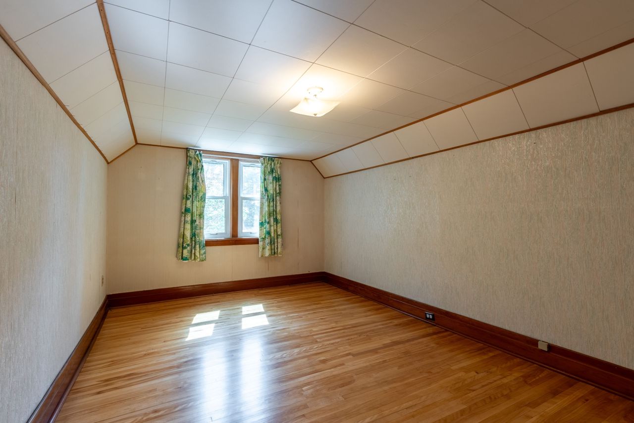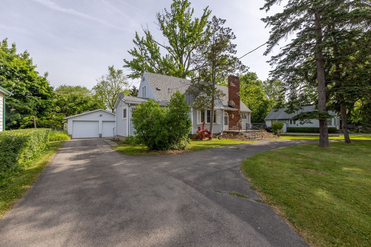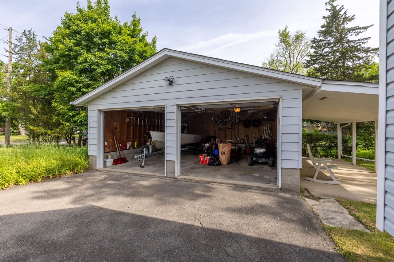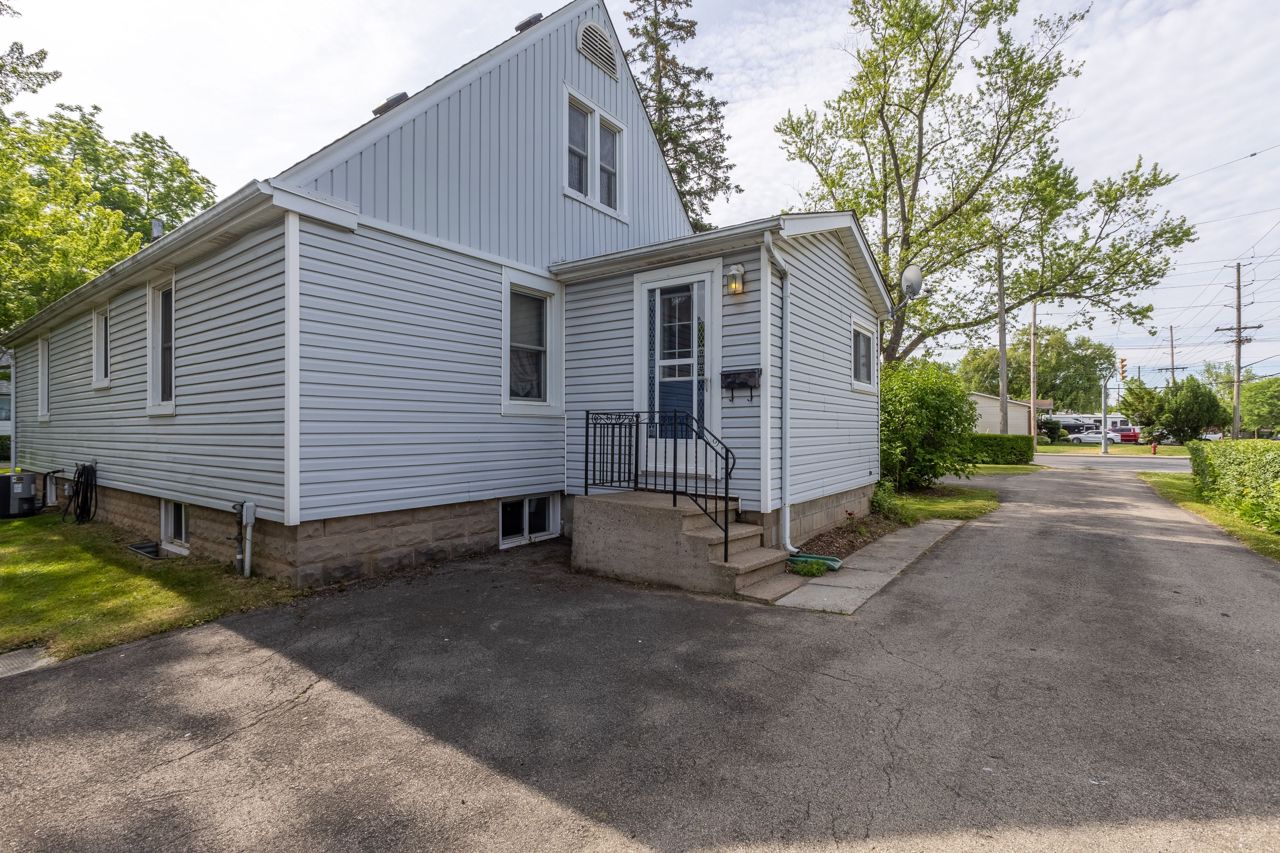 Charming Character Home on Expansive Park-Like Lot! Welcome to this beautifully maintained 3-bedroom, 2-bathroom character home, ideally situated on a generous 101.5-foot-wide lot featuring a circular driveway and an oversized double garage, perfect for a home-based tradesperson or car enthusiast. Step inside to find pristine hardwood floors flowing throughout the home, enhancing its timeless charm. The inviting living room boasts a cozy wood-burning fireplace, stained glass windows, and a distinctive rounded wood door creating a warm and welcoming atmosphere. The formal dining room is ideal for hosting family gatherings or entertaining guests. On the main floor, two well-appointed bedrooms feature classic wood trim and vintage crystal door handles, while the updated 4-piece bathroom adds modern comfort to this classic home. Upstairs, a spacious third bedroom offers a walk-in closet and beautiful hardwood flooring, accompanied by an expansive bonus space ideal for a great room, office, or additional living area.The unfinished basement provides abundant storage, a laundry area with a sink and toilet, and a substantial bonus room awaiting your personal touch. Outdoors, the expansive lot provides ample parking and a serene setting. The detached double garage is equipped with its own breaker panel, a gas line for heating, and a covered patioan ideal workspace or retreat. A separate generator panel offers added peace of mind during power outages. Notable Updates: House Roof (2016) | Garage Roof (2021) | Electrical Updates (2010) | Furnace (2008) | Central A/C (2020) | Hot Water on Demand System (2008). This exceptional property blends classic charm with modern upgrades and practical features! Dont miss your opportunity to make it yours. Bonus: Adjacent severed lot (33 x 121) also available for sale. Keep it as part of your park-like property or sell separately. Offered at $140,000.