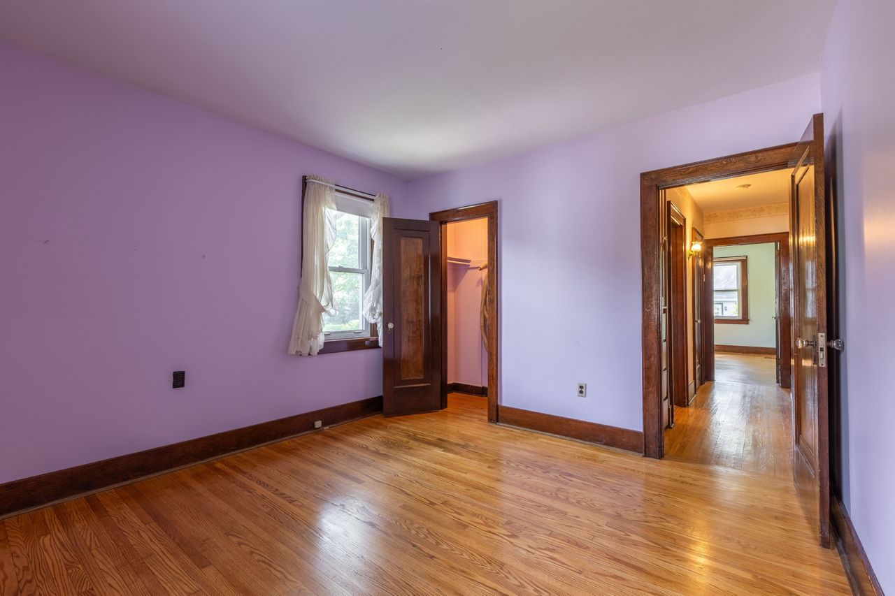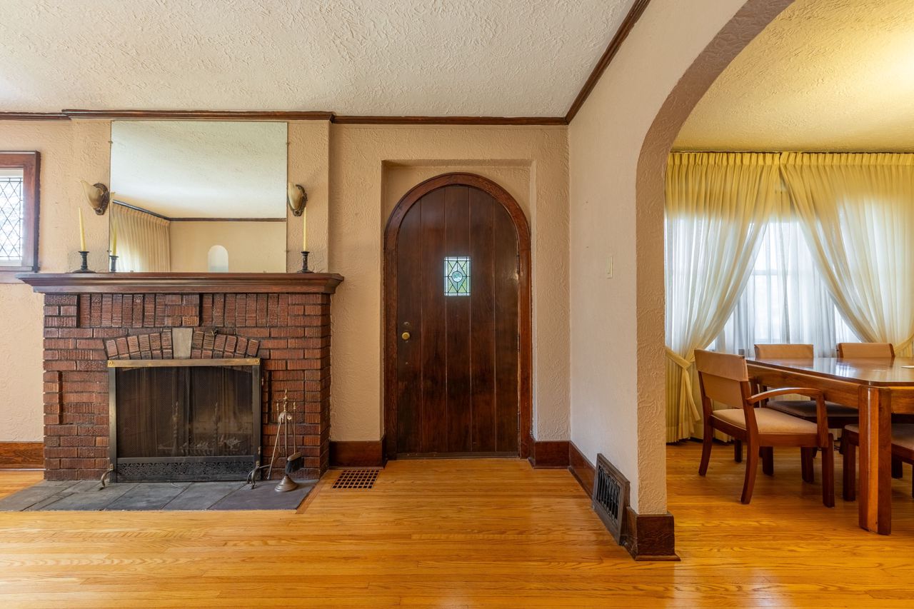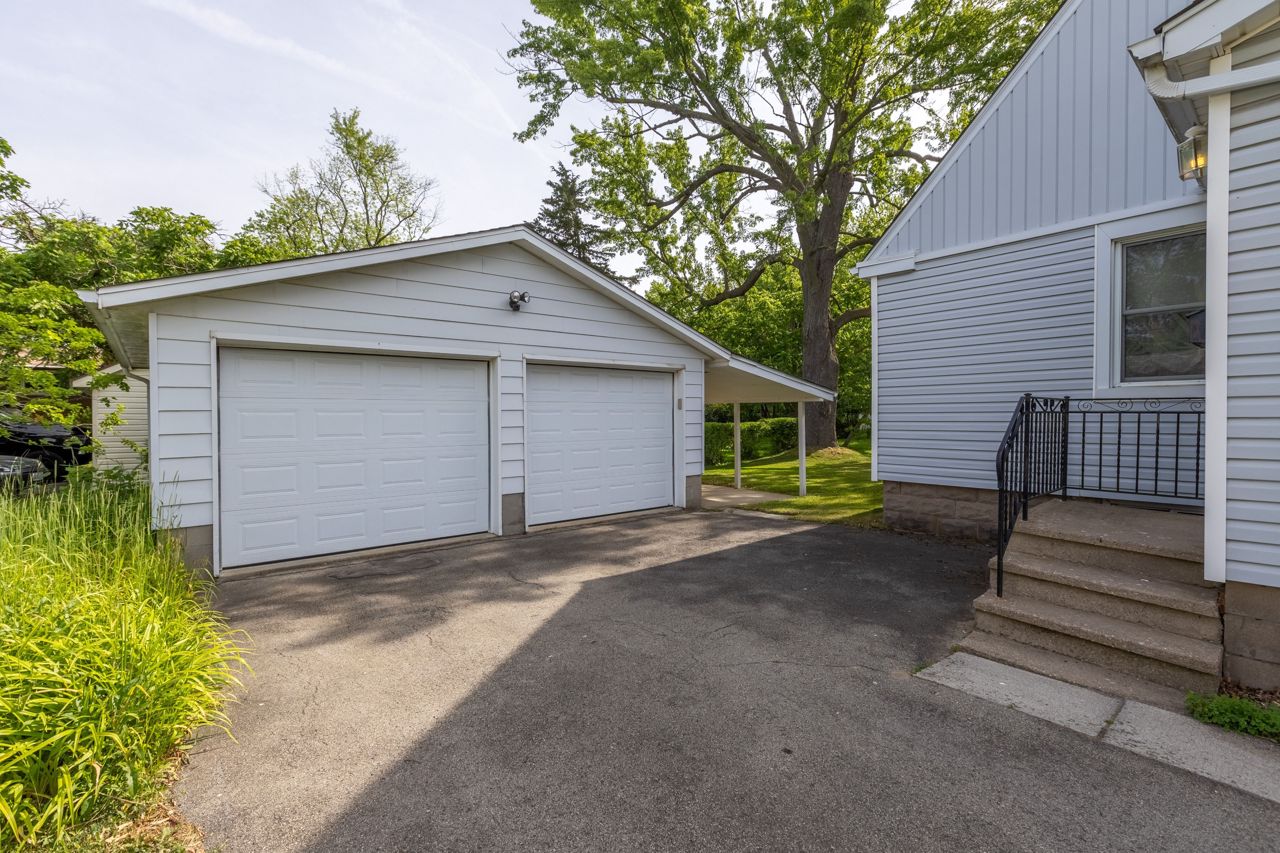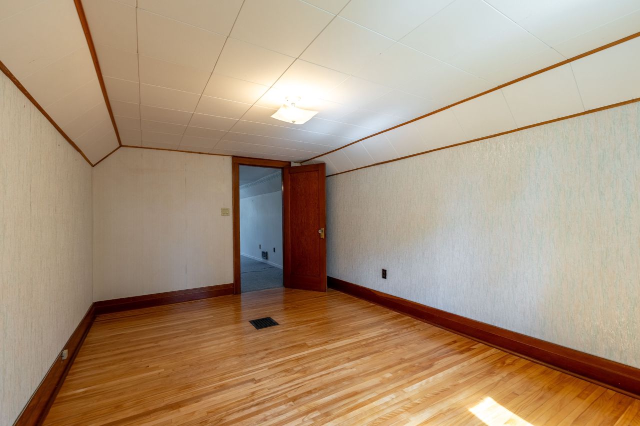 Charming Character Home on Expansive Park-Like Lot! Welcome to this beautifully maintained 3-bedroom, 2-bathroom character home, ideally situated on a generous 101.5-foot-wide lot featuring a circular driveway and an oversized double garage, perfect for a home-based tradesperson or car enthusiast. Step inside to find pristine hardwood floors flowing throughout the home, enhancing its timeless charm. The inviting living room boasts a cozy wood-burning fireplace, stained glass windows, and a distinctive rounded wood door creating a warm and welcoming atmosphere. The formal dining room is ideal for hosting family gatherings or entertaining guests. On the main floor, two well-appointed bedrooms feature classic wood trim and vintage crystal door handles, while the updated 4-piece bathroom adds modern comfort to this classic home. Upstairs, a spacious third bedroom offers a walk-in closet and beautiful hardwood flooring, accompanied by an expansive bonus space ideal for a great room, office, or additional living area.The unfinished basement provides abundant storage, a laundry area with a sink and toilet, and a substantial bonus room awaiting your personal touch. Outdoors, the expansive lot provides ample parking and a serene setting. The detached double garage is equipped with its own breaker panel, a gas line for heating, and a covered patioan ideal workspace or retreat. A separate generator panel offers added peace of mind during power outages. Notable Updates: House Roof (2016) | Garage Roof (2021) | Electrical Updates (2010) | Furnace (2008) | Central A/C (2020) | Hot Water on Demand System (2008). This exceptional property blends classic charm with modern upgrades and practical features! Dont miss your opportunity to make it yours. Bonus: Adjacent severed lot (33 x 121) also available for sale. Keep it as part of your park-like property or sell separately. Offered at $140,000.