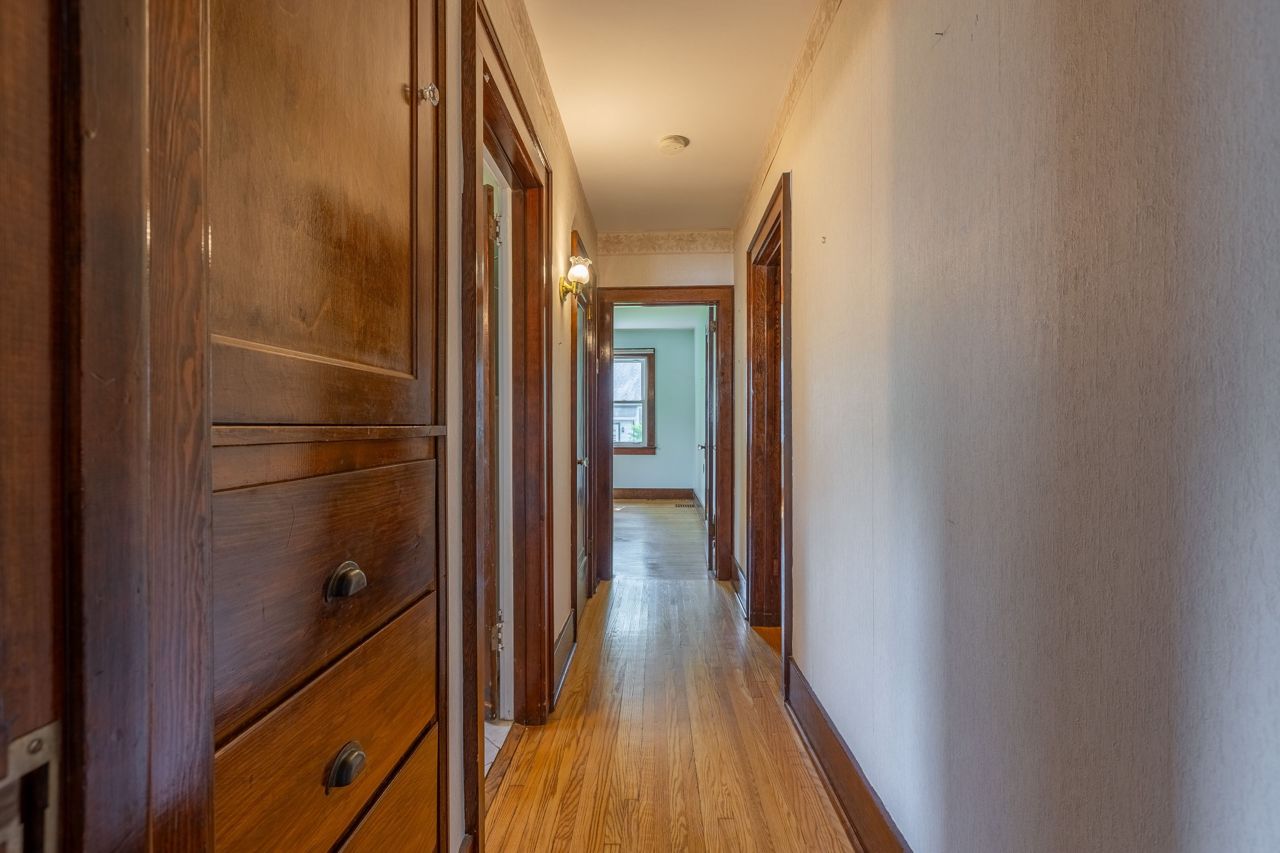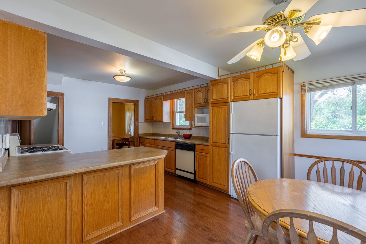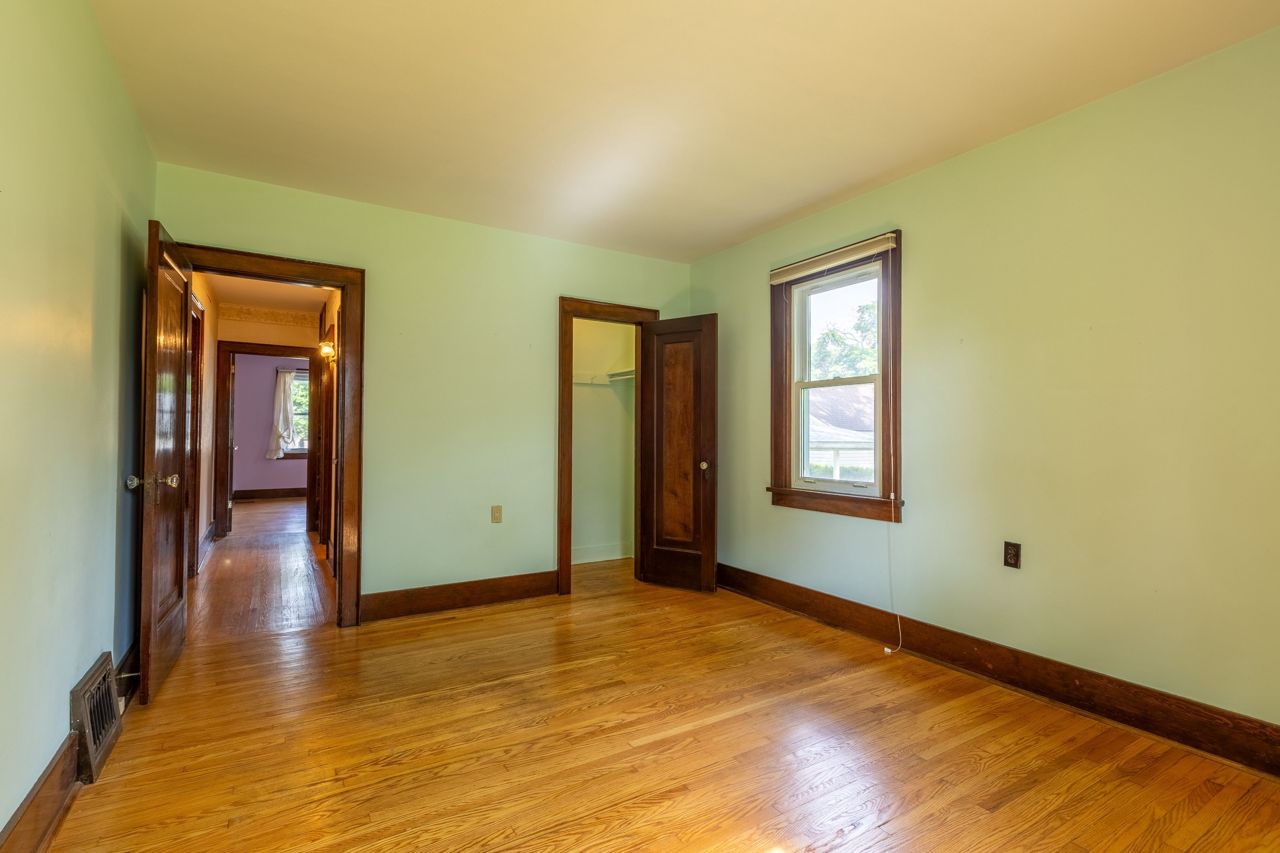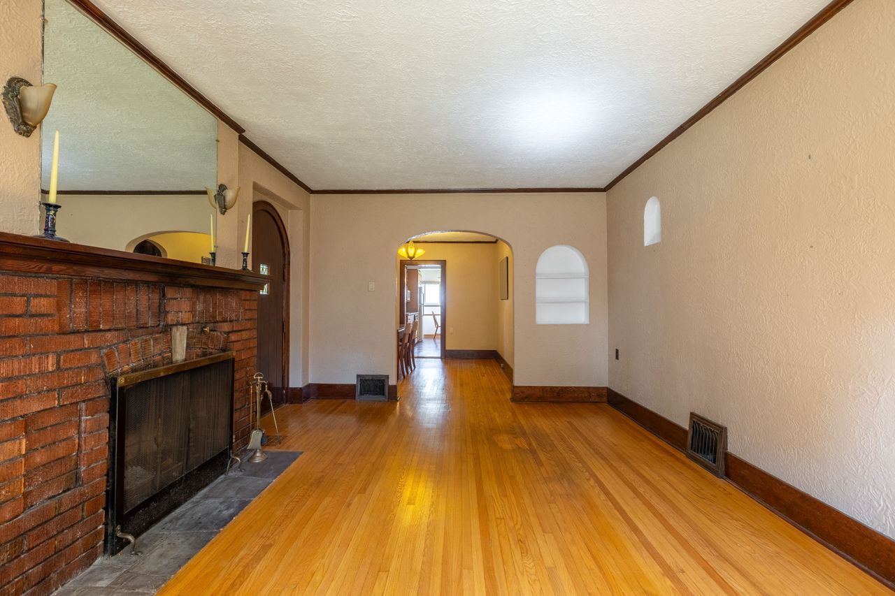 Charming Character Home on Expansive Park-Like Lot! Welcome to this beautifully maintained 3-bedroom, 2-bathroom character home, ideally situated on a generous 101.5-foot-wide lot featuring a circular driveway and an oversized double garage, perfect for a home-based tradesperson or car enthusiast. Step inside to find pristine hardwood floors flowing throughout the home, enhancing its timeless charm. The inviting living room boasts a cozy wood-burning fireplace, stained glass windows, and a distinctive rounded wood door creating a warm and welcoming atmosphere. The formal dining room is ideal for hosting family gatherings or entertaining guests. On the main floor, two well-appointed bedrooms feature classic wood trim and vintage crystal door handles, while the updated 4-piece bathroom adds modern comfort to this classic home. Upstairs, a spacious third bedroom offers a walk-in closet and beautiful hardwood flooring, accompanied by an expansive bonus space ideal for a great room, office, or additional living area.The unfinished basement provides abundant storage, a laundry area with a sink and toilet, and a substantial bonus room awaiting your personal touch. Outdoors, the expansive lot provides ample parking and a serene setting. The detached double garage is equipped with its own breaker panel, a gas line for heating, and a covered patioan ideal workspace or retreat. A separate generator panel offers added peace of mind during power outages. Notable Updates: House Roof (2016) | Garage Roof (2021) | Electrical Updates (2010) | Furnace (2008) | Central A/C (2020) | Hot Water on Demand System (2008). This exceptional property blends classic charm with modern upgrades and practical features! Dont miss your opportunity to make it yours. Bonus: Adjacent severed lot (33 x 121) also available for sale. Keep it as part of your park-like property or sell separately. Offered at $140,000.