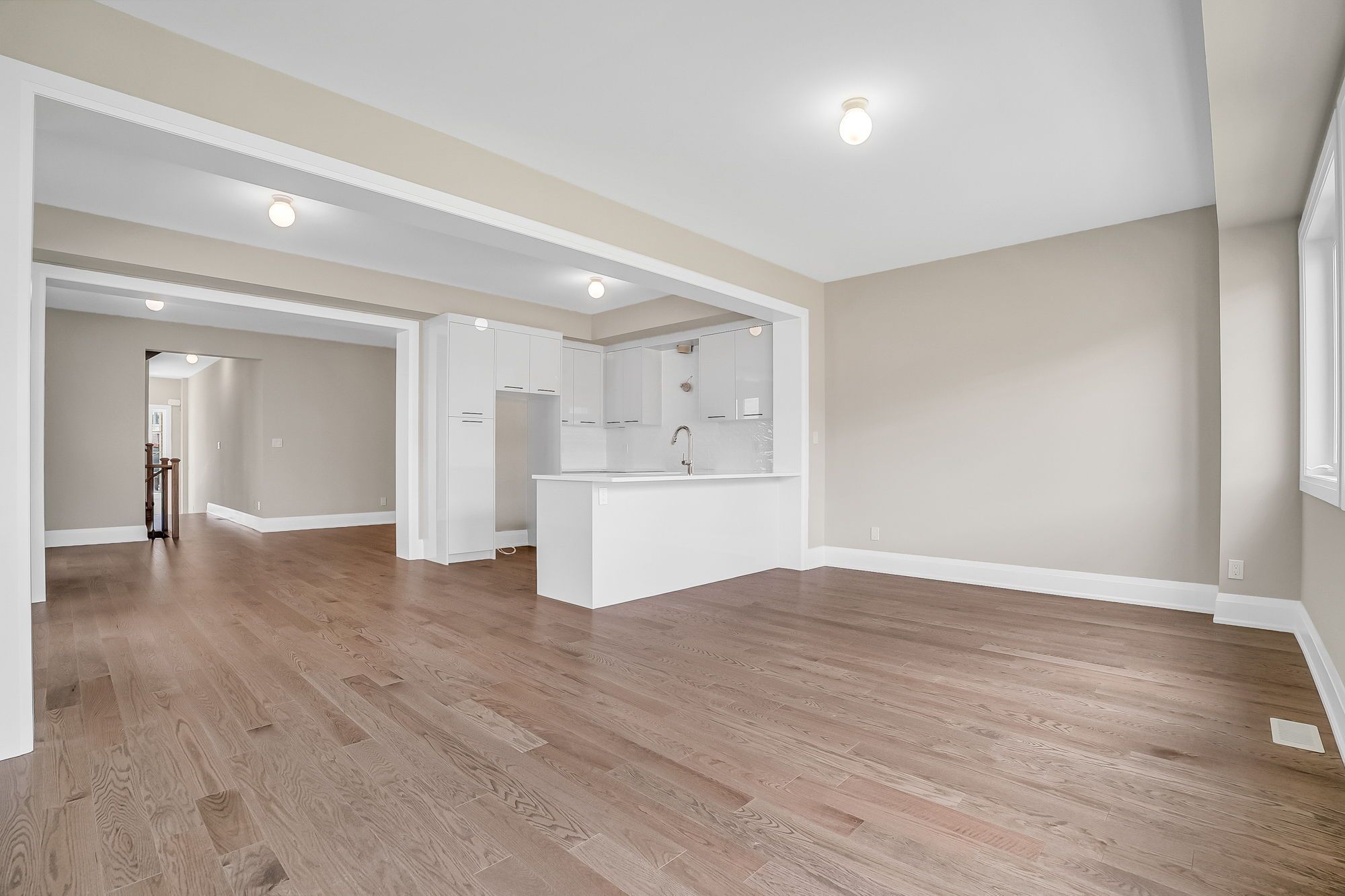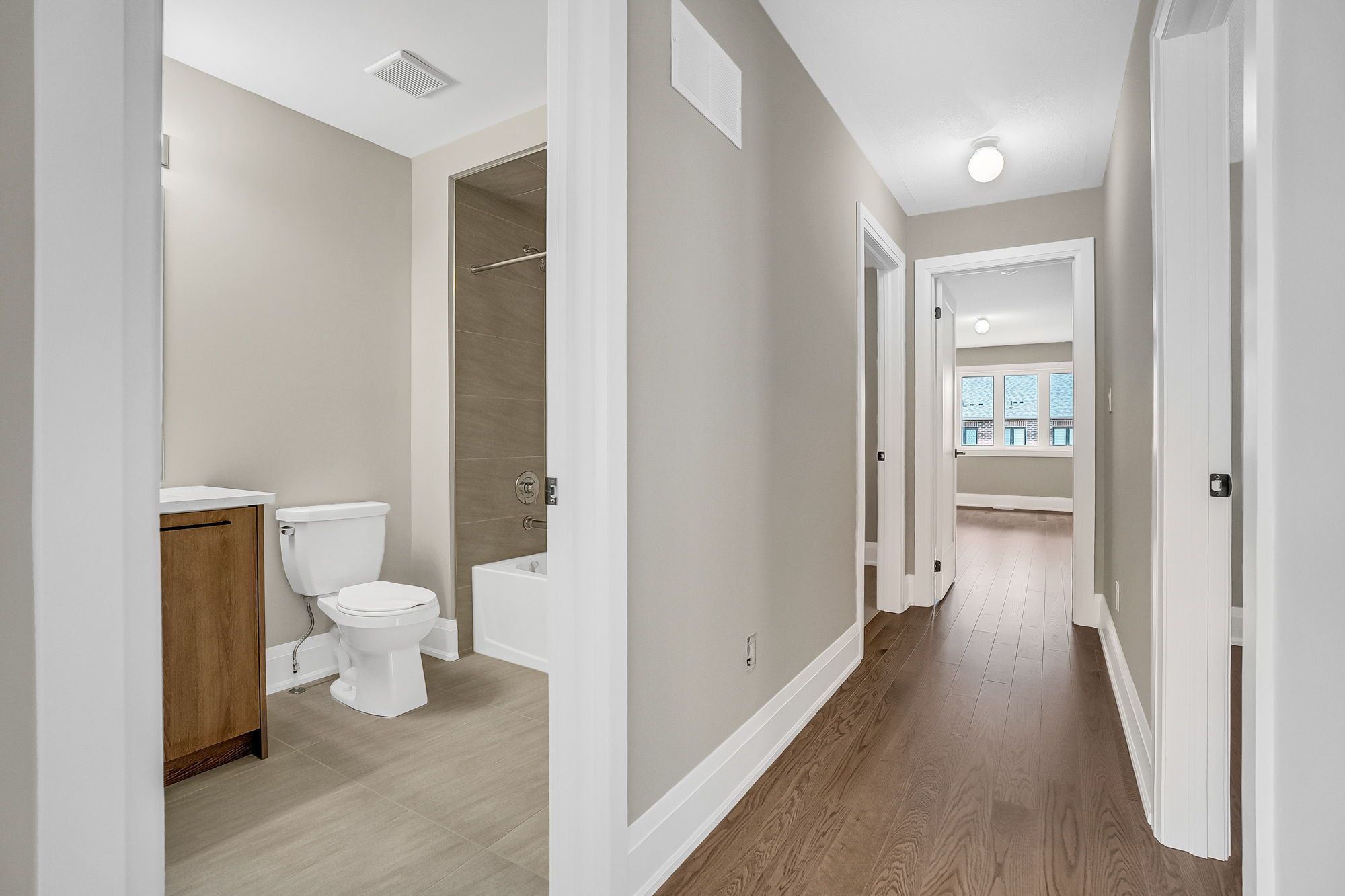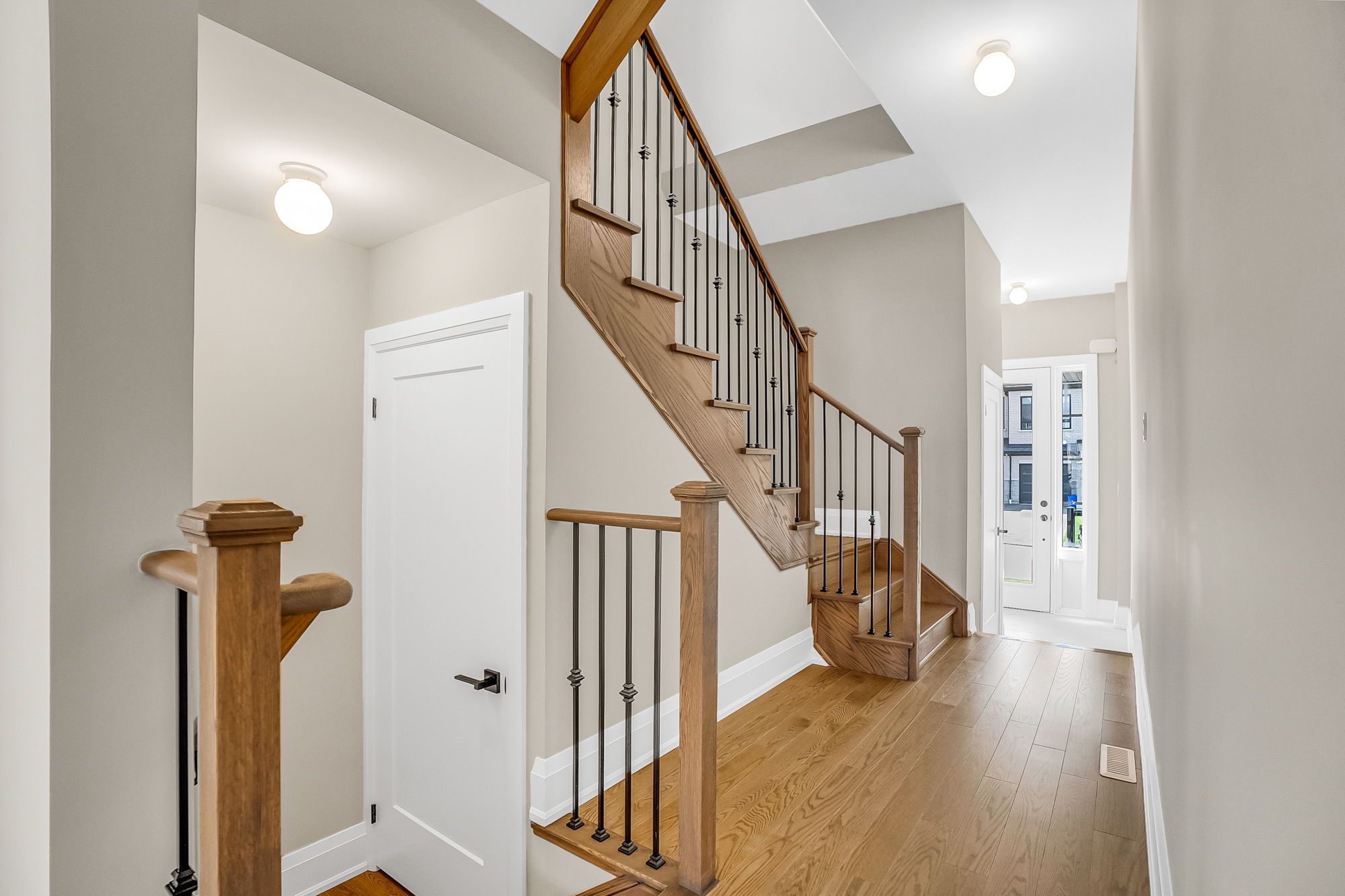 从未住过开发商的库存房屋出售。这栋新建成的传统两层自由产权联排别墅(无维护费或公寓费)位于 Vogue home 的热门 Queen's Common 社区,坐落在纵深 110 英尺的私人土地上。其特点包括现代外部设计,砖饰立面和超大前窗,升级后的 4 1/2 英寸现代硬木地板和 12 英寸 x 24 英寸的瓷砖瓷砖覆盖整个区域,7 1/2 英寸的踢脚线,升级后的室内门和门硬件。主楼层配有 9 英尺的平滑天花板,家庭尺寸厨房配有石材台面和嵌入式水槽,升级后的橱柜带有缓关门和抽屉,包括食品储藏室、防溅板以及开发商提供的 3 个全新电器的优惠券,宽敞的组合起居室和餐厅,带电壁炉的大家庭活动室,可通往后院。橡木楼梯带有铁护栏带您前往 2 楼,您将发现 4 间卧室 + 洗衣房,配有升级的上部橱柜,并附带洗衣机和烘干机的优惠券。主卧室配有步入式衣橱和完整的套间浴室,配有玻璃淋浴间、独立浴缸、升级的梳妆台和石材台面以及瓷砖地板。其余 3 间卧室配有双重衣柜,4 件式主浴室配有升级的梳妆台和石材台面以及瓷砖地板。未完成的地下室配有未来 3 件式浴室的预设管道,无水箱热水器(租赁)和暖通系统。