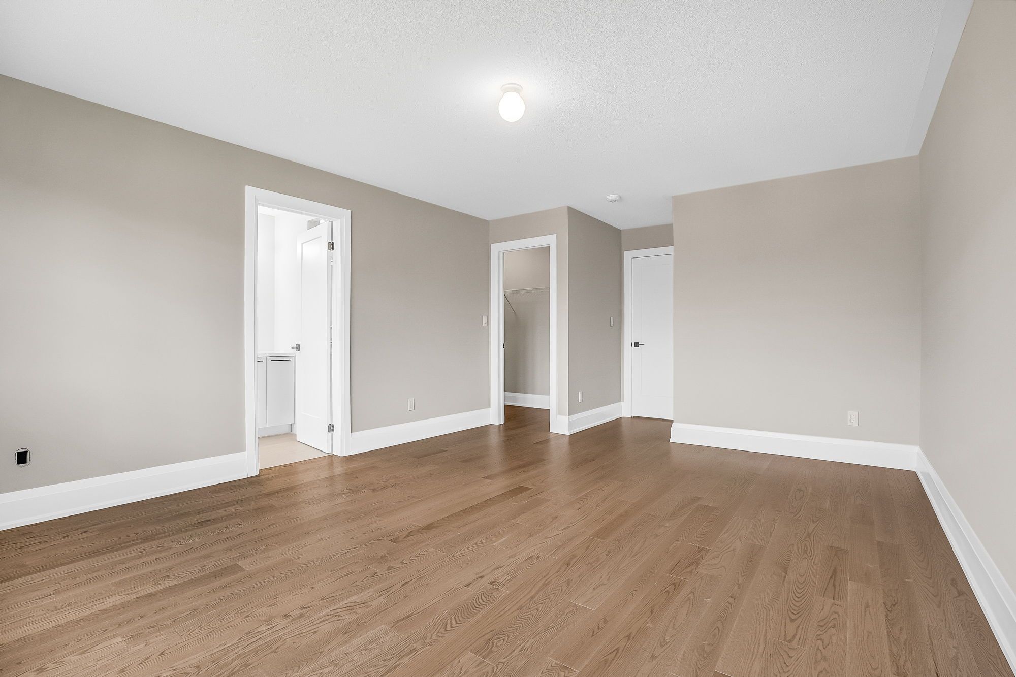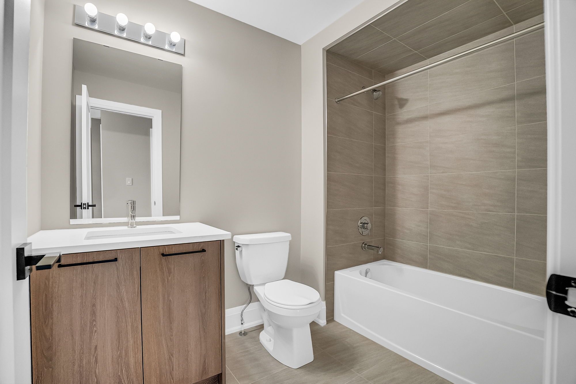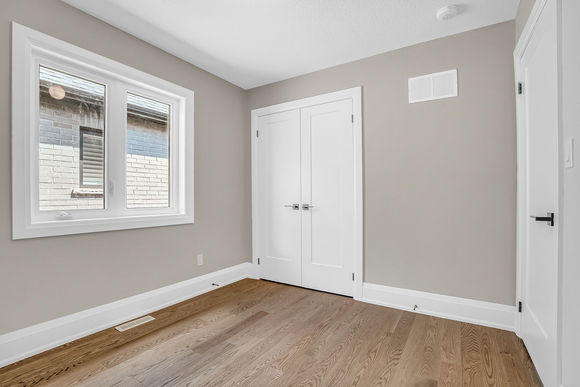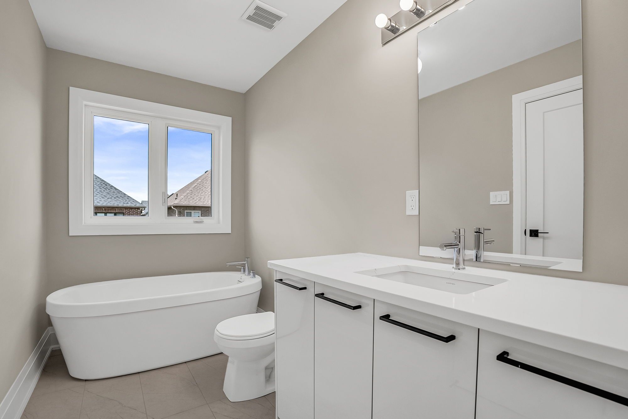 从未住过开发商的库存房屋出售。这栋新建成的传统两层自由产权联排别墅(无维护费或公寓费)位于 Vogue home 的热门 Queen's Common 社区,坐落在纵深 110 英尺的私人土地上。其特点包括现代外部设计,砖饰立面和超大前窗,升级后的 4 1/2 英寸现代硬木地板和 12 英寸 x 24 英寸的瓷砖瓷砖覆盖整个区域,7 1/2 英寸的踢脚线,升级后的室内门和门硬件。主楼层配有 9 英尺的平滑天花板,家庭尺寸厨房配有石材台面和嵌入式水槽,升级后的橱柜带有缓关门和抽屉,包括食品储藏室、防溅板以及开发商提供的 3 个全新电器的优惠券,宽敞的组合起居室和餐厅,带电壁炉的大家庭活动室,可通往后院。橡木楼梯带有铁护栏带您前往 2 楼,您将发现 4 间卧室 + 洗衣房,配有升级的上部橱柜,并附带洗衣机和烘干机的优惠券。主卧室配有步入式衣橱和完整的套间浴室,配有玻璃淋浴间、独立浴缸、升级的梳妆台和石材台面以及瓷砖地板。其余 3 间卧室配有双重衣柜,4 件式主浴室配有升级的梳妆台和石材台面以及瓷砖地板。未完成的地下室配有未来 3 件式浴室的预设管道,无水箱热水器(租赁)和暖通系统。