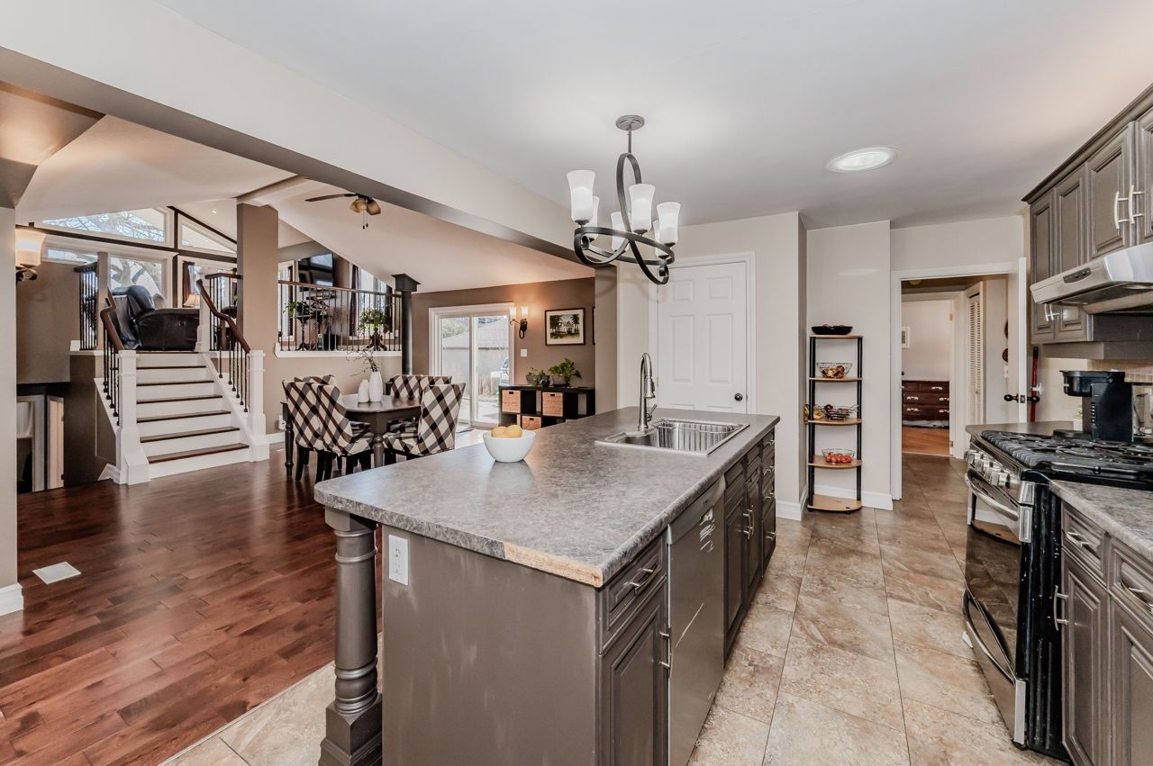 WELCOME TO YOUR NEW HOME! If you've been looking for your country property in the city for your growing or multi-generational family, this is it! Detached oversized garage/workshop on a lot, just shy of 1/3 of an acre! You'll love the uniqueness of this amazing family home. Entering through the side door you'll appreciate the space provided in the foyer and main floor laundry room and walk-in closet for when the entire family comes home from a busy day. Amazing open concept kitchen/dining area and upper family room full of windows looking out over the massive yard. The front of the house is the primary suite, complete with bedroom/ensuite/living room, and 2 piece powder room. The other side of the house offers 2 bedrooms for the kids, complete with their own full bathroom. The basement has a few sections to it. One is finished with a lovely rec room with big windows and a gas fireplace. The other has the 4th bedroom with 3 piece bathroom. And still another basement area offers unfinished storage space (with crawl space) and another area with potential for finishing for the gym or media room. Outside is a large driveway for tons of parking, the oversided double garage, and the yard you've been dreaming of with 99ft x 132 ft of play area for the kids, gardens, and entertaining. You'll enjoy this home for years to come. Book your showing today!