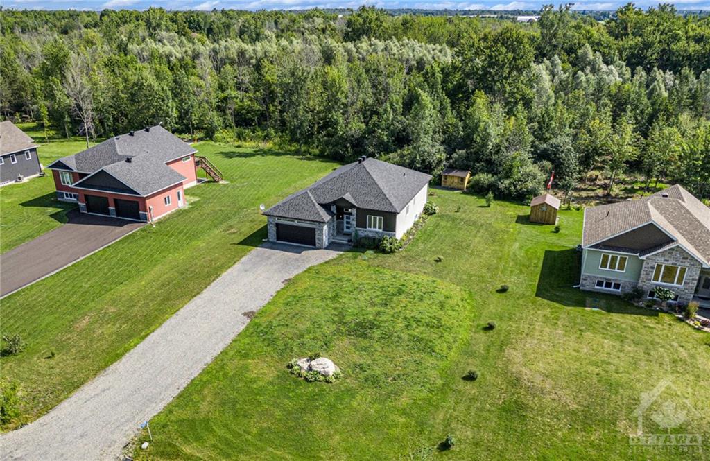 Priced to sell! Don’t miss out! Welcome to this stylish bungalow, nestled on an acre lot within the sought-out Cloverdale Estates subdivision. Built by a reputable builder, this residence showcases superior quality finishes, including luxurious quartz countertops, hardwood floors and an open-concept layout bathed in natural light. The main level is graced with three generously proportioned bedrooms, featuring a custom luxury ensuite in the primary suite. Descend to the fully finished basement to discover an expansive recreation room perfect for movie nights with the family along with a bar area ideal for hosting wine tastings or crafting cocktails for friends. With high ceilings, abundant windows, and a full bathroom, this space is designed for comfort and entertainment. An attached two-car garage with a convenient man door adds to the home's allure. Steps to a golf course and amenities, this property offers a peaceful retreat with nearby wooded areas and tranquil trails.