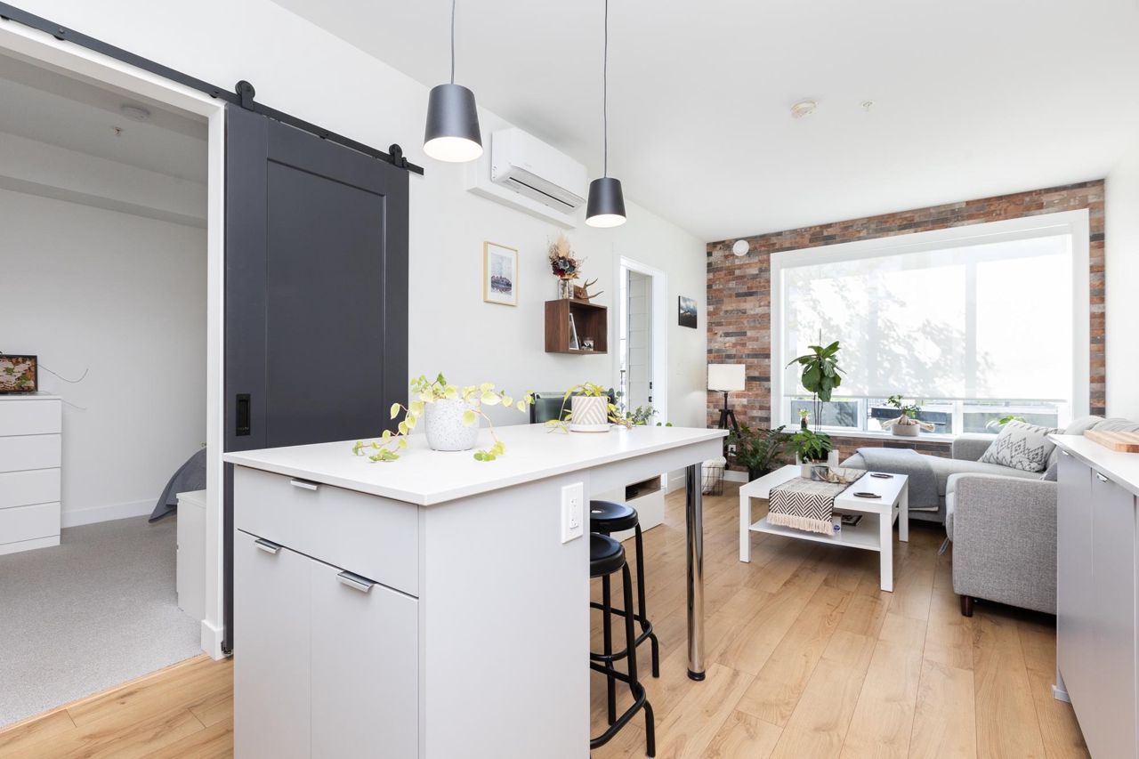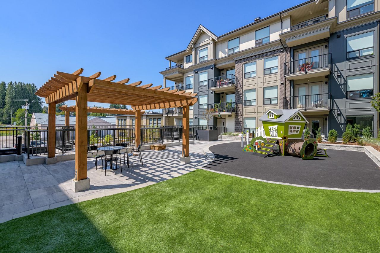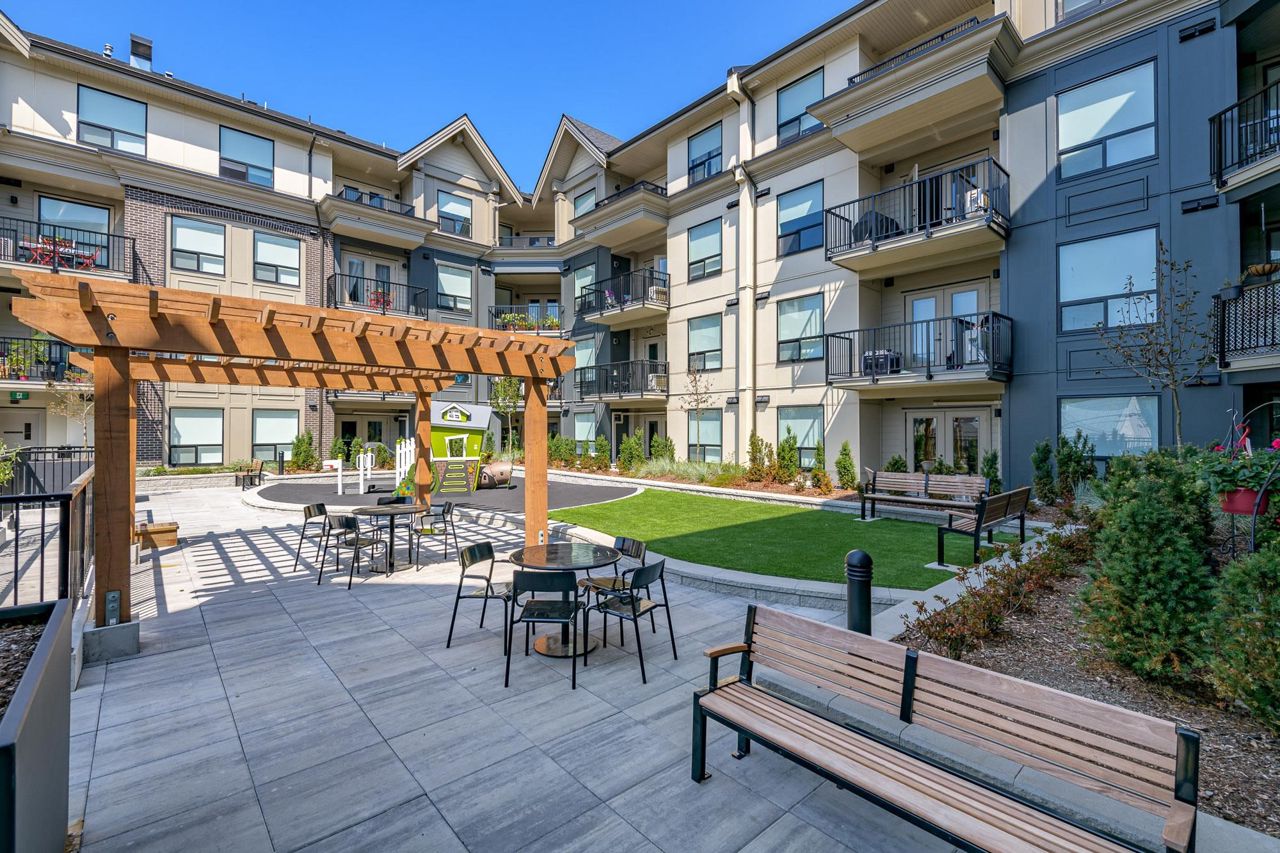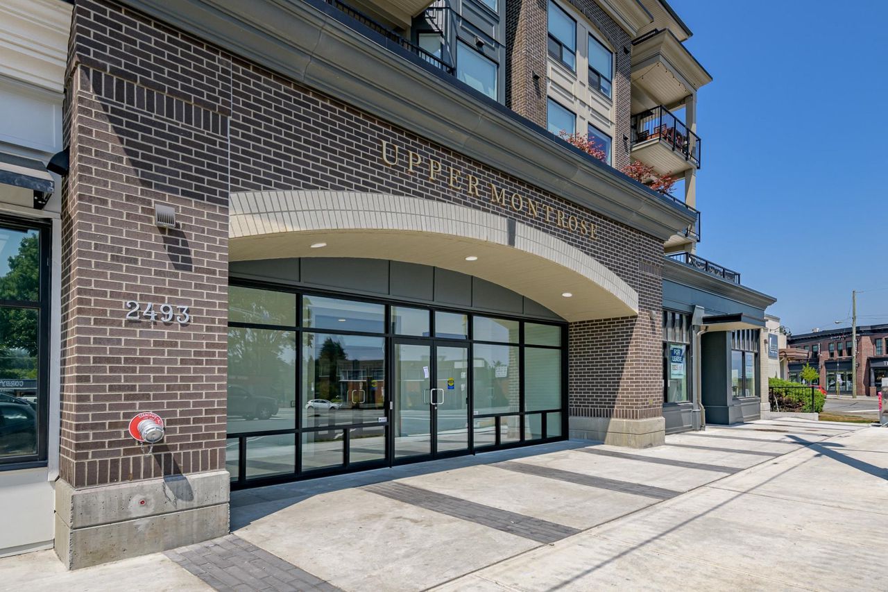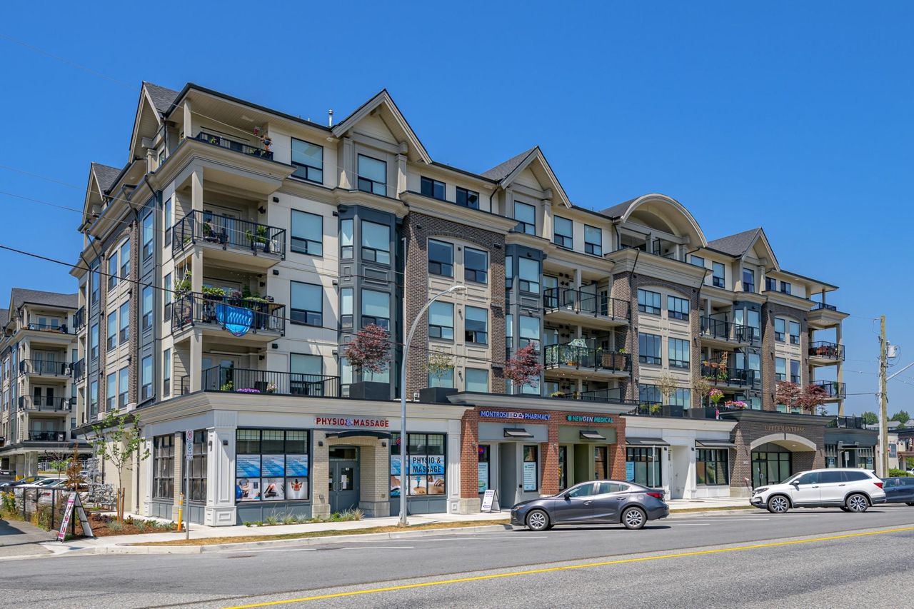 Welcome to Upper Montrose. This immaculate bright 1 BEDROOM and DEN shows like brand-new. Featuring 9 ft ceilings with open floor plan, in-suite laundry, outdoor OVERSIZE BALCONY, AIR CONDITIONING, DESIGNER brick feature wall, barn doors, gas BBQ hook up, GOURMET gas range and S/S appliances. Including underground PARKING STALL, BIKE LOCKER, STORAGE LOCKER. Building offers a private family outdoor courtyard and study room. Located in historic trendy downtown Abbotsford your steps away to parks, fitness facilities, yoga, transit, farm markets, vibrant shops, cafes, breweries and restaurants, minutes from Hwy, hospital and UFV. Building is PET FRIENDLY with NO AGE RESTRICTIONS and RENTALS ARE ALLOWED. Great opportunity for first time buyers and an excellent investment! Wont Last!