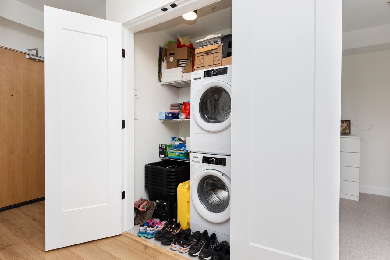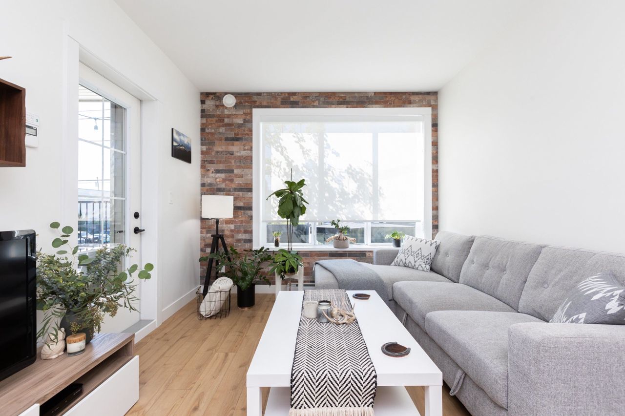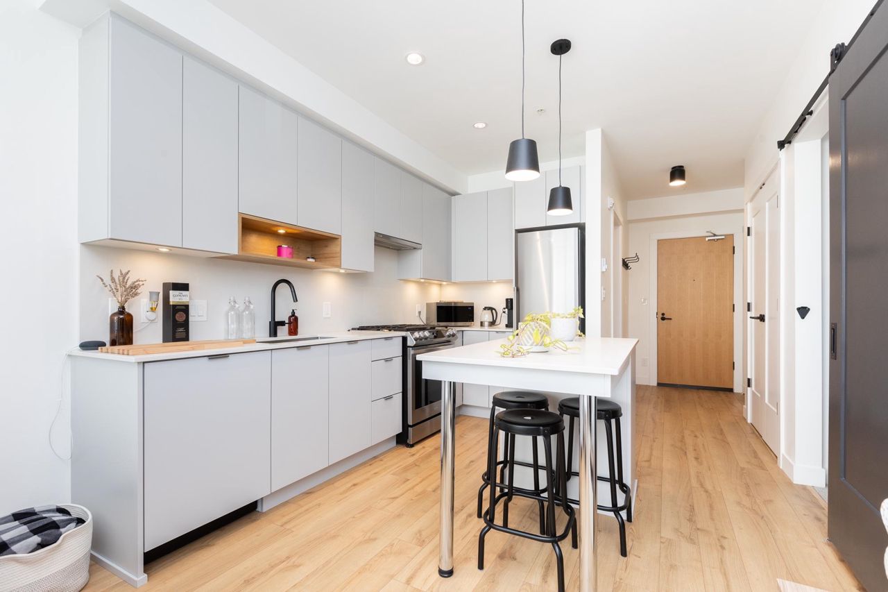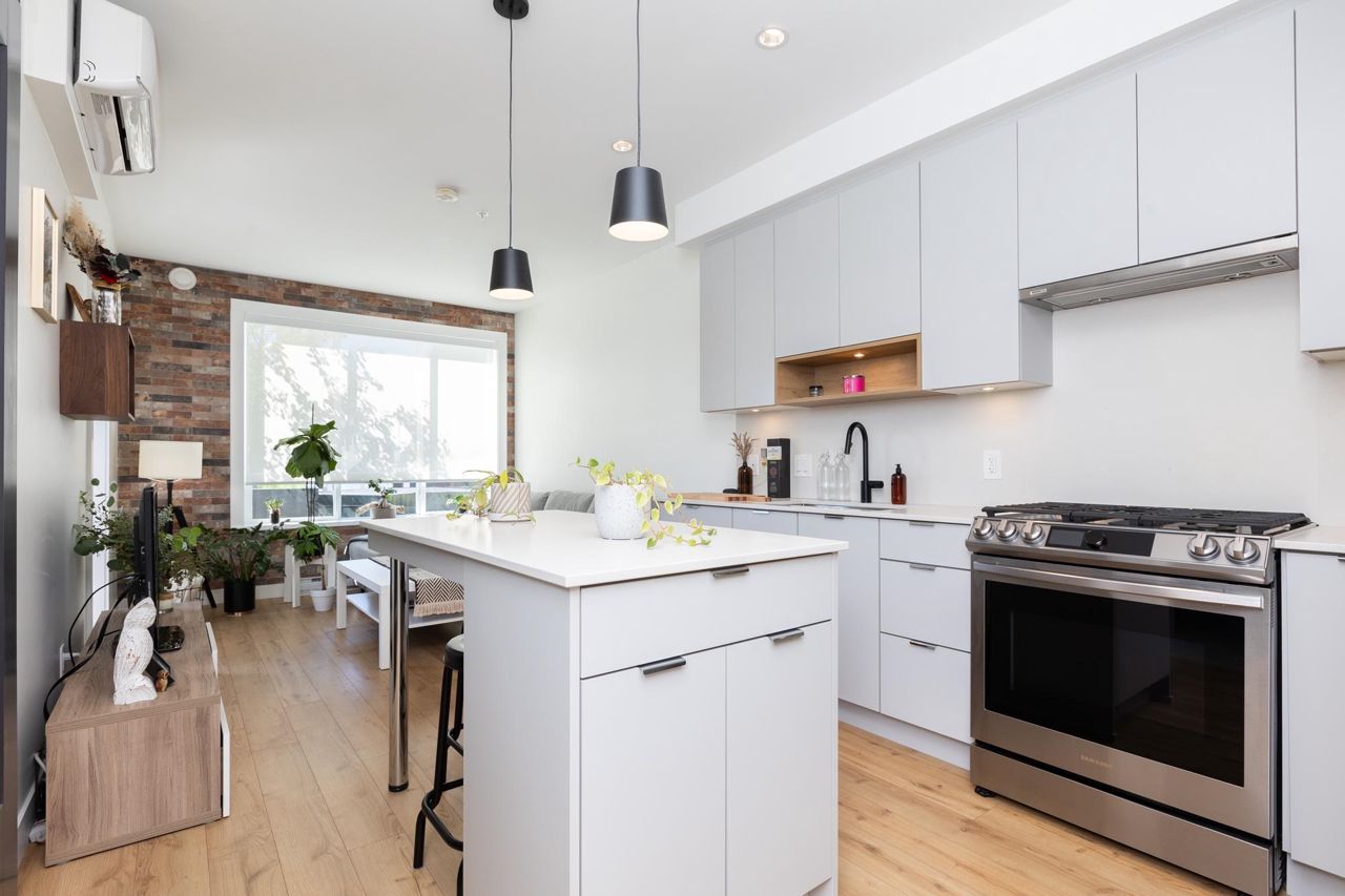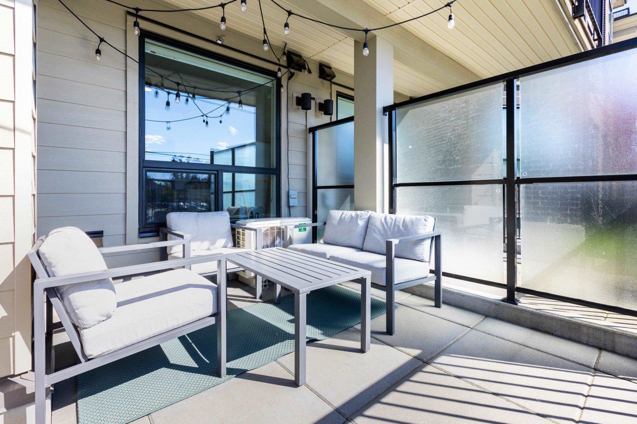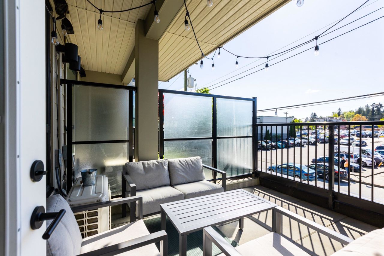 Welcome to Upper Montrose. This immaculate bright 1 BEDROOM and DEN shows like brand-new. Featuring 9 ft ceilings with open floor plan, in-suite laundry, outdoor OVERSIZE BALCONY, AIR CONDITIONING, DESIGNER brick feature wall, barn doors, gas BBQ hook up, GOURMET gas range and S/S appliances. Including underground PARKING STALL, BIKE LOCKER, STORAGE LOCKER. Building offers a private family outdoor courtyard and study room. Located in historic trendy downtown Abbotsford your steps away to parks, fitness facilities, yoga, transit, farm markets, vibrant shops, cafes, breweries and restaurants, minutes from Hwy, hospital and UFV. Building is PET FRIENDLY with NO AGE RESTRICTIONS and RENTALS ARE ALLOWED. Great opportunity for first time buyers and an excellent investment! Wont Last!