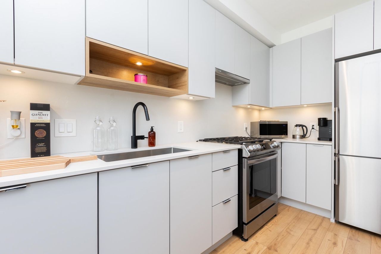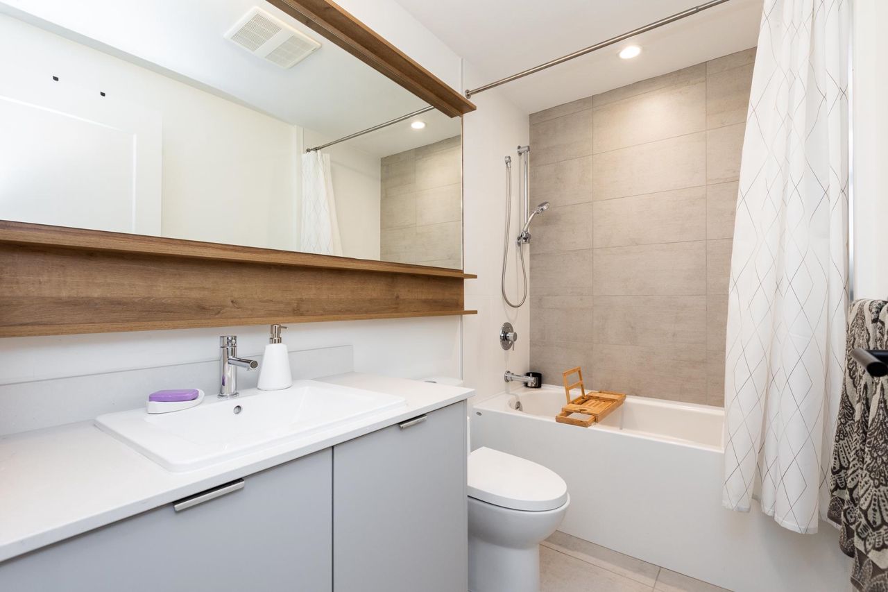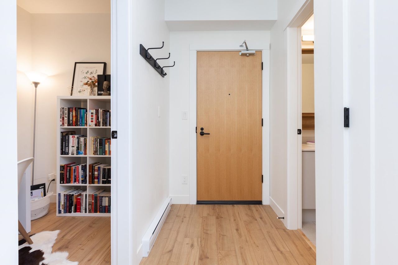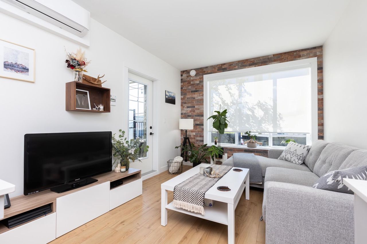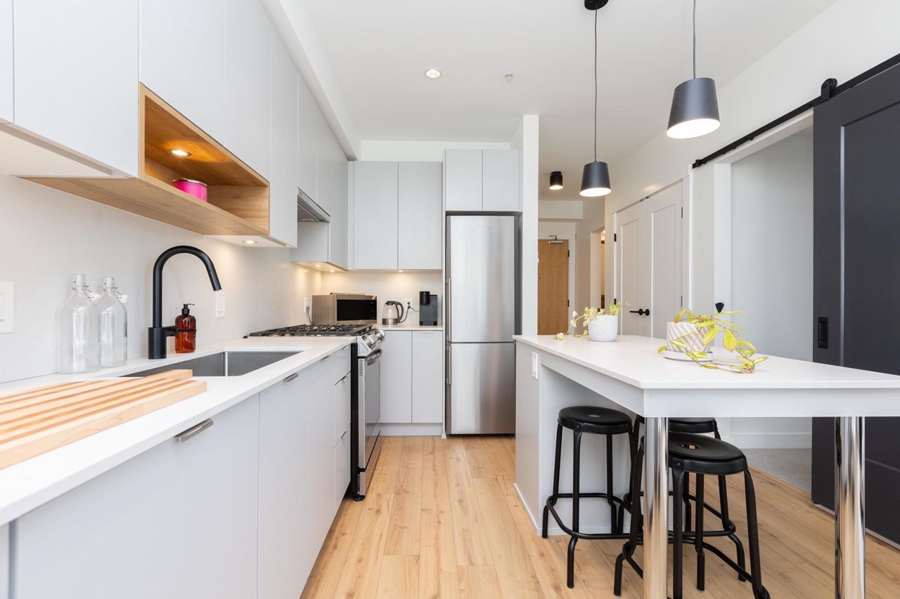 Welcome to Upper Montrose. This immaculate bright 1 BEDROOM and DEN shows like brand-new. Featuring 9 ft ceilings with open floor plan, in-suite laundry, outdoor OVERSIZE BALCONY, AIR CONDITIONING, DESIGNER brick feature wall, barn doors, gas BBQ hook up, GOURMET gas range and S/S appliances. Including underground PARKING STALL, BIKE LOCKER, STORAGE LOCKER. Building offers a private family outdoor courtyard and study room. Located in historic trendy downtown Abbotsford your steps away to parks, fitness facilities, yoga, transit, farm markets, vibrant shops, cafes, breweries and restaurants, minutes from Hwy, hospital and UFV. Building is PET FRIENDLY with NO AGE RESTRICTIONS and RENTALS ARE ALLOWED. Great opportunity for first time buyers and an excellent investment! Wont Last!