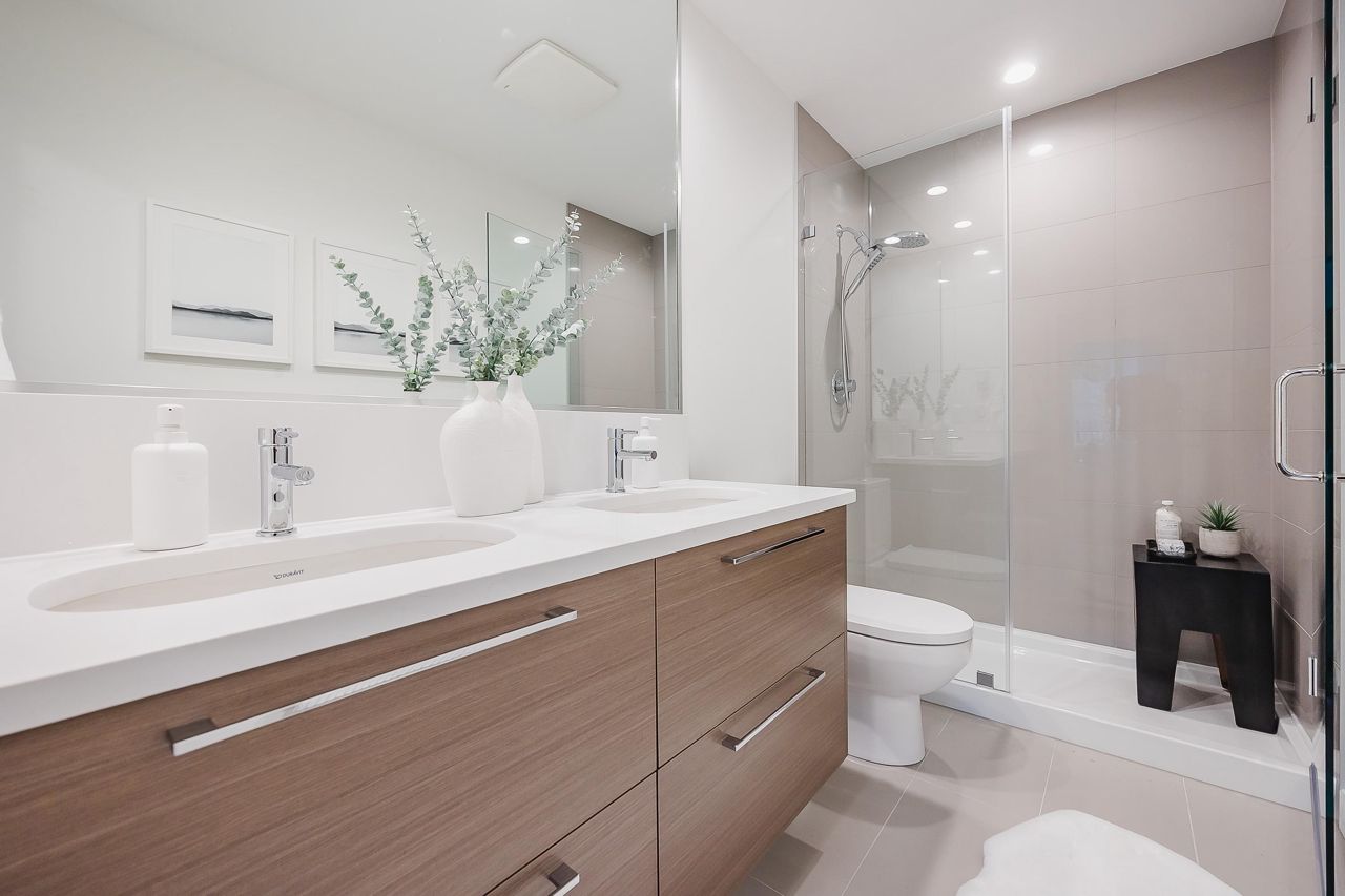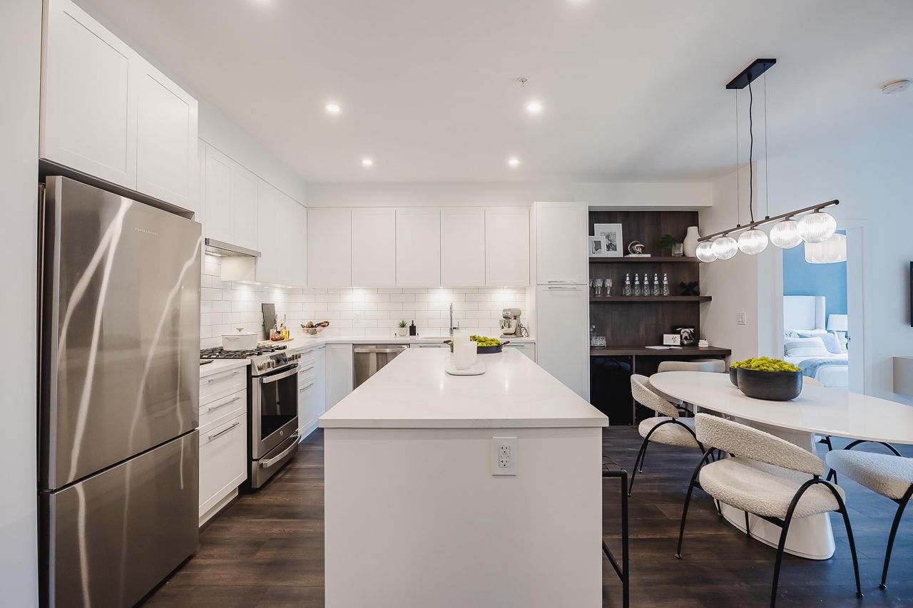 Welcome to JEM. Proudly built by Quanterra Developments Ltd. This beautiful collection of 97 thoughtfully designed modern condominiums is centrally located in the desirable community of Clearbrook in Abbotsford. This move-in ready, 2 bedroom, 2 bathroom end unit has 2 parking! And features an open layout with 9' ceilings, SS appliances, Fisher Paykel fridge, GE Profile Series gas range, Microwave with trim kit, soft-close white shaker kitchen cabinets and quartz counters. Amenities include a fully equipped fitness centre, outdoor courtyard area and children’s playground. The A+ location is steps away from bus stops, schools, and minutes away from shopping, HWY 1, UFV, and Abbotsford Reginal Hospital. Walkable to everything! OPEN HOUSE Sat & Sun 12-5 pm.