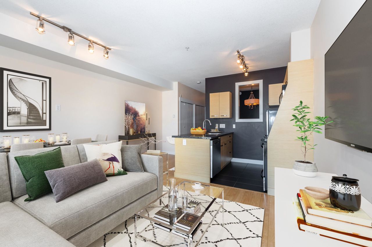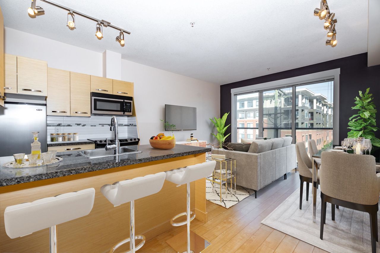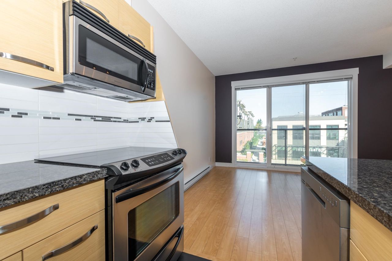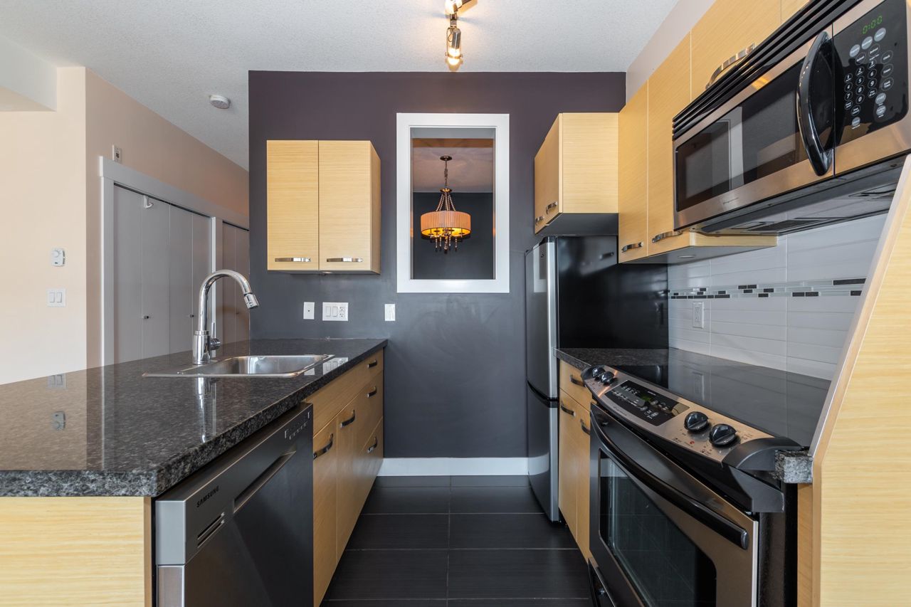 Perfect for INVESTORS or 1st TIME BUYER! Beautiful, bright & spacious unit in The Crossing complex, located at the crossroads of Marshall and McCallum. Exceptional quality with amenities right at your doorstep: 1 min drive to HWY, near shopping mall, University of Fraser Valley, restaurants and public transit. This unit offers an open concept layout with all the features you would expect: space for queen sized bed. Kitchen boasts granite countertops, plenty of counter space, cabinets & storage, laminate floors, stainless steel appliances, in-suite laundry, 1 parking & 1 locker. Perfect home for anyone looking for a property to live in with low strata fees. Rentals are allowed and in a high demand area, making this purchase an excellent investment! Easy to show!