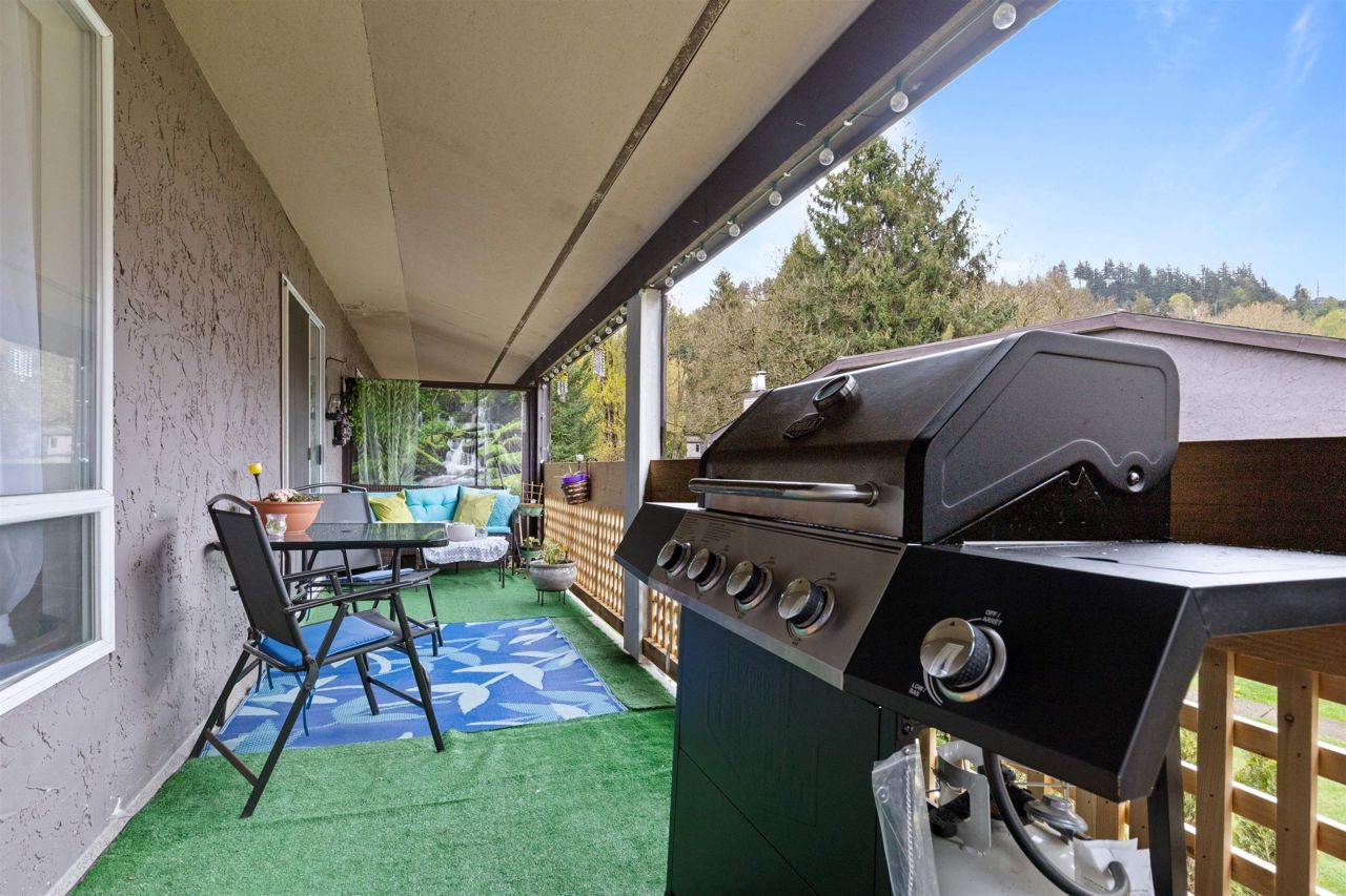 Welcome home! This inviting 2 bed 2 bath upper-level end unit townhome is perfectly situated in the heart of East Abbotsford's coveted McMillan area! Step inside to discover a cozy living room and recently renovated kitchen. Generously sized primary bdrm, complete with two closets and an ensuite. Plus, enjoy the expansive 200sqft covered balcony, perfect for relaxing and entertaining year-round. Storage is no issue here, with a large laundry area, oversized pantry, and additional storage space located right outside your door whether you're a growing family or simply appreciate room to roam, this home has you covered. Family-friendly complex with ample green space for outdoor activities and an outdoor pool. Abbotsford's best school catchments all within walking distance!