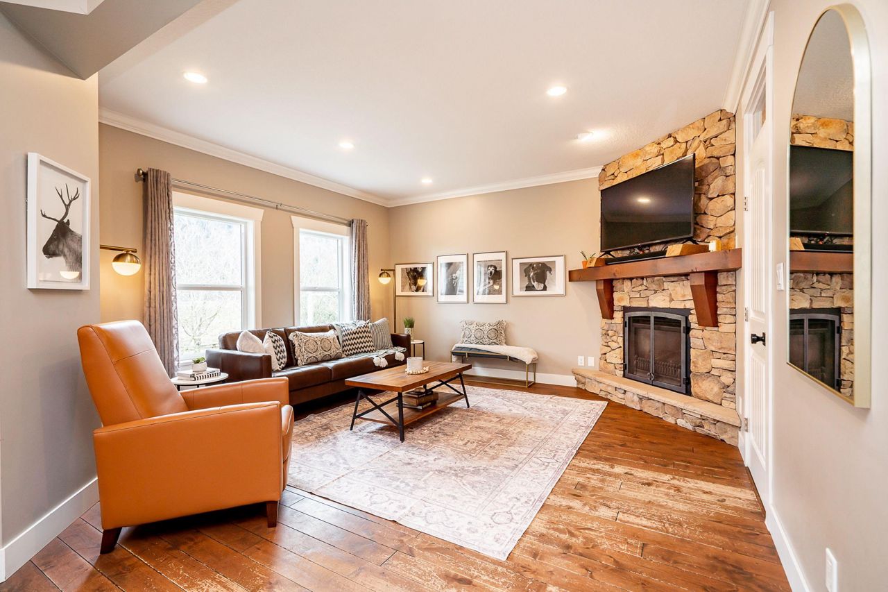 Welcome to this stunning home sitting on 9.5 acres of sprawling property. The home includes 9' ceilings, hardwood flooring, an oversized primary suite, built in Sonos speakers throughout, new furnace (Dec 2021), new hot water tank (Dec 2021) and an open concept layout. Walkout onto your back porch where you are surrounded by a mountain landscape and prime sunset views. The property itself has two driveway entrances for all your parking or amenity needs, a 43'3 x 30'8 workshop, numerous barns ranging from 80'2 x 25'5 to 23'4 x 23'3, acres of hay fields, animal pens and even a modest orchard with fruit trees. The septic has been cleaned/serviced as well in Dec 2021. This property has it all with versatile use and endless potential!