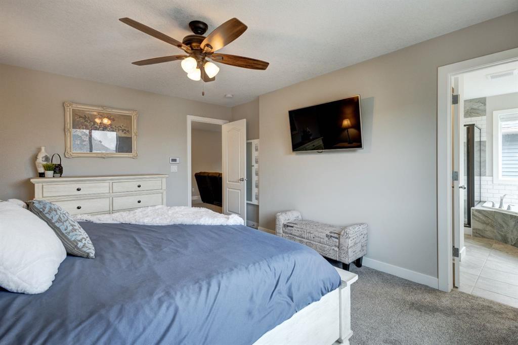 Welcome to this charming, meticulously maintained two-storey home nestled on a serene and peaceful street. This delightful residence boasts a wealth of features that make it truly special. The main floor of this home welcomes you with a bright and inviting atmosphere, featuring a spacious entryway, an office space, a living room with a cozy gas fireplace, and convenient access to the deck from the dining area. With three spacious bedrooms located on the upper level and a bonus room separating the primary bedroom from the others, there is ample space for the whole family. The primary ensuite is complete with dual sinks, a corner tub and a separate shower. The upper-level laundry, conveniently situated for ease of use, is truly ideal and offers everything you could desire. The builder-developed basement adds an extra dimension to this already impressive home, with 9-foot ceilings and oversized windows that enhance the light and spacious feel throughout the recreation/games area, fourth bedroom, and full bathroom, providing added convenience and comfort. Step outside into the sunny west-facing backyard, where you'll find a large deck adorned with a privacy screen, providing the perfect spot to relax and enjoy the tranquil surroundings. Overlooking the beautifully landscaped yard, complete with the perfect area for your fire pit, this backyard is an oasis of serenity and comfort. No feature was overlooked, as the home has been equipped with central vacuum rough-ins to the garage, a gas line in the garage and on the deck, central air conditioning, and a dual-zone HVAC system, allowing for different temperatures in different zones. Don't miss out—make this your home today! (id:22211)