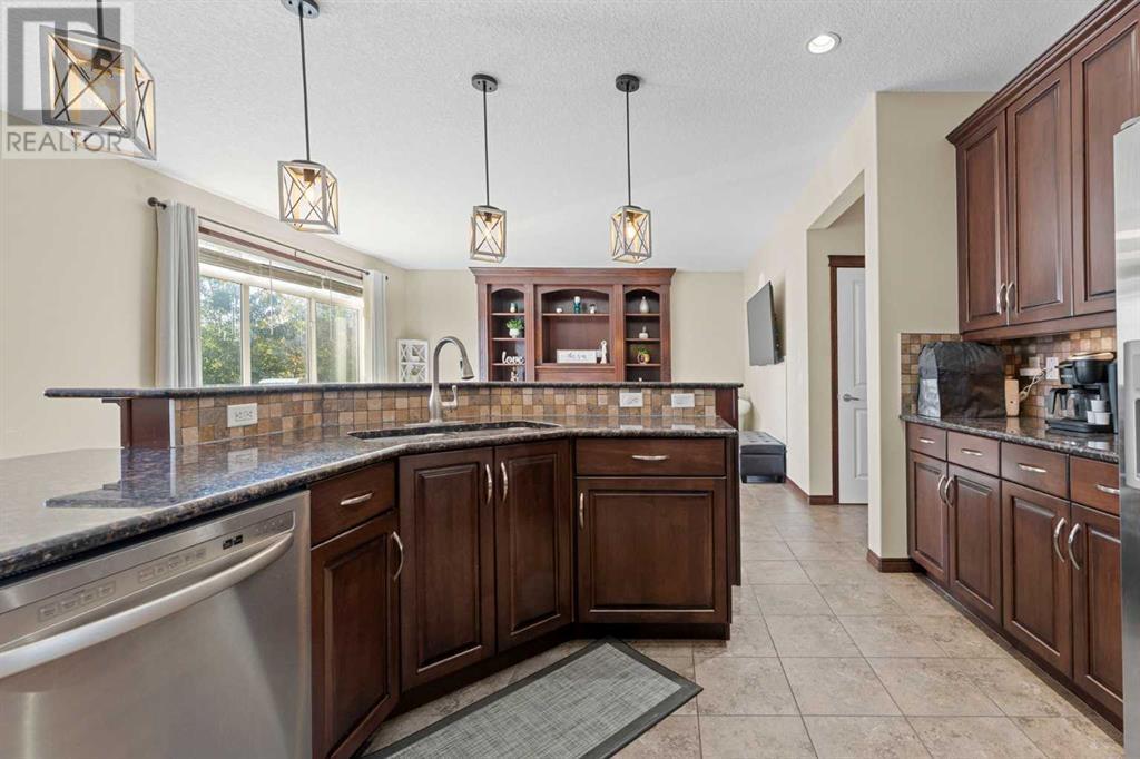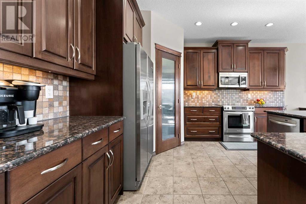 Welcome to 125 Kingland Court, a stunning walkout home nestled in the tranquility of a quiet cul-de-sac. This residence boasts a perfect blend of elegance and functionality, starting with a double attached garage and an impressive triple over-sized detached garage. The detached garage is a car enthusiast's dream, equipped with 220v power, high ceilings capable of accommodating car lifts, and more. Additionally, the property offers gated RV parking, ensuring both convenience and security. Access to the rear is made easy with a double wide - paved alley way. Situated on a private pie-shaped lot spanning over 7,600 square feet, this home provides a serene escape. The recently finished basement adds to the allure, featuring an extra bedroom, a modern washroom, ample storage space, and an open living room. The walkout basement presents an excellent opportunity for customization, a secondary suite would be subject to approval and permitting by the city of Airdrie.Upon entering the main floor, you'll be greeted by soaring ceilings and an inviting open foyer. Tiled flooring throughout the main level ensures both style and practicality, simplifying cleaning and maintenance. The open concept kitchen, dining room, and living room create an entertainer's paradise, with granite countertops, a kitchen island housing a dishwasher and sink, and a convenient breakfast bar. The kitchen is adorned with top-of-the-line stainless steel KitchenAid appliances, blending luxury with functionality seamlessly.The upper level of the home offers a spacious primary room, complete with a large ensuite featuring a soaker tub, stand-up shower, and a double vanity. The primary room also includes a walk-in closet with built-in organizers, providing both style and functionality. Two additional well-sized rooms on the upper floor feature generous closets with built-in organizers, ensuring ample storage space. A main 4-piece bathroom and a linen closet complete the upper level, catering to both conv enience and comfort.This residence at 125 Kingland Court is not just a home; it's an embodiment of luxurious living, where thoughtful design and quality craftsmanship converge to create a haven for the discerning homeowner. Don't miss the opportunity to make this meticulously crafted property your own. (id:22211)