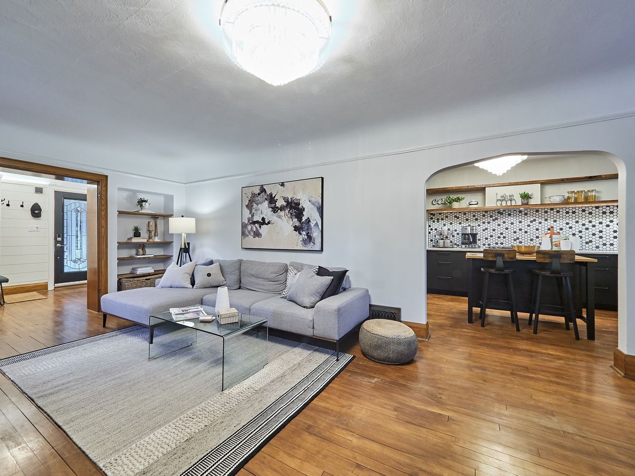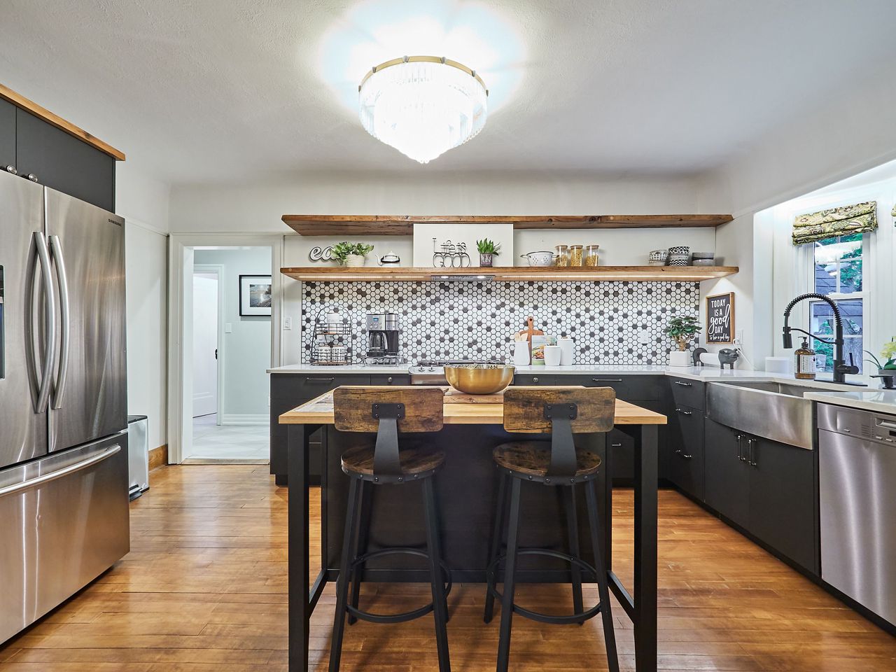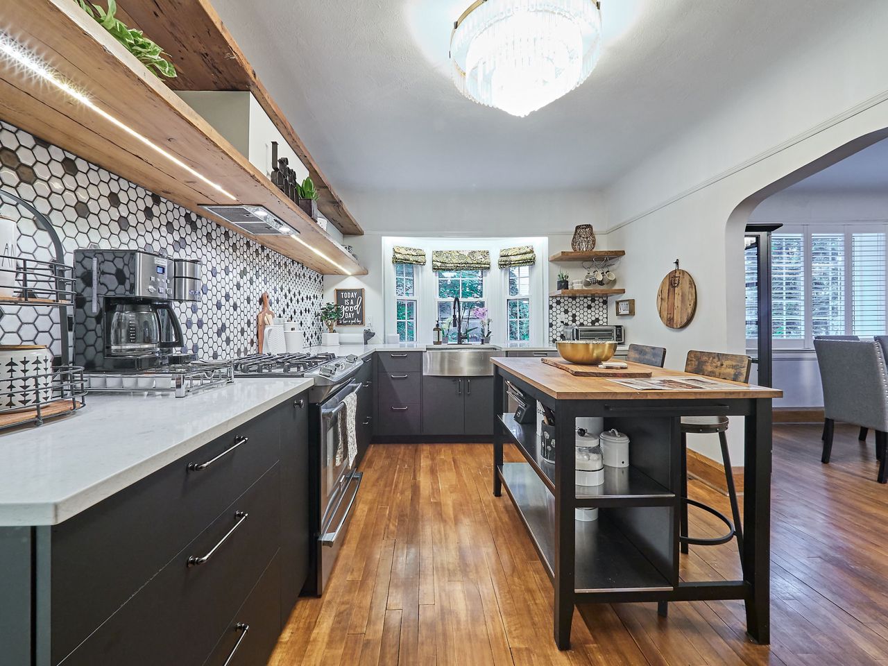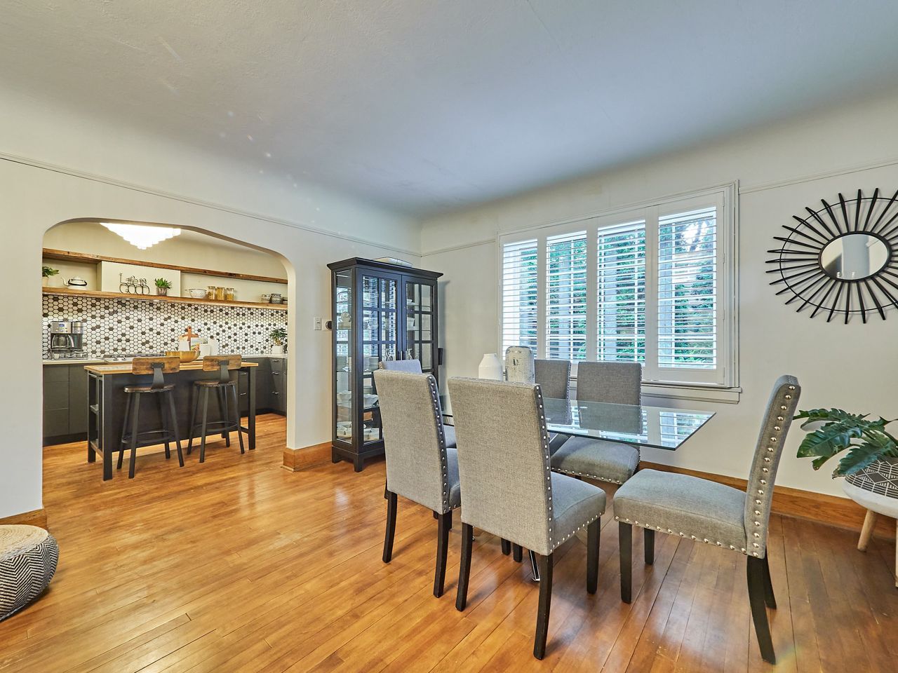 Hardwood Floor Marble Counter Eat-In Kitchen
