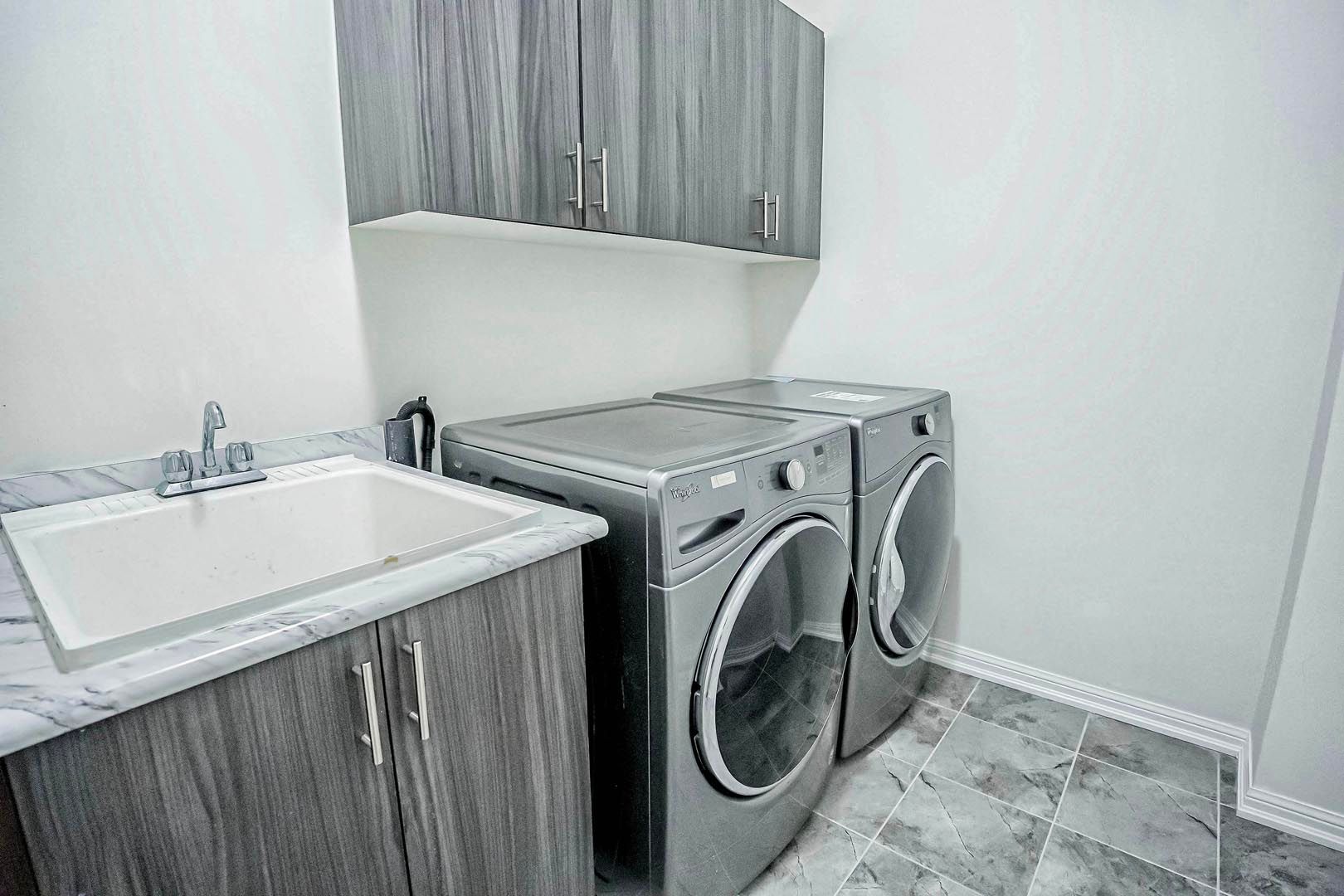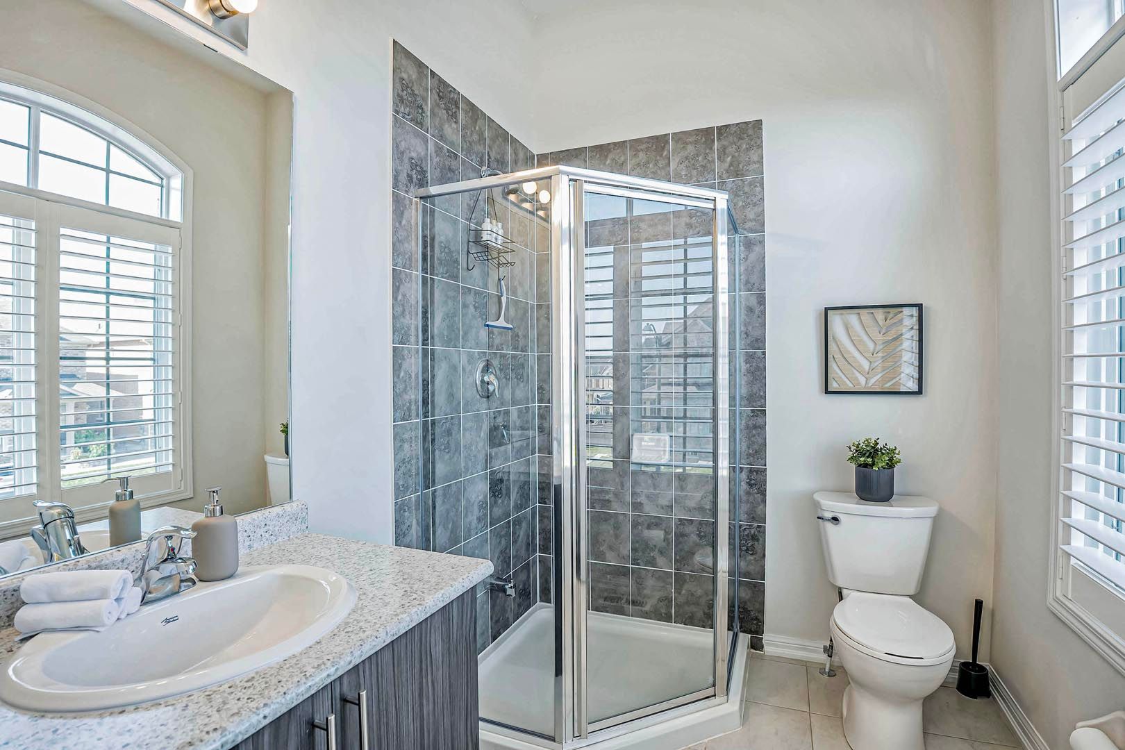 Nestled on a premium lot in Duffins Village near the Pickering border, this full brick and stone detached home offers over 3,000 sq ft of luxurious living space. With 5 bedrooms and 5 bathrooms, this less-than-7-year-old home combines style and comfort for families of all sizes. The main floor impresses with soaring 9-foot ceilings, upgraded elegant light fixtures, and wide windows that bathe the space in natural light. Architectural details, smooth ceilings, oak hardwood floors, and a grand oak staircase with wrought iron pickets add a touch of sophistication. The gourmet kitchen features Caesar stone quartz countertops, a large island, deluxe cabinetry, and top-tier stainless steel appliances, including a 36-inch induction cooktop, Venmar CHEF range hood, built-in wall oven, beverage center, and microwave - perfect for daily living and entertaining. Step outside to a beautifully landscaped exterior with interlocking stone steps and a charming wooden pergola. With no neighbors behind, this tranquil outdoor space is ideal for relaxation or gatherings. Conveniently located near parks, nature trails, public transport, and easy access to Highways 401 and 407, plus shopping, schools, and dining within minutes. Experience the best of suburban living with urban amenities nearby. Don't miss your chance to own this extraordinary property in one of Ajax most desirable neighborhoods. Schedule your viewing today and experience luxury living at its finest! **EXTRAS** INCL: 36-Inch Induction Cooktop, S/S B/I Dishwasher, S/S Fridge, Washer, Dryer, Central AC, Gas Furnace, Single Zone Beverage Centre, Built-In Combination Wall Oven and Microwave.