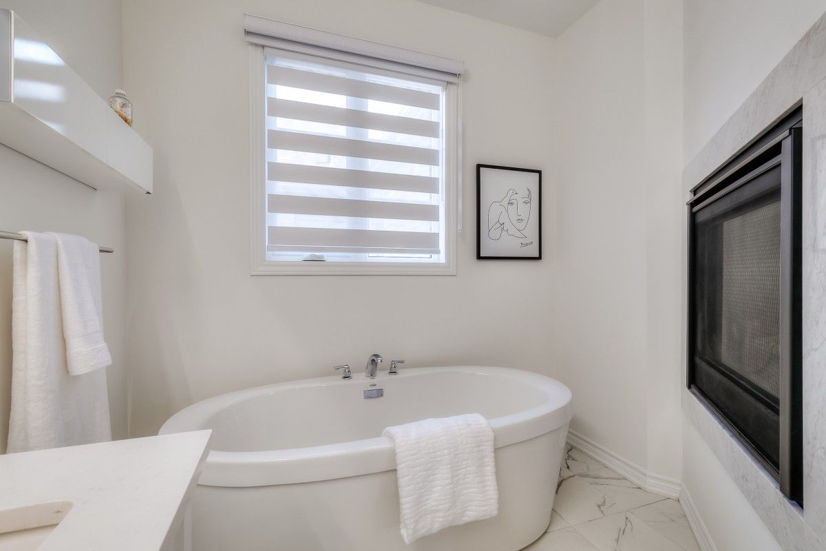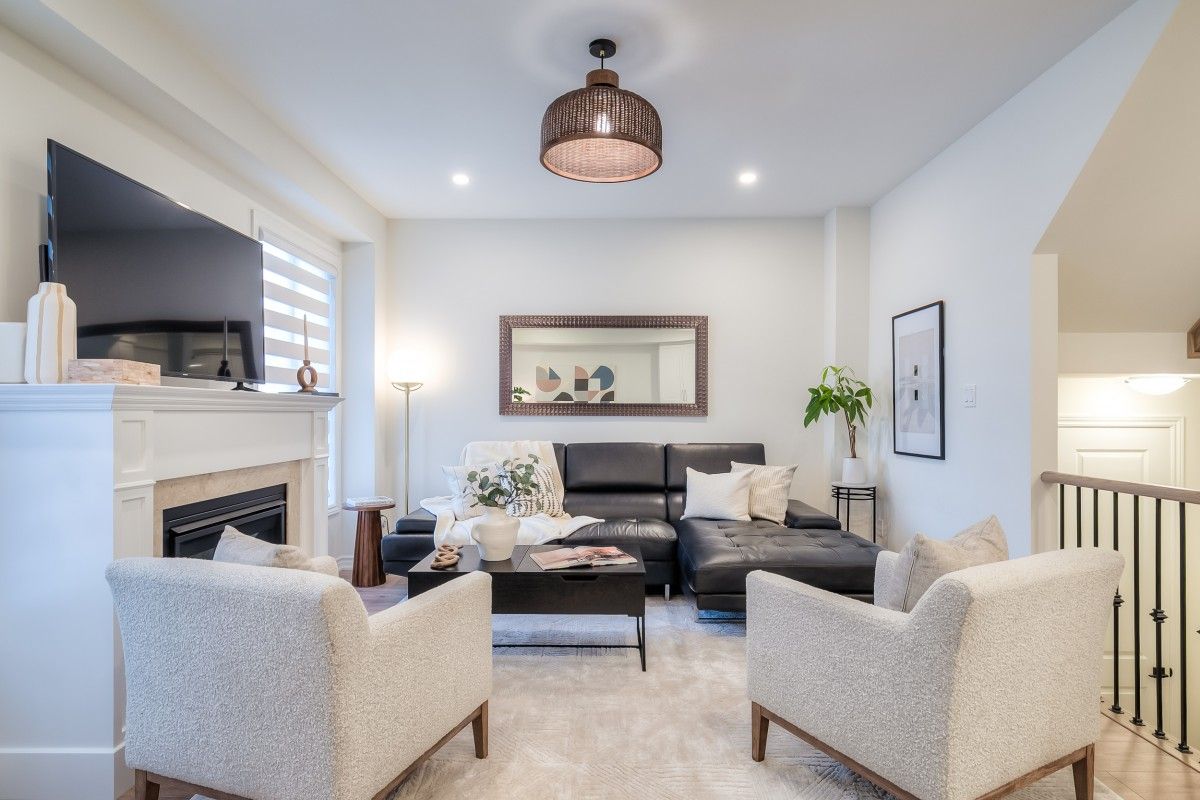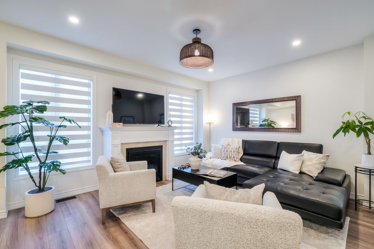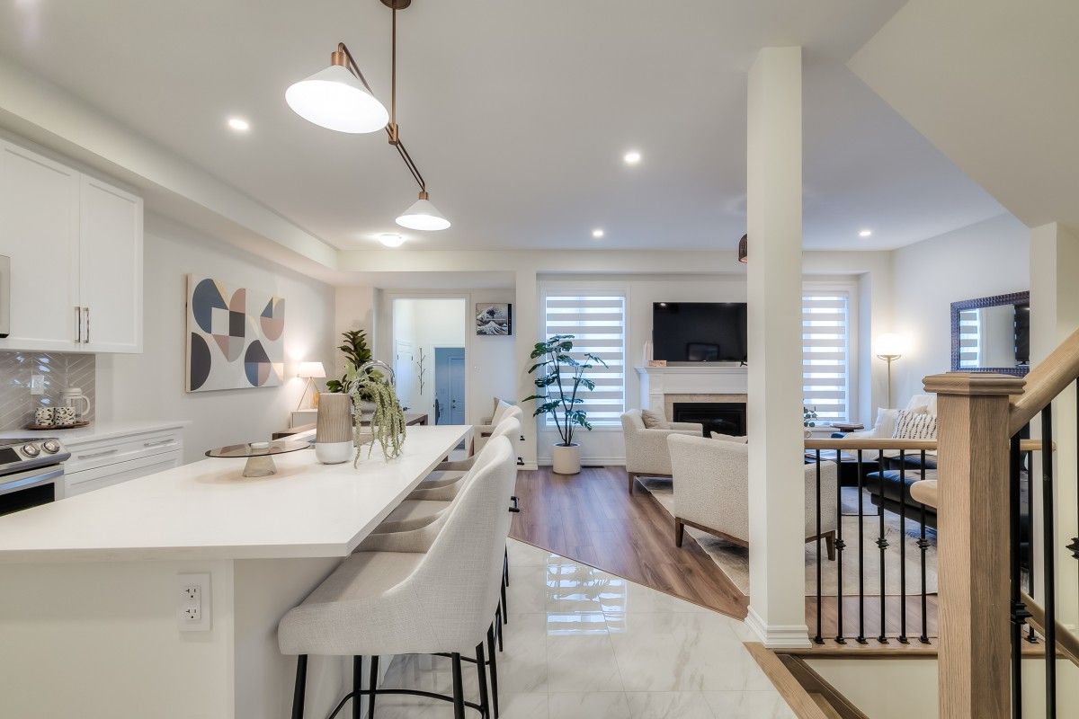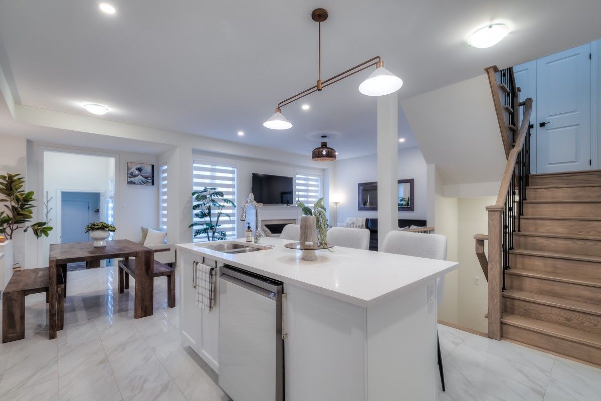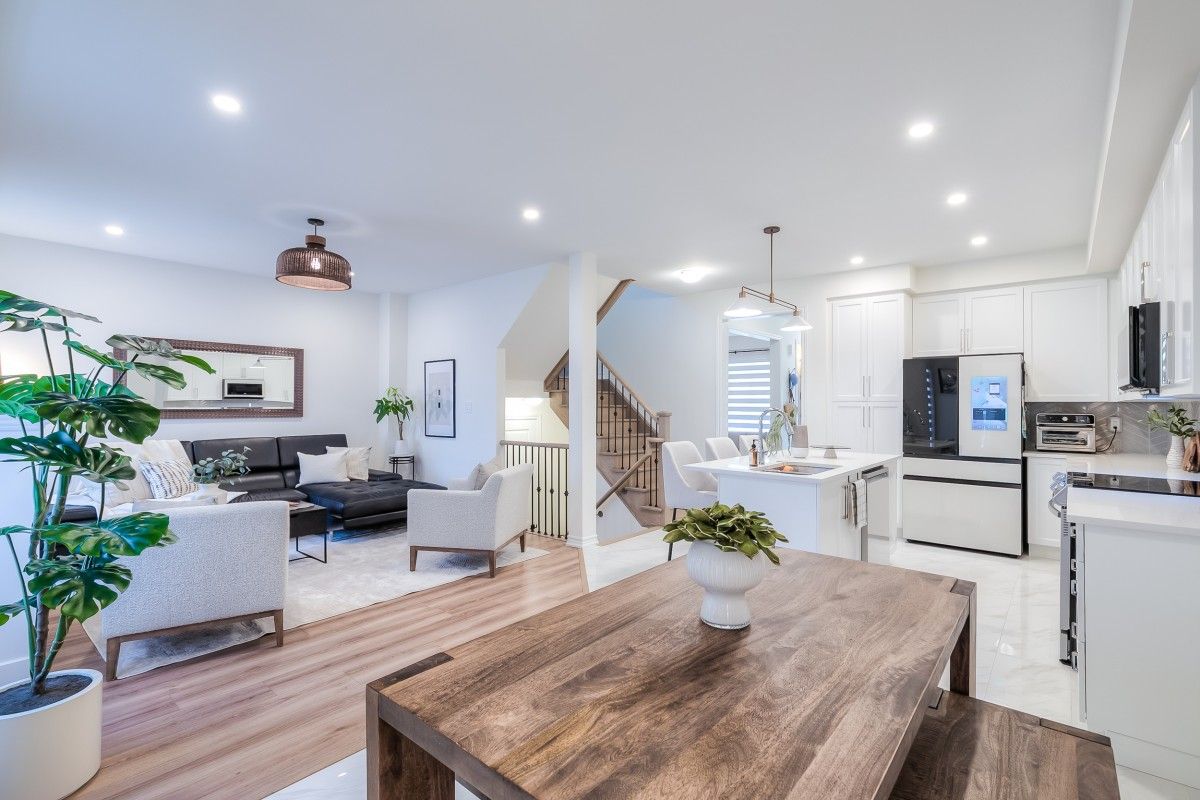 Welcome to your Executive End Unit Townhome - One of the most Spacious Floor Plans in the Phase 2 community boasting almost 3000 sq feet! Embrace A Lifestyle Of Comfort, Elegance, And Convenience In This Beautiful Ajax Northwest Community. This Cozy Home features smart energy efficient appliances that are easily controlled at your fingertips. Large Loft that can be easily converted to 4th Bdrm. Open Concept Main Floor with 9" Flat Ceilings. Kitchen W/ Quartz Counters, Undermount sinks throughout the home, Soft Close Drawers. Kitchen Overlooks Great Room With Gas Fireplace. Upgraded In-law/Guest Bedroom with 4Pc Ensuite. Primary Bedroom With Spa Like 5Pc EnSuite And 2 Way Fireplace With 2 W/I Closets. Outdoor Natural Gas BBQ line. Modern Finishes And High End Upgrades On Every Level. Main Fl. Office W/ French Glass Doors, Main Fl. Laundry & 2 Car Garage and can park up to 4 parking spots! Garage Entry From House W/i EV Charger. Home is still under Tarion Warranty. This Gem Is Conveniently Located Near Schools, Parks, Shopping Ctrs, & Mins to Major Highways. A Must See!All Smart appliances: Fridge, dishwasher, stove, washer and dryer!