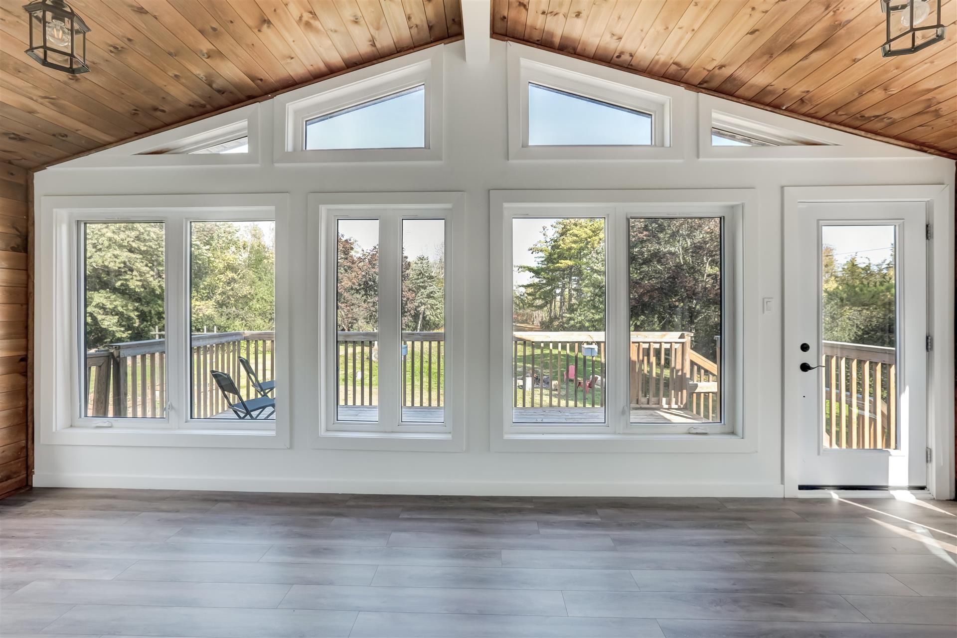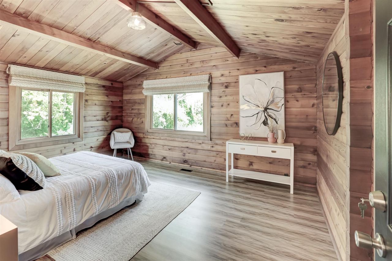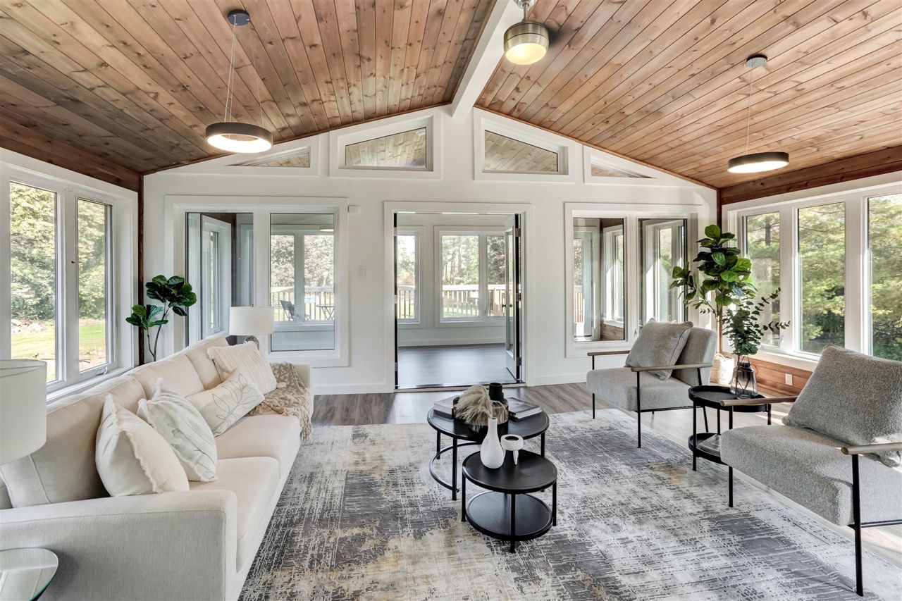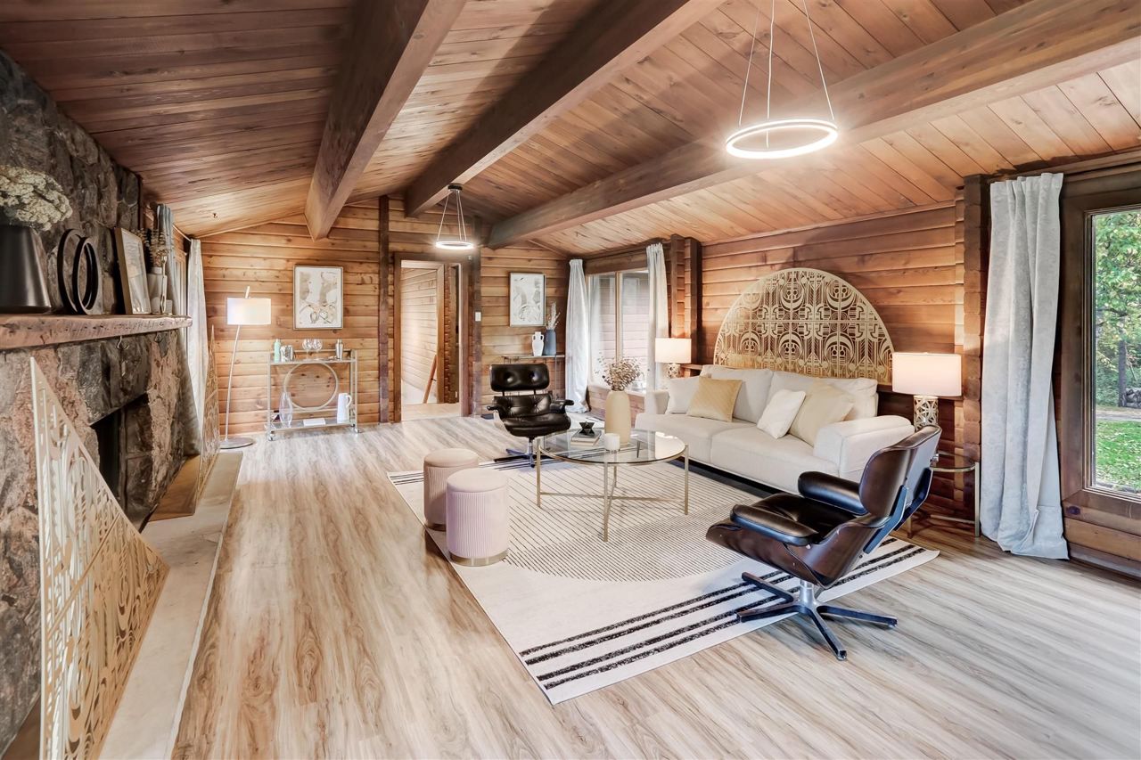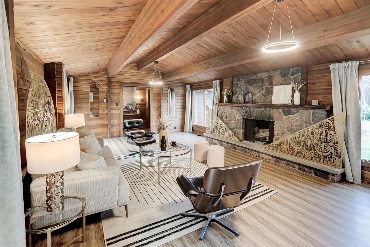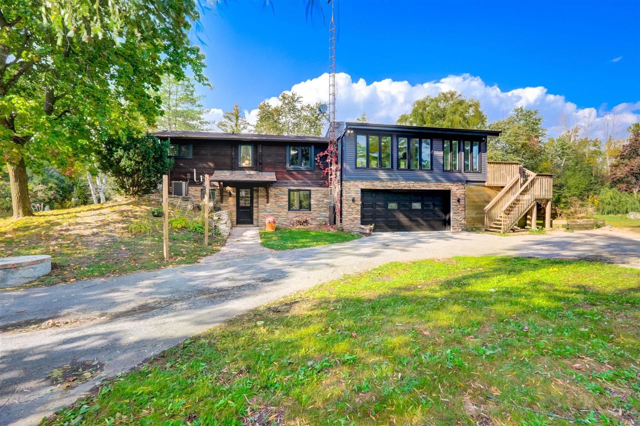 Incredible Wood log home on 7.5 ACRES, first time on MLS. located directly across from the Greenwood Conservation Area with over 14km of nature trails across from your driveway. Live like your in cottage country within 30 seconds of every city convenience you could want. Enjoy all nature has to offer in this peaceful and tranquil retreat property. Lots of space for pets to roam as well as a natural pond at the end of the mesmerizing front driveway. Incredible in every season of the year. Blissful sun room pouring in natural sunlight. Additional sheds/carport/storage on the property. Must see to appreciate the huge great rooms with 2 wood burning fireplaces. Fantastic for entertaining inside and out. Hold huge functions and parties in your own backyard. Huge potential to add on more square footage. Huge cathedral ceilings throughout the main floor in every room. Spectacular nature views from every single window. Can easily be converted into separate units.