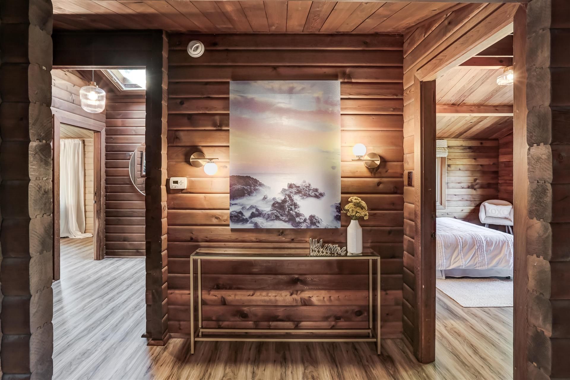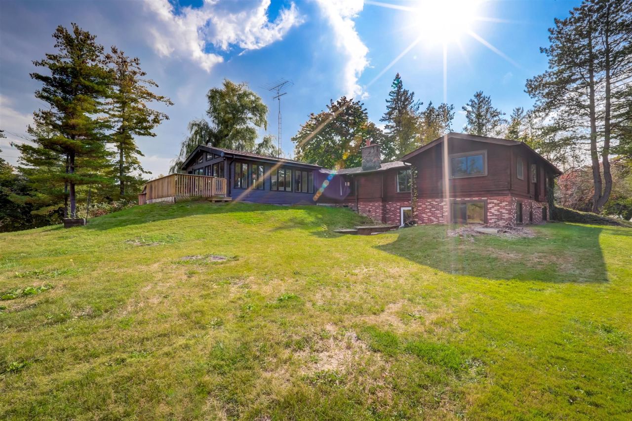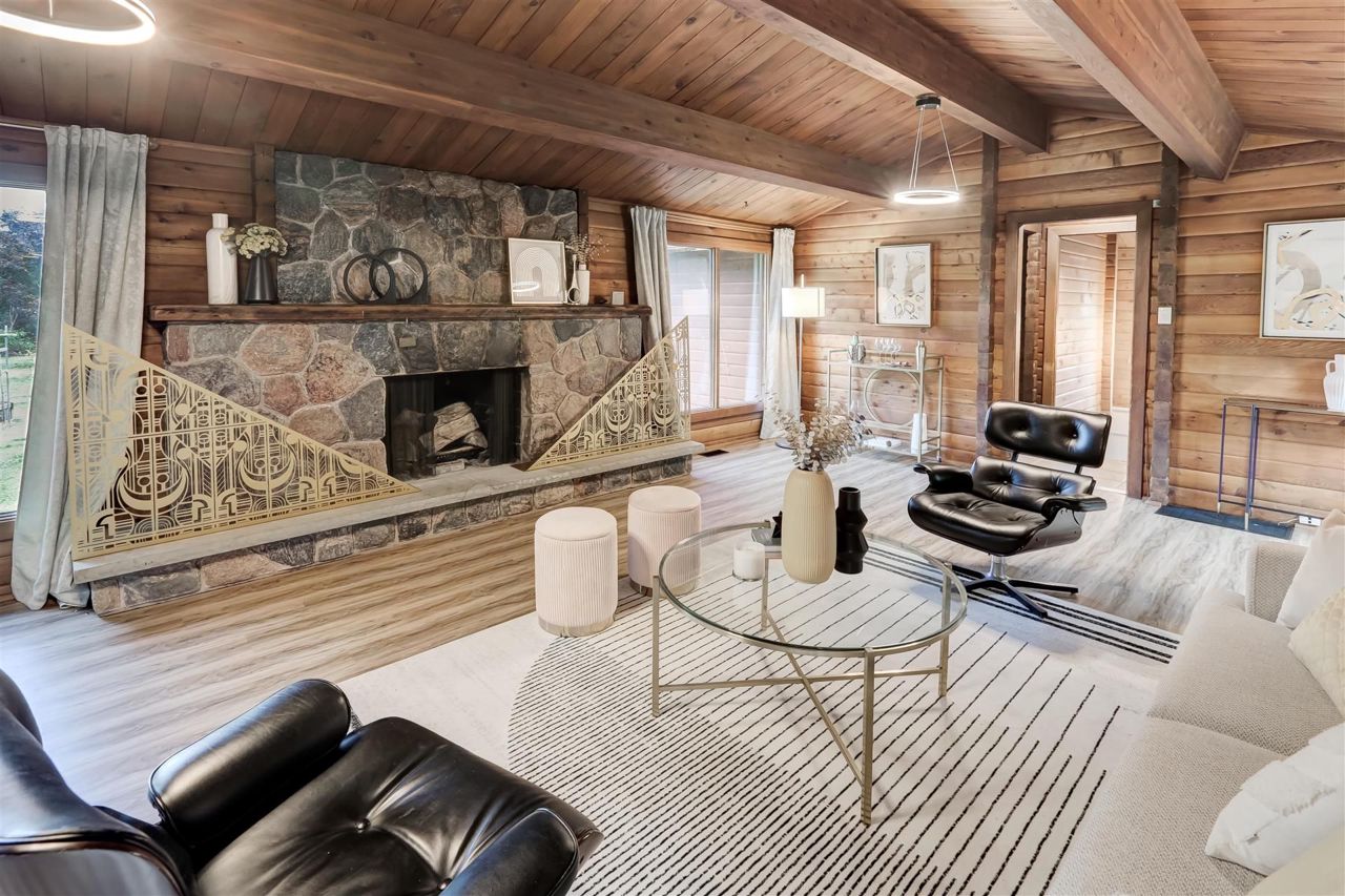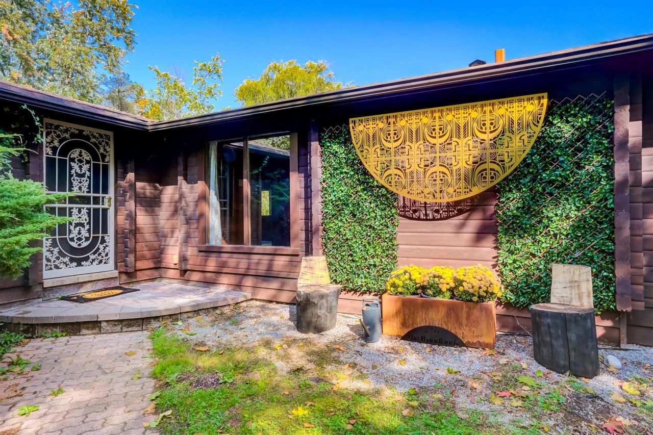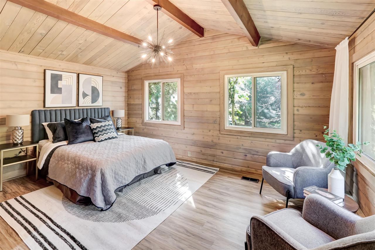 Incredible Wood log home on 7.5 ACRES, first time on MLS. located directly across from the Greenwood Conservation Area with over 14km of nature trails across from your driveway. Live like your in cottage country within 30 seconds of every city convenience you could want. Enjoy all nature has to offer in this peaceful and tranquil retreat property. Lots of space for pets to roam as well as a natural pond at the end of the mesmerizing front driveway. Incredible in every season of the year. Blissful sun room pouring in natural sunlight. Additional sheds/carport/storage on the property. Must see to appreciate the huge great rooms with 2 wood burning fireplaces. Fantastic for entertaining inside and out. Hold huge functions and parties in your own backyard. Huge potential to add on more square footage. Huge cathedral ceilings throughout the main floor in every room. Spectacular nature views from every single window. Can easily be converted into separate units.