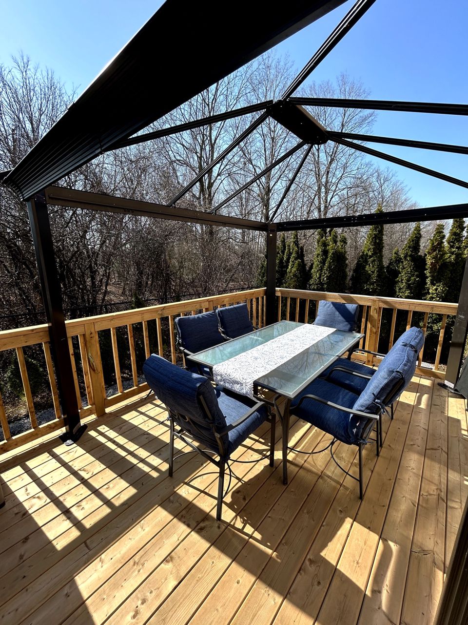 Wonderful upgraded 4 bedroom executive sitting on a pie shaped ravine lot on quiet street! Finished basement with media room and 125 inch projection screen and 7 built-in speakers for the ultimate movie experience...perfect for hosting any event! The backyard is fully fenced and private as it backs onto greenspace.Fridge, Stove, washer, dryer, new furnace February 2024, reshingled less than 6 years ago, and backyard deck
