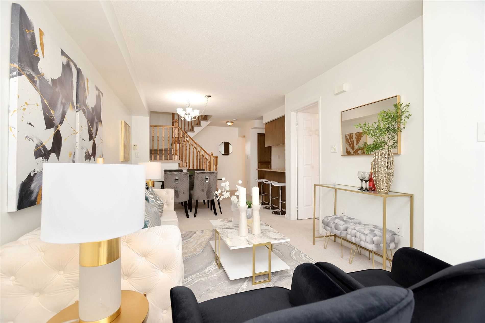 Stunning Modern Townhouse With All The Bells And Whistles! Beautiful Designer Decor, Painted In Today's Modern Neutrals And Upgraded Light Fixtures. Inside Enjoy Open Concept Living/Dining Room, Entertainer's Kitchen With S/S Appliances, Granite Backsplash & Breakfast Bar. Covered Patio Off Living Room, Good Sized Third Bedroom Or Den, Master Bedroom With Ensuite And Convenient Laundry On This Level. Close To Shopping And 401. First-Time Homebuyers Dream! This Freehold Townhome (No Fees)Fridge, Stove,Built - In Dishwasher, Washer & Dryer , Central Air, Freshly Painted Throughout, Upgraded Mirrors In Bath, Garage Access