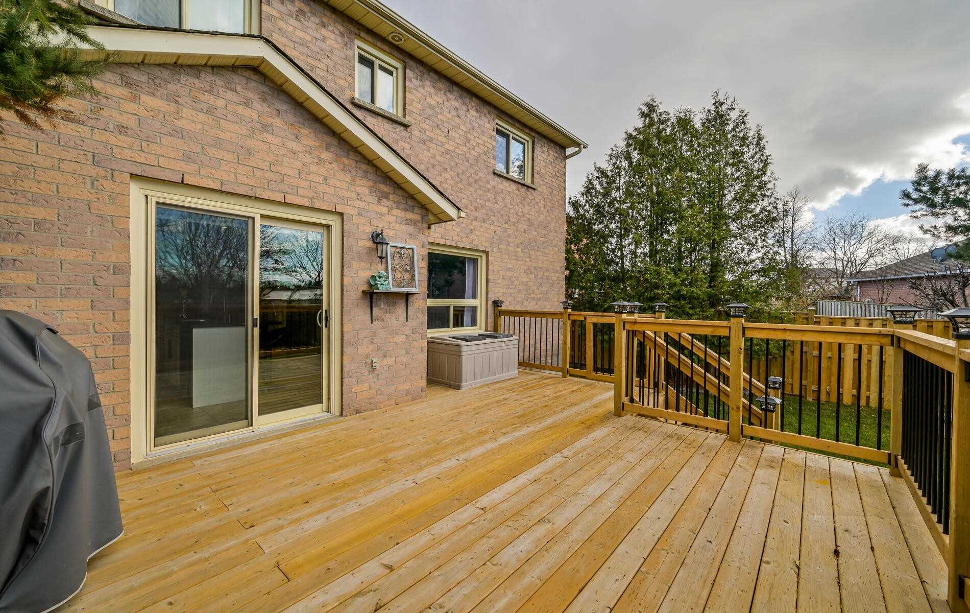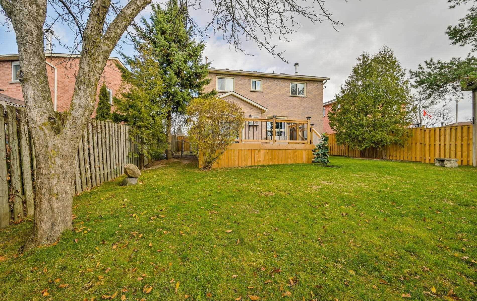 Beautifully Updated Brick Home Situated On Pie Lot Backing Onto Greenspace With Sunny Western Exposure. Second Level Features 3 Large Bedrooms (All With Walk-In Closets) Plus An Office. Gourmet Kitchen Boasts Center Island, Quartz Countertops, Pot & Pendant Lights, Ss Appliances, Custom Backsplash & Walks Out To Deck With Aluminum Rails & Ambient Solar Lights. Front Landscaping Includes Tumbled Stone Walkway & Widened Driveway To Accommodate 3 Cars. Walking Distance To Ajax Go Station, Schools, Shopping, Parks & Public Transit. Quick Access To 401. Minutes From Costco, Walmart & Home Depot. Tastefully Appointed With Neutral Decor. Pride Of Ownership Shines Through.