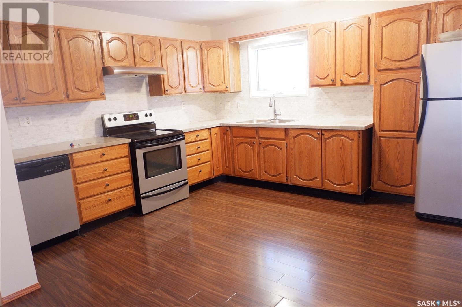 Located in the Town of Assiniboia in a great location, close to schools and recreation. This tastefully upgraded home could be just what you are looking for. Open concept kitchen/living room with upgraded cabinets, countertops and flooring. The relaxing bathroom features an air-jet tub. There are two good sized bedrooms on the main floor. The basement features a utility room with upgraded high efficient natural gas furnace,(central air conditioning) upgraded sewer lines and central vacuum. The basement setup has converted to a suite with an extra kitchen area, living room, large bedroom and 3 piece bath. Great to supplement income and payments or a teenager retreat! All appliances currently on-site included. The insulation in the attic has been blown in and is rated R50. You will enjoy the large back yard, complete with garden shed and ample parking on the side. Come have a look at this property today! (id:22211)
