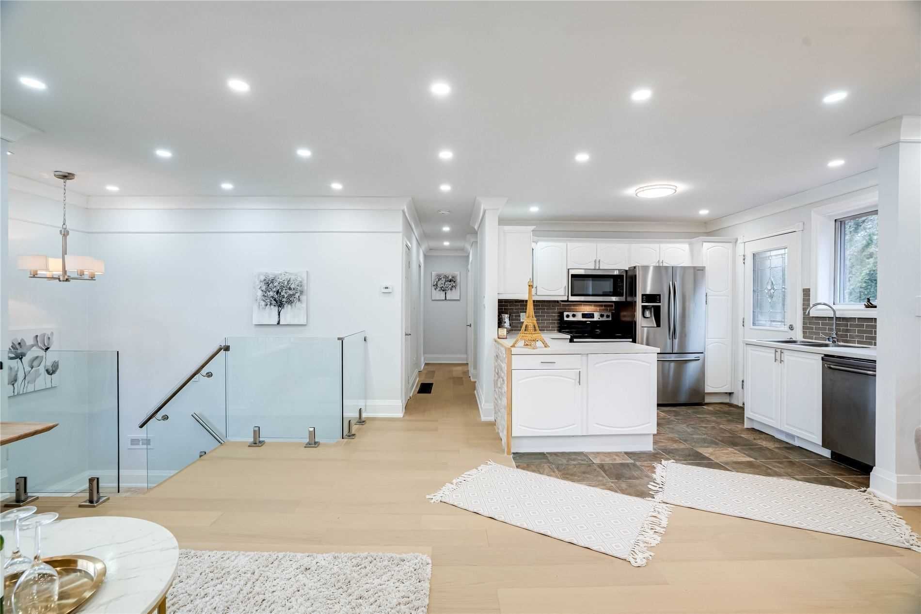 Tastefully & Prof. Renovated (2022)- A Must See; Open Concept, Solid Brick Bungalow On A Larger 70' Wide Fully Fenced Pool Size Backyard Surrounded By Mature Trees; Great Privacy. New Eng. Hdwd. Floors, Pot Lights, Glass &Ss Railing, Painting, Solid Wood Crown Molding &Trim, Updated Kitchen, Walk-Out To Large Deck. 2 Bdrms Upstairs (Can Be Converted Back To 3) With 3Pc Bath, S/S Fridge, S/S Stove, S/S Microwave, S/S B/I Dw, 2 Bdrms Downstairs,3Pc Bath & Rec.All Existing Appliances And All Electrical Light Fixtures, A/C, Window Coverings, Washer & Dryer, Buyer To Verify All Measurements. Mins To Shopping, Schools, Theater, Public Transit, Hwy's & More