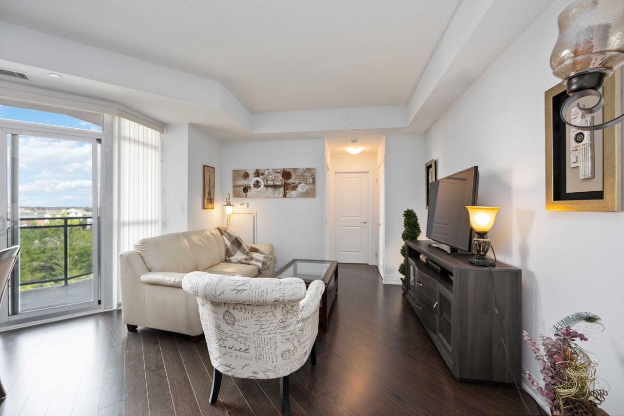 Welcome to the sought-after Ridgewood 2 Condos! Discover this beautiful, light-filled 1-bedroom plus den unit, complete with granite countertops and engineered hardwood floors. Enjoy the benefit of tandem parking for 2 cars and a large north-east facing balcony with unobstructed views. The unit boasts a spacious layout with room for a dining table and features 9-foot high ceilings. The desirable building, set next to a park, offers resort-like amenities such as an outdoor saltwater pool, fitness centre, party room, theatre, Guest suites, BBQ area, Concierge, bike storage, garden plot and a pet spa! Ideally located, it's just a short walk to stores, banks, a movie theatre, restaurants, and transportation including Aurora Go Station. Easy access to Hwy 404 is an added bonus. The unit comes with a conveniently located parking spot and a full storage locker.Includes all appliances: Fridge, Stove, Dishwasher, Washer/Dryer. All Light Fixtures. All Window Coverings. Also Includes all Furniture and Finishings (Please see Schedule of Included Items).