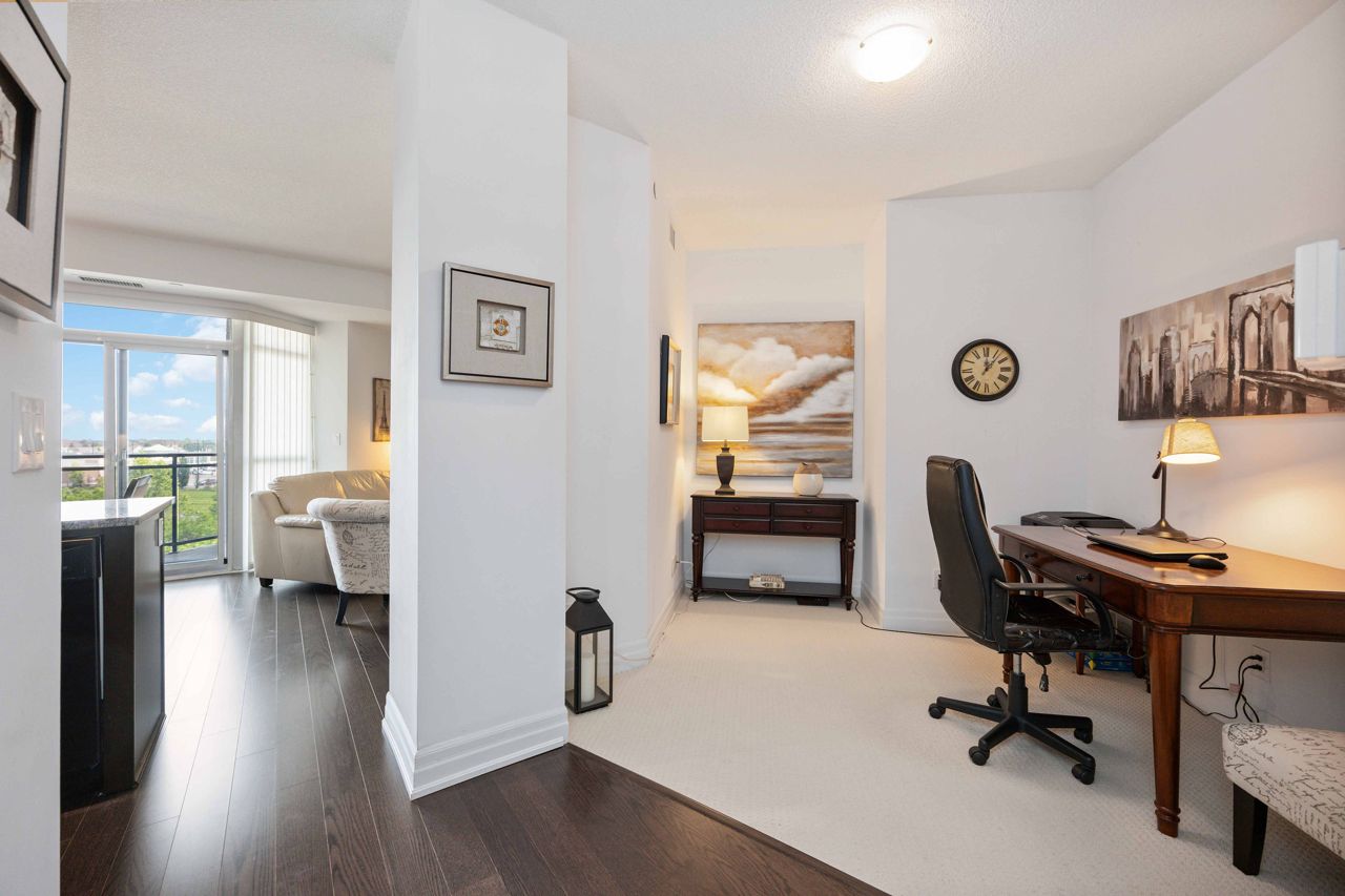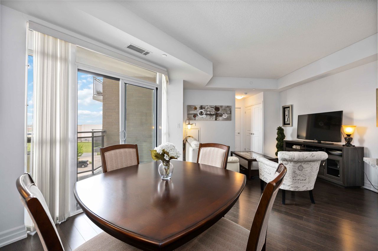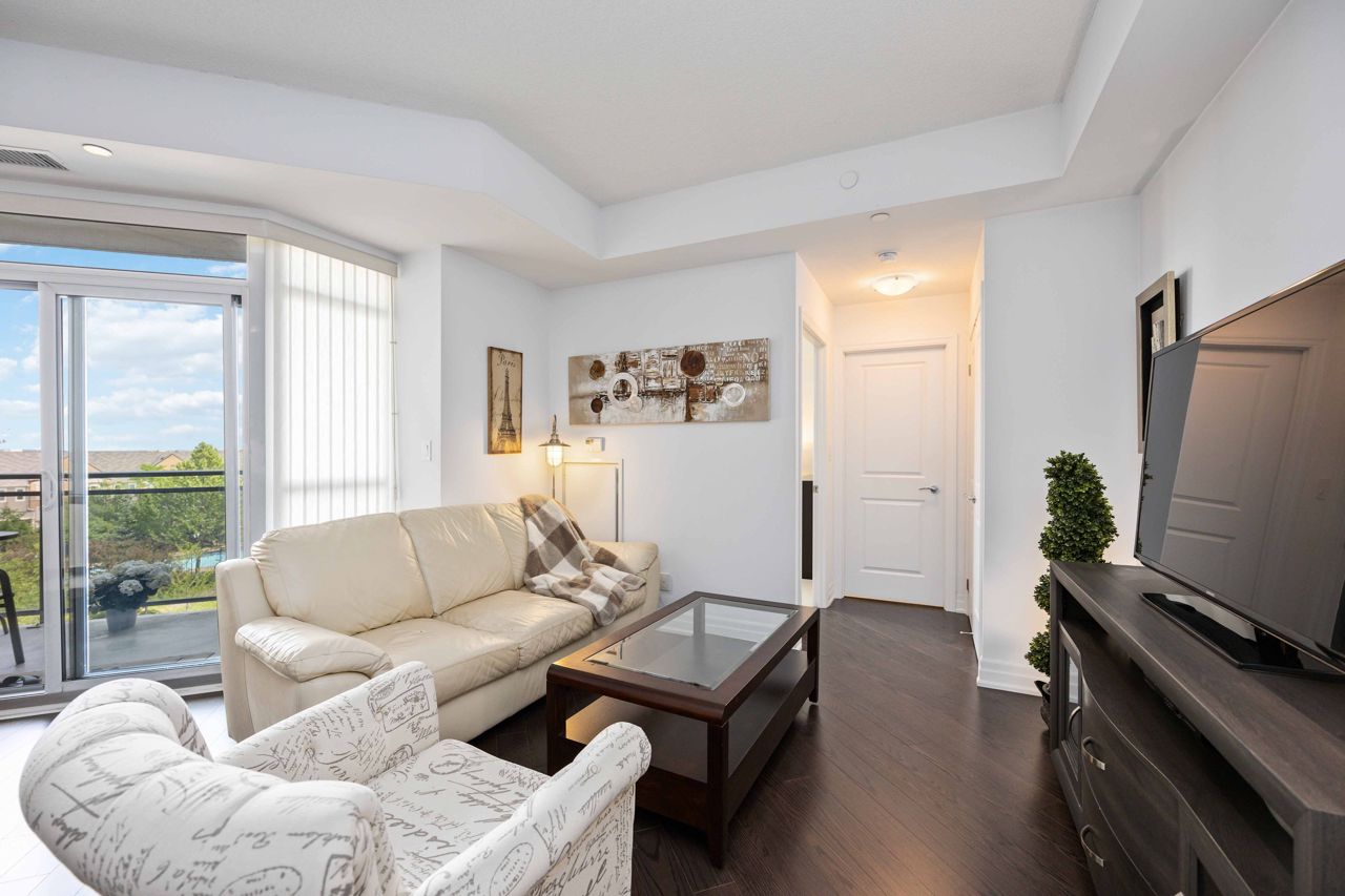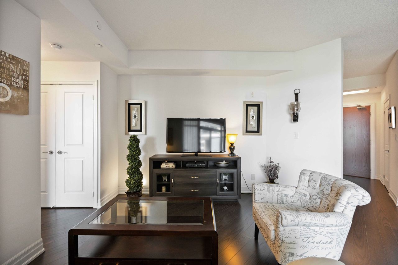 Welcome to the sought-after Ridgewood 2 Condos! Discover this beautiful, light-filled 1-bedroom plus den unit, complete with granite countertops and engineered hardwood floors. Enjoy the benefit of tandem parking for 2 cars and a large north-east facing balcony with unobstructed views. The unit boasts a spacious layout with room for a dining table and features 9-foot high ceilings. The desirable building, set next to a park, offers resort-like amenities such as an outdoor saltwater pool, fitness centre, party room, theatre, Guest suites, BBQ area, Concierge, bike storage, garden plot and a pet spa! Ideally located, it's just a short walk to stores, banks, a movie theatre, restaurants, and transportation including Aurora Go Station. Easy access to Hwy 404 is an added bonus. The unit comes with a conveniently located parking spot near the elevator and a full storage locker.Includes all appliances: Fridge, Stove, Dishwasher, Washer/Dryer. All Light Fixtures. All Window Coverings. Also Includes all Furniture and Finishings (Please see Schedule of Included Items).
